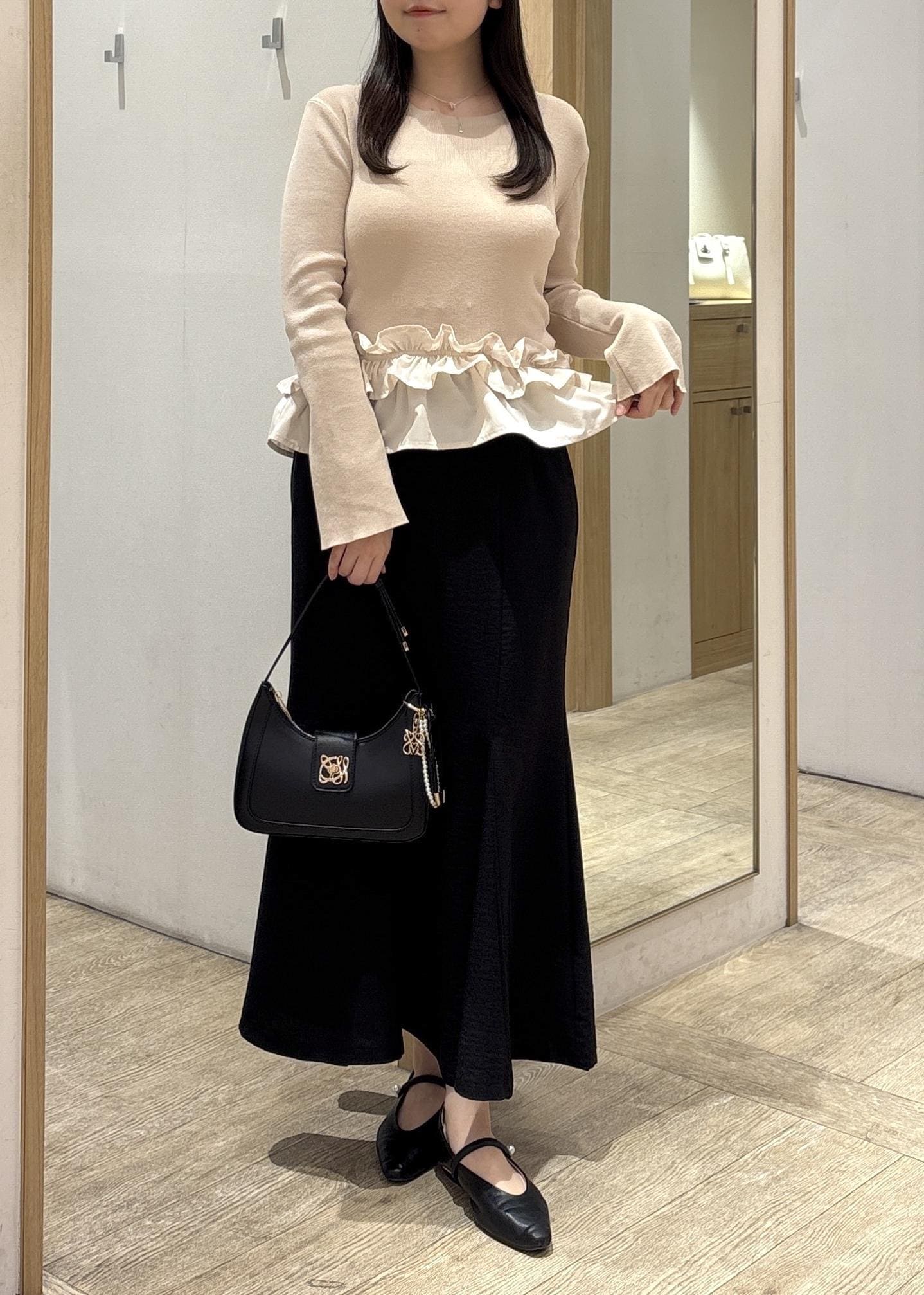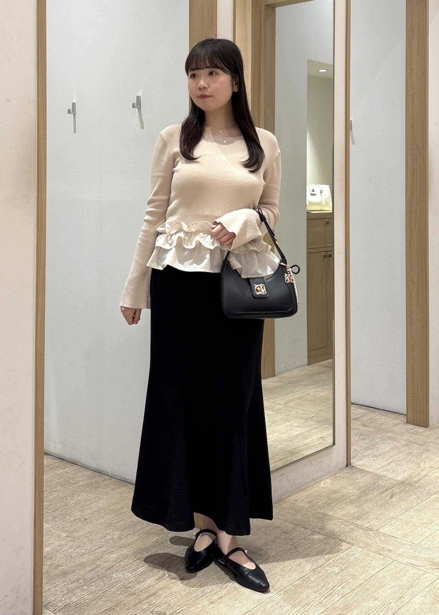 裾フリルが腰まわりの視線を柔らかくしてくれるので、骨ストさんの骨格を活かしつつキレイみえを叶えます! -