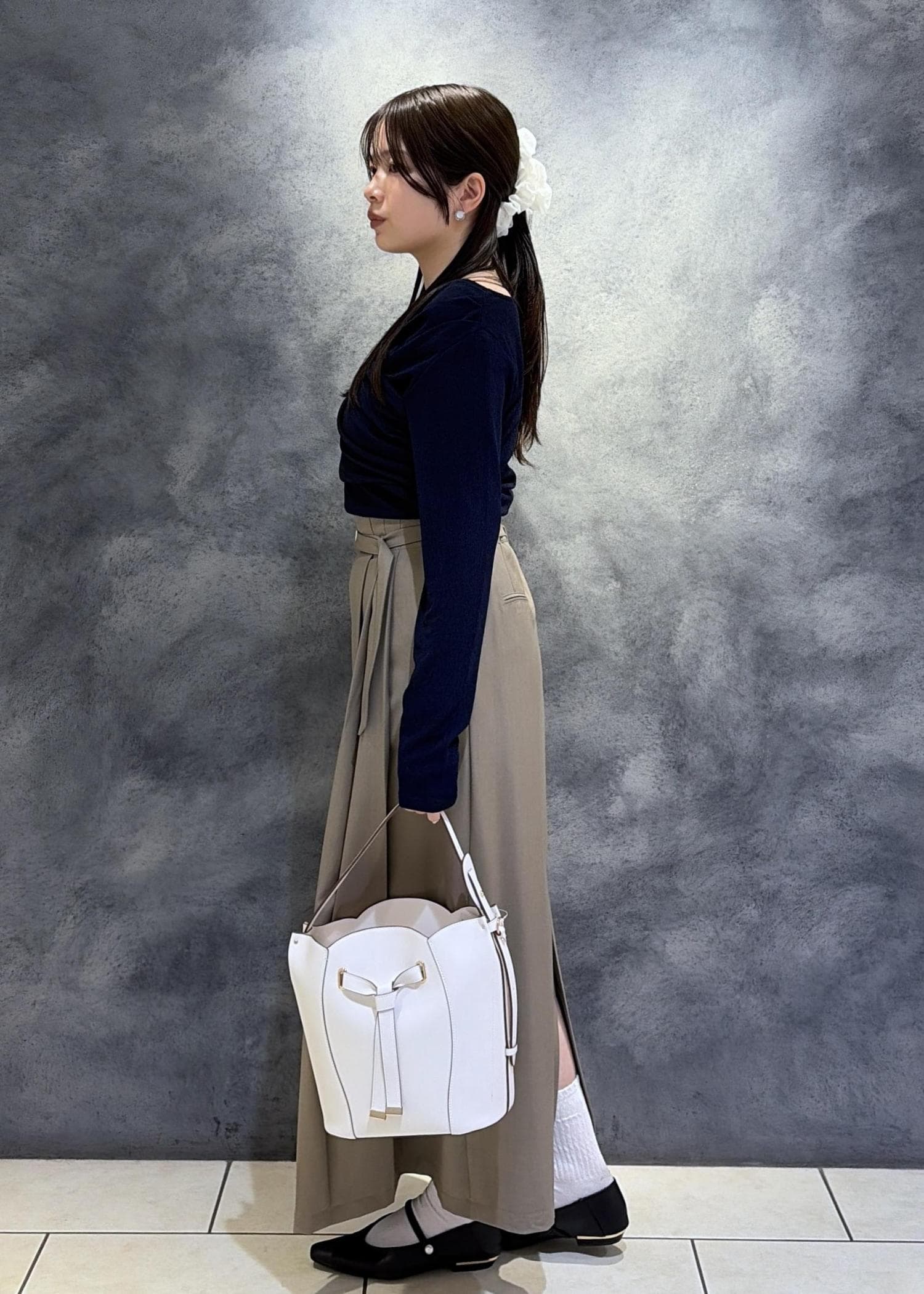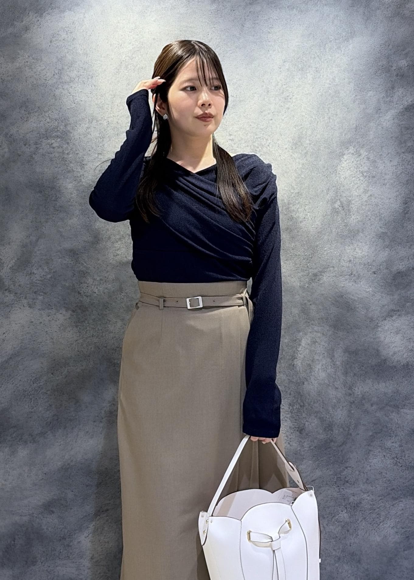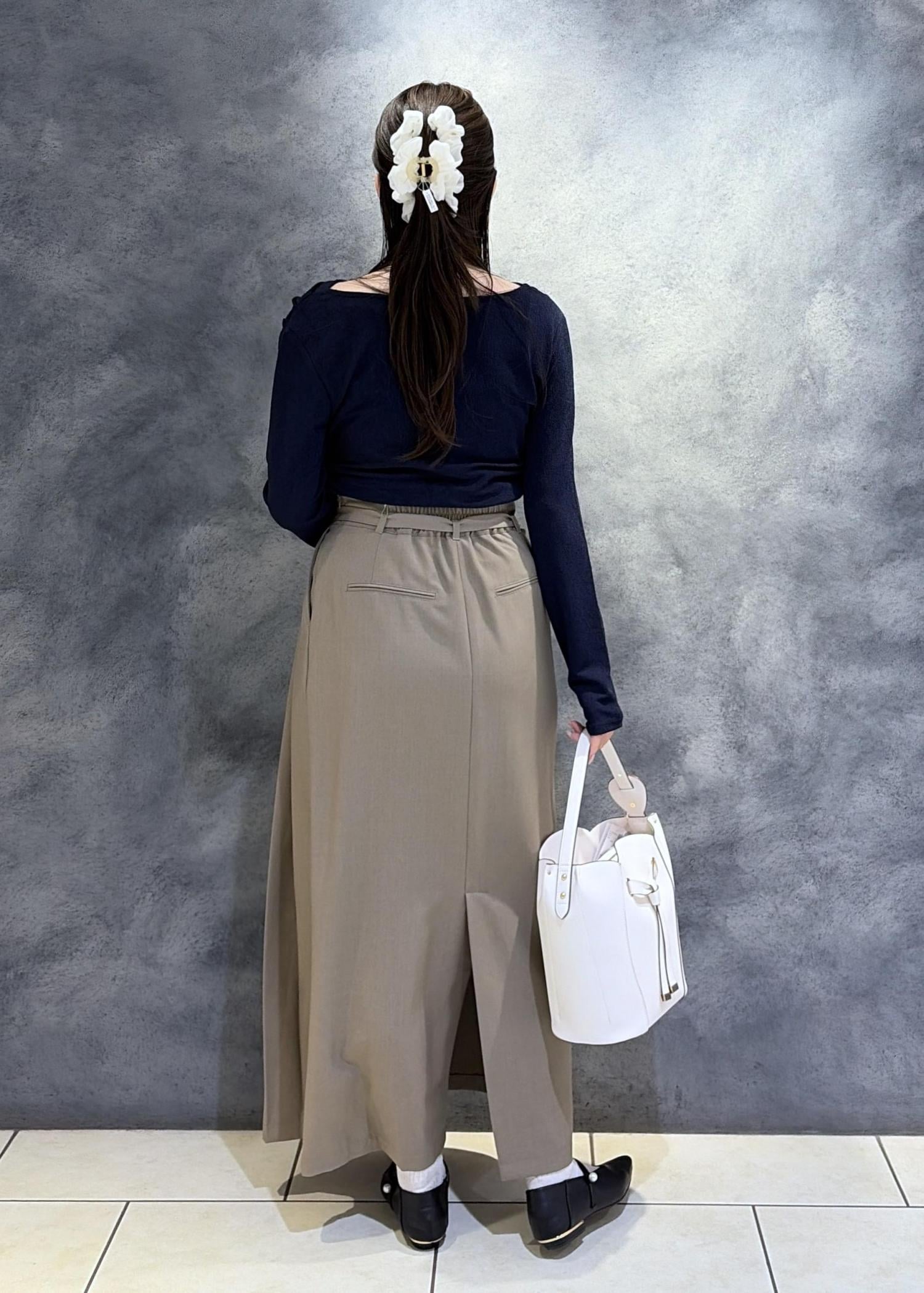 サラッとした素材感なのでIラインスカートでも楽に履きやすいです。 -