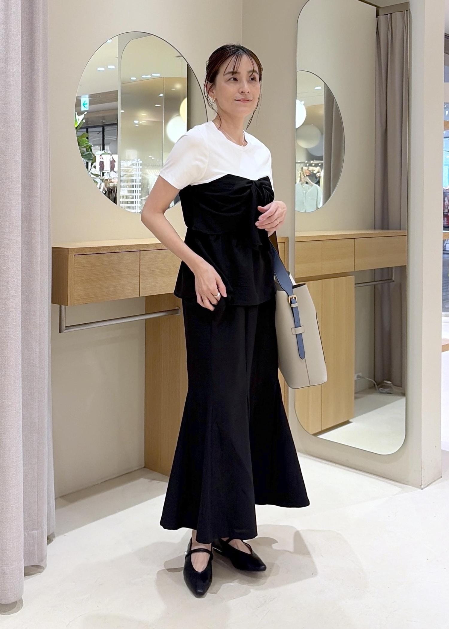 VIS美easyリネンライクリボンビスチェトップス/イージーケア・接触冷感・セットアップ対応ブラック / F¥5,489レビューカット生地と布帛のドッキングでメリハリがあり、着映え力ありです!