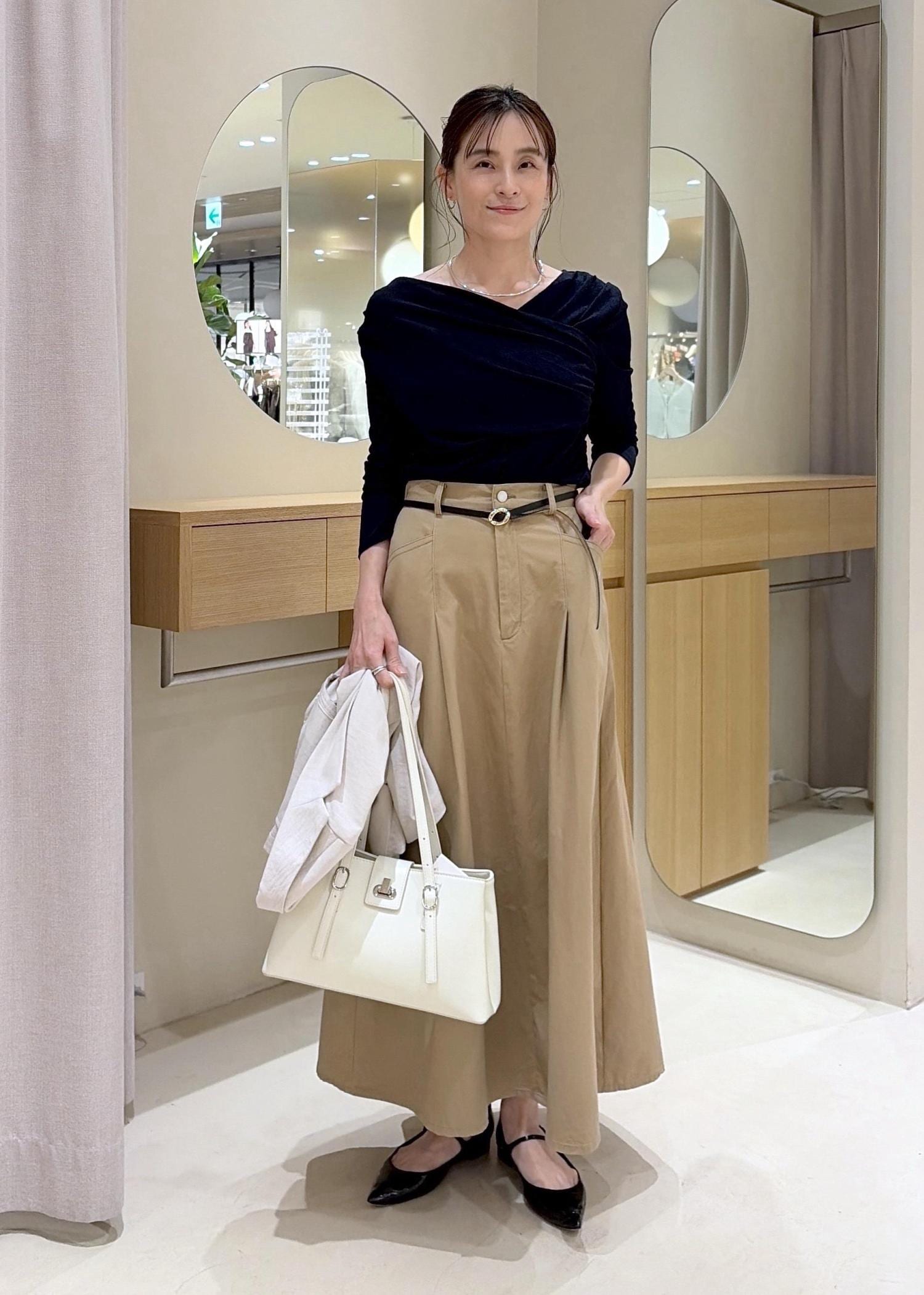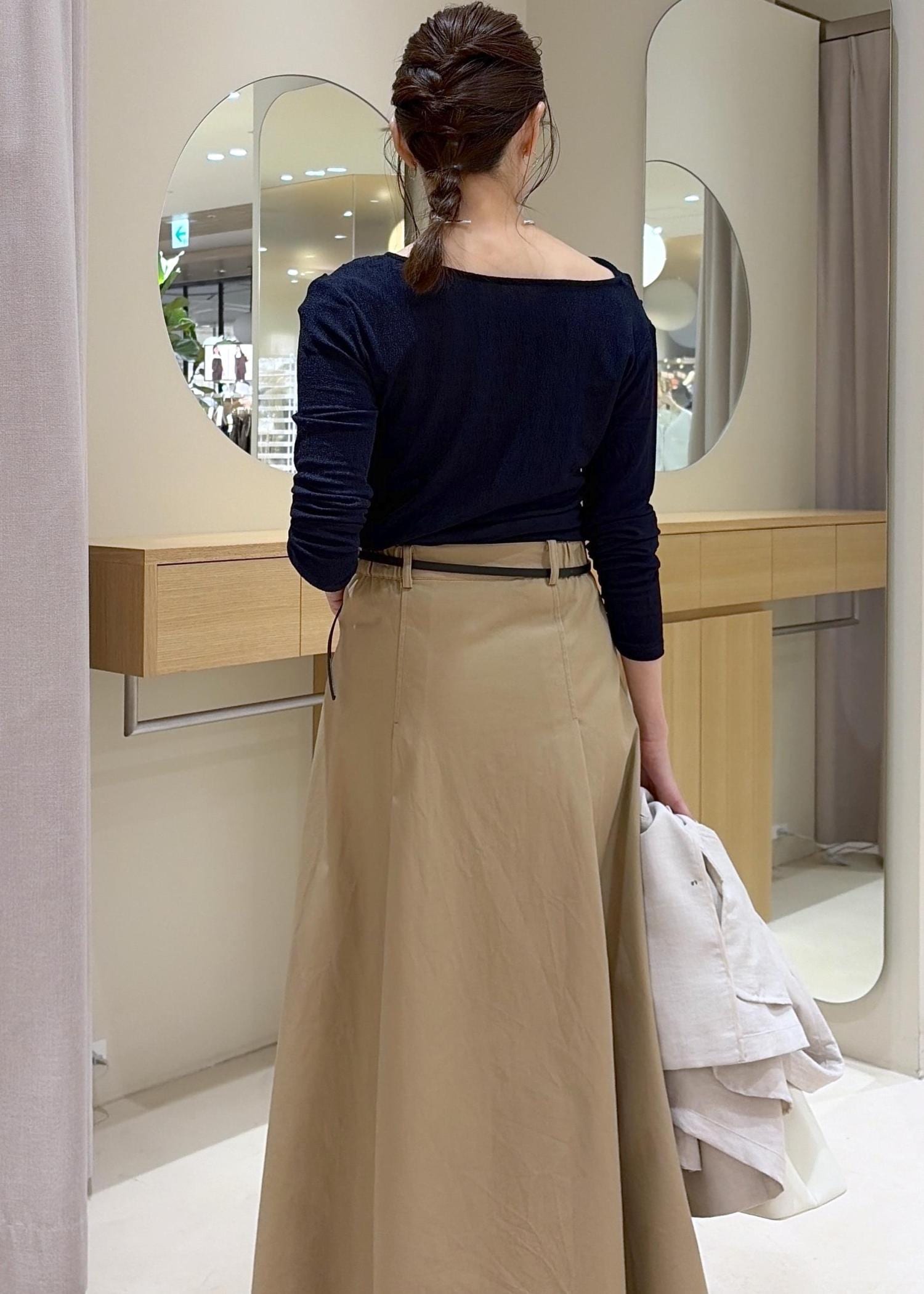 春らしい素材感で、丈が長くても軽かったです。ウエストはジャストすぎず、少しゆとりがありました。