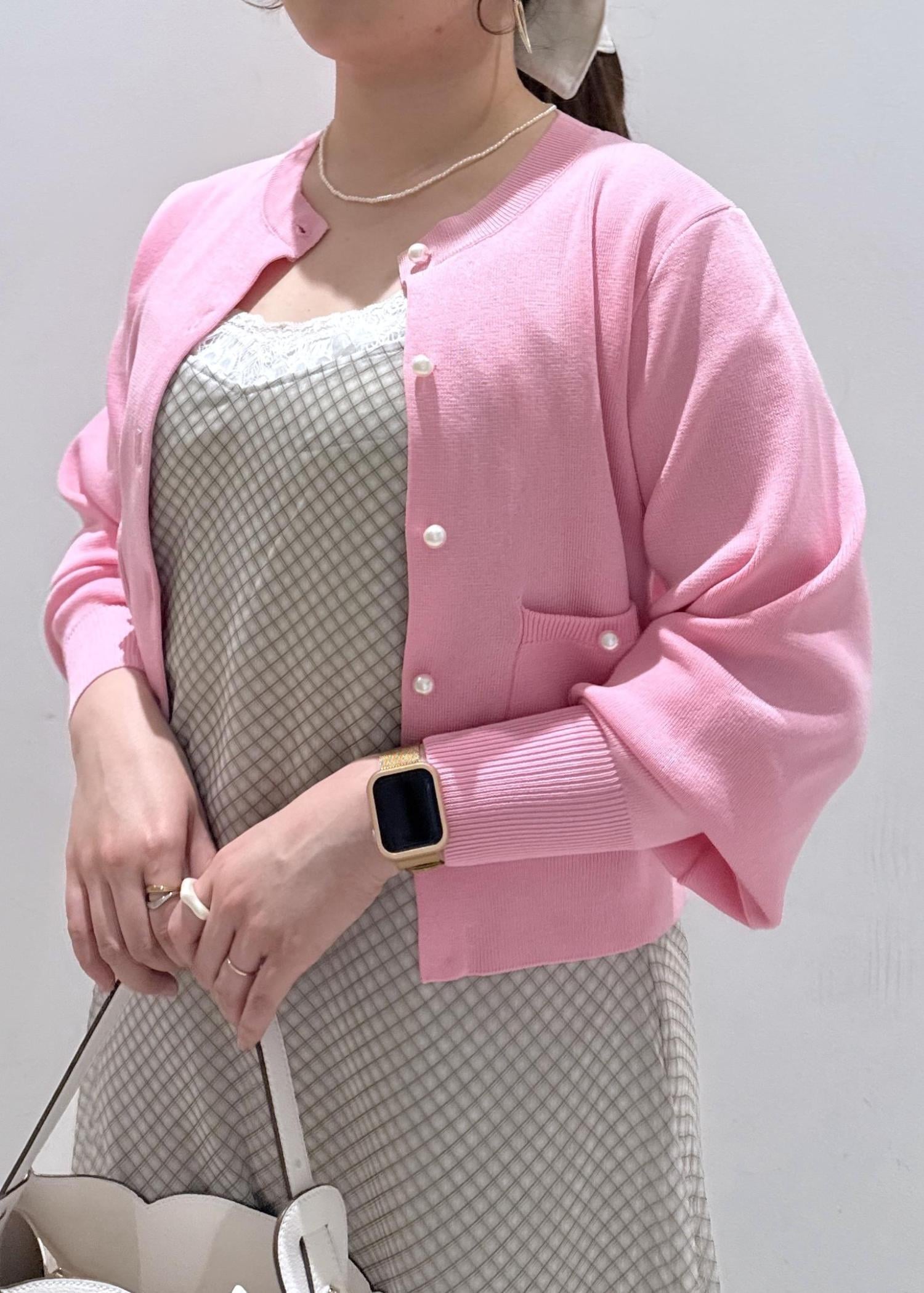 2BUY10%OFFVISパールボタンカーディガンピンク / F¥6,589レビュー身長157cm/Fサイズ着用。生地感が分厚すぎず薄すぎずさらっとして涼しそうな素材感です。ボタンがパールボタンでつくられているので、着た時に顔周りがパッと明るくなります。ポケットもしっかりと付いているのでなにか小物も入ります。着丈は腰辺りぐらいで短いショート丈でした。