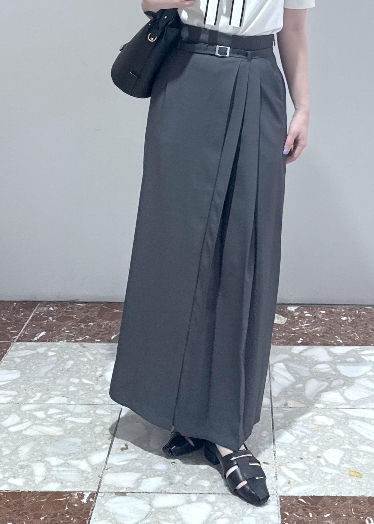 VISアシンメトリープリーツスカートチャコール / M¥7,689レビューシルエットがキレイで、サイドの部分がプリーツデザインになっています。