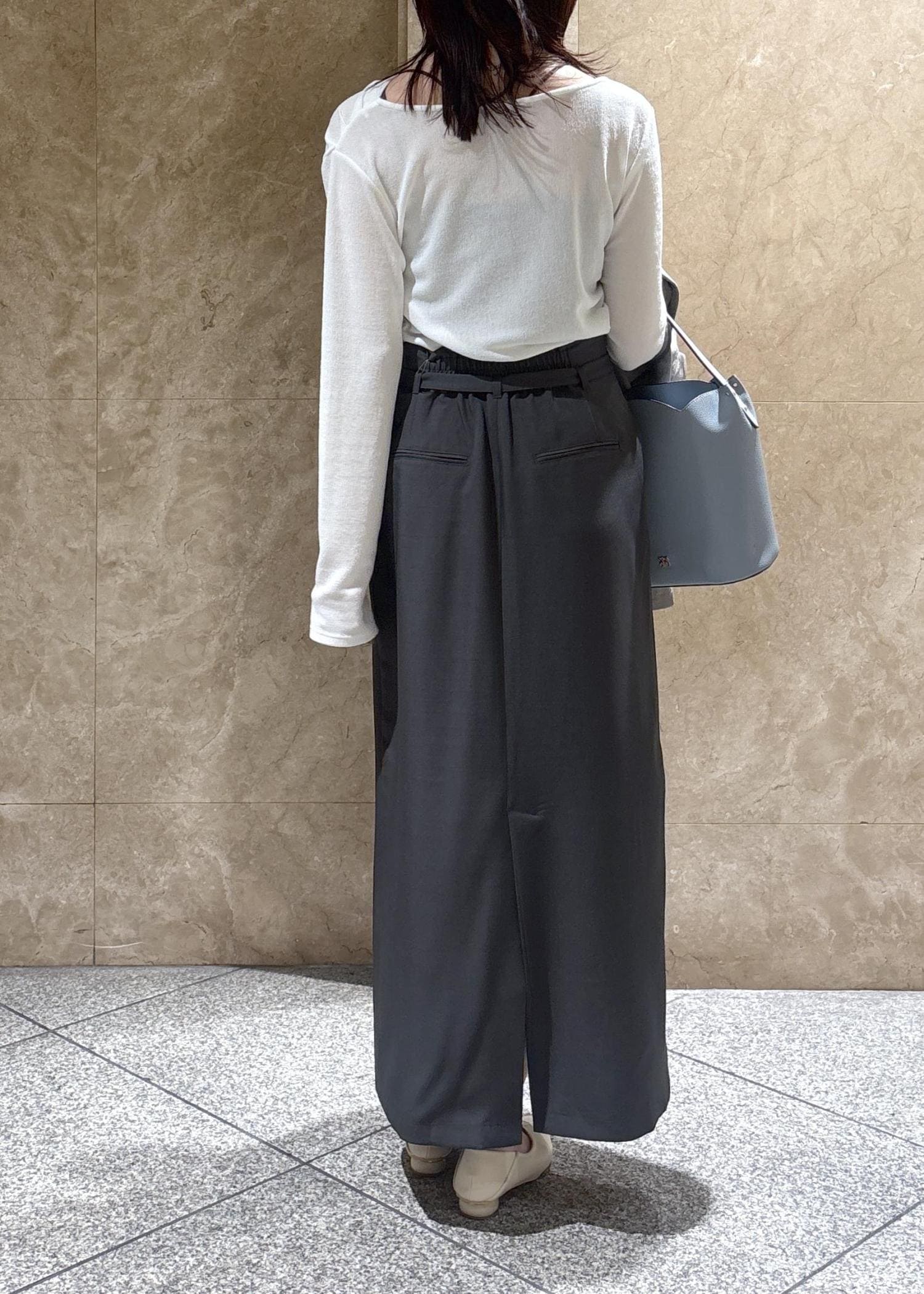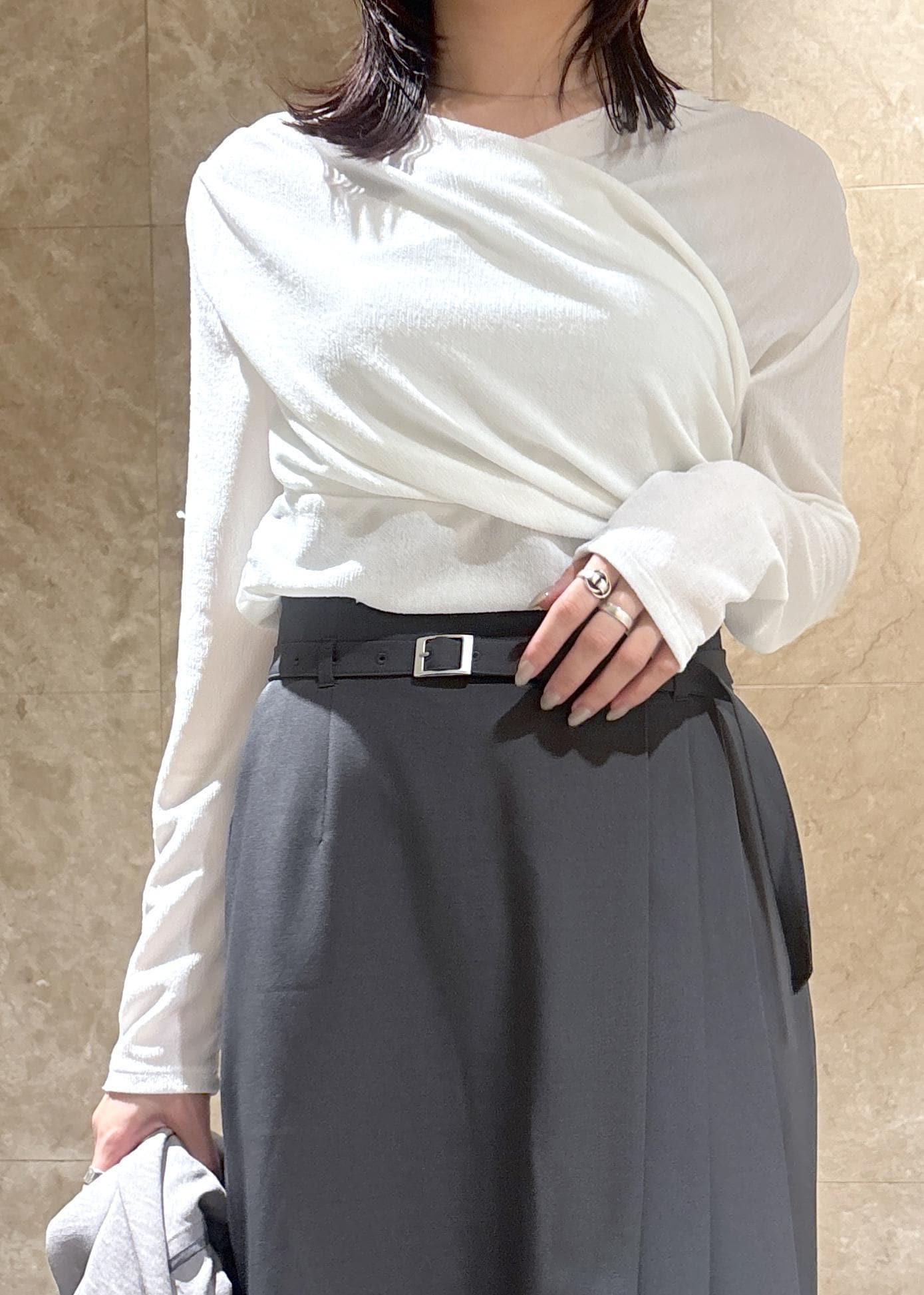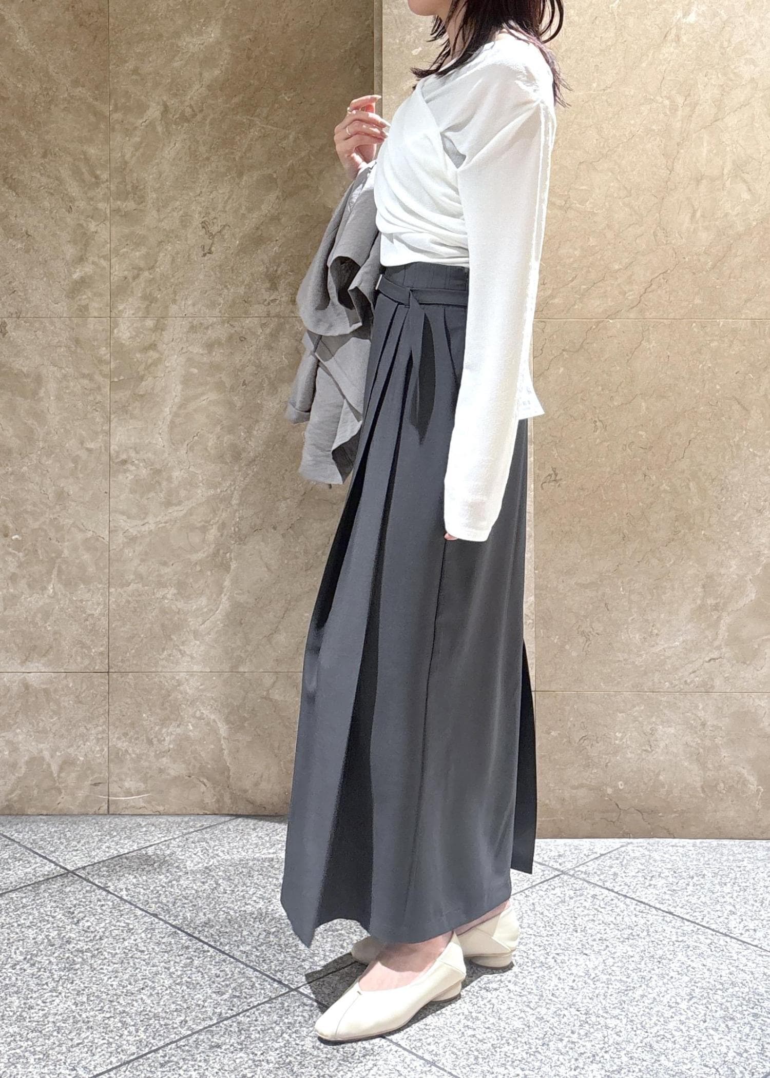 腰回りサイドからドレープもかかったデザインで、ウエストにインしなくても着られるところもお気に入り! -