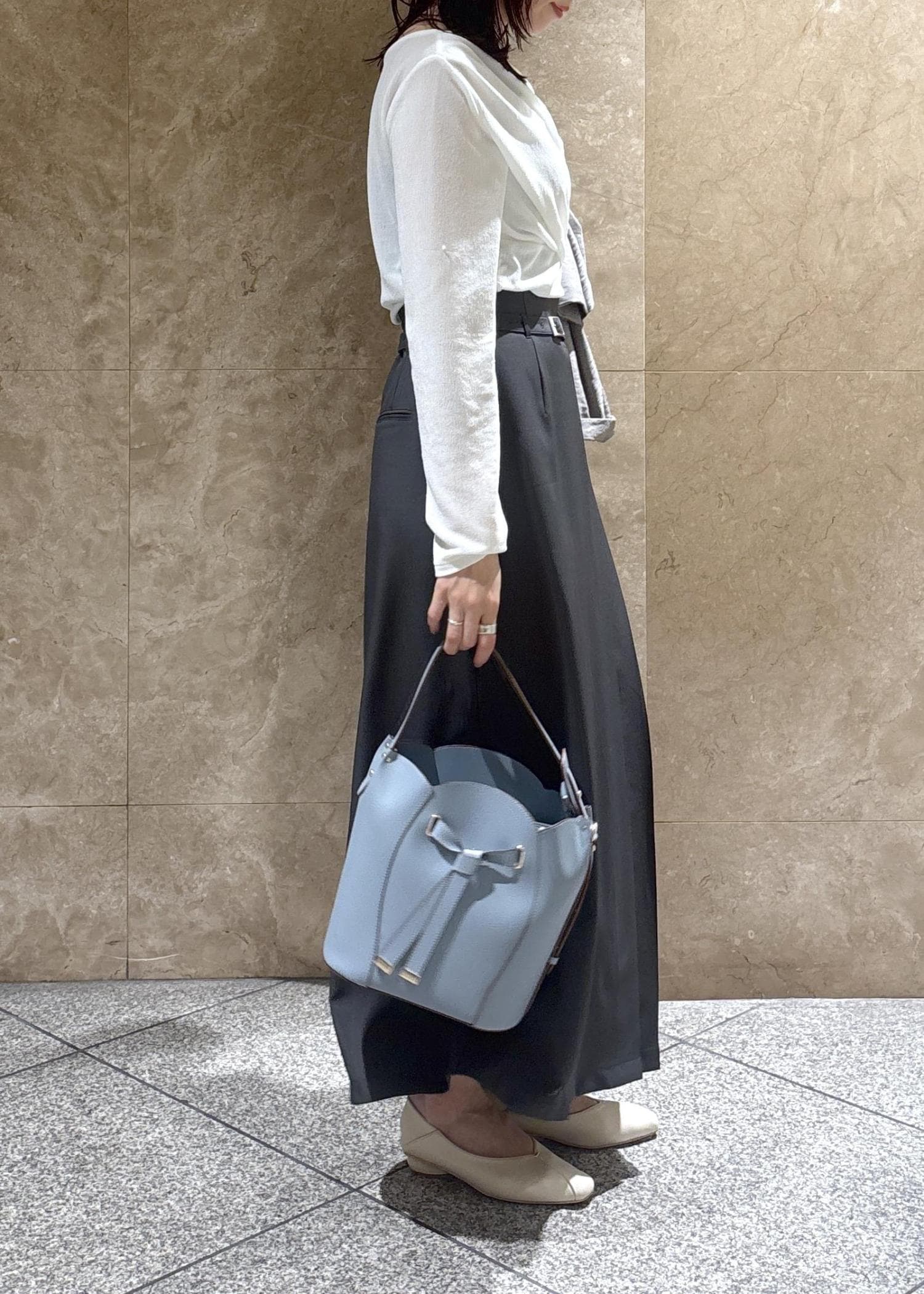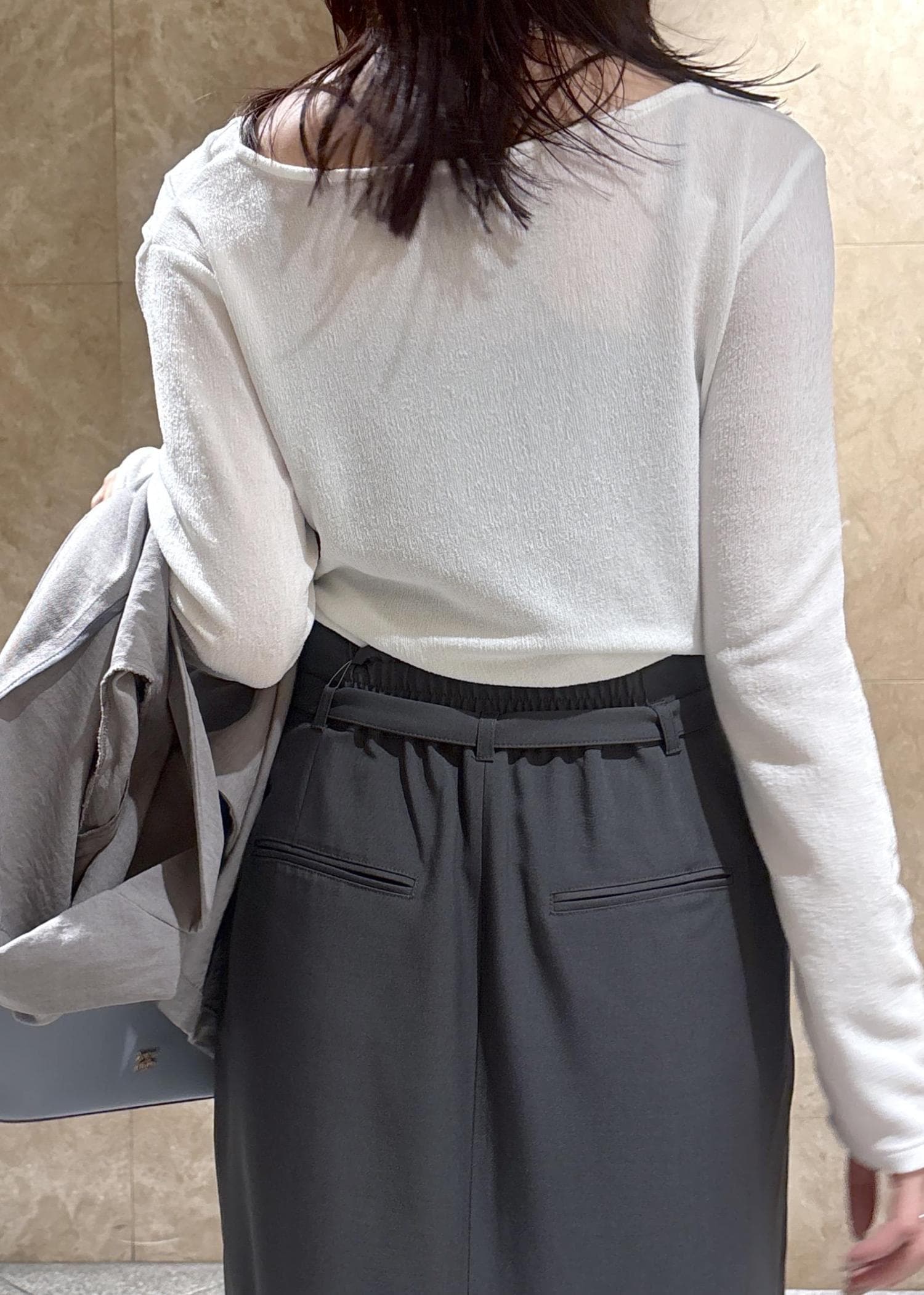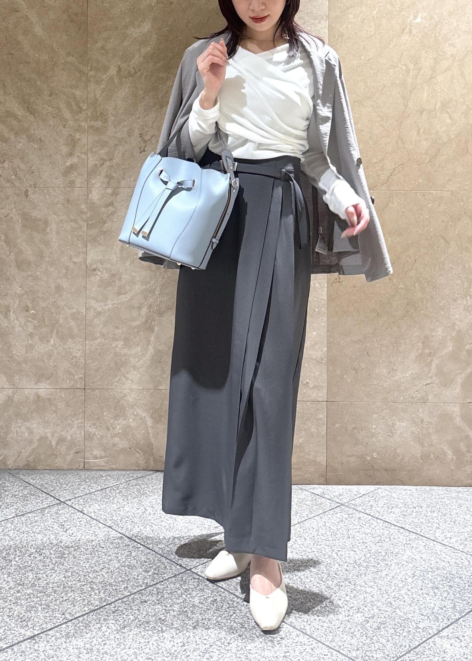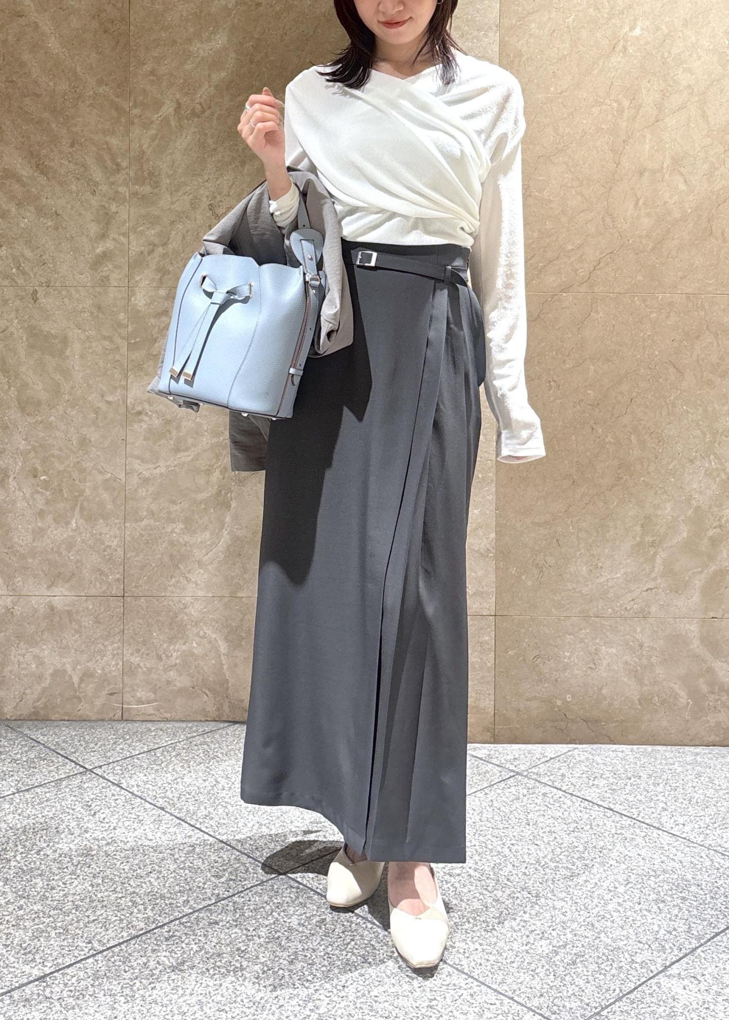 腰回りサイドからドレープもかかったデザインで、ウエストにインしなくても着られるところもお気に入り! -
