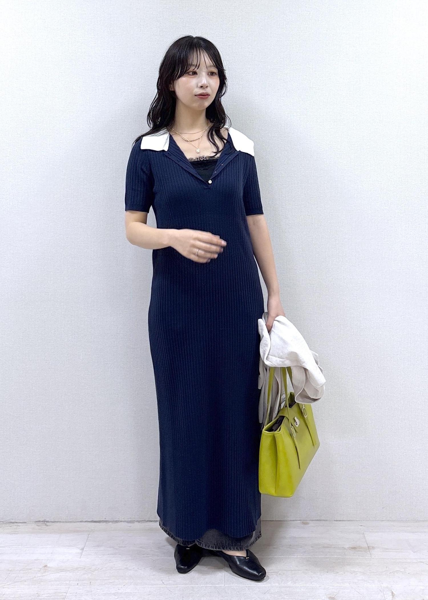 ワンピのポロ襟を全開にして抜き気味にして着ることでオープンカラーデザインっぽくしてみました!