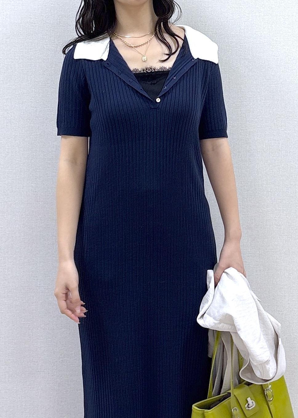 ポロ襟ニットワンピース