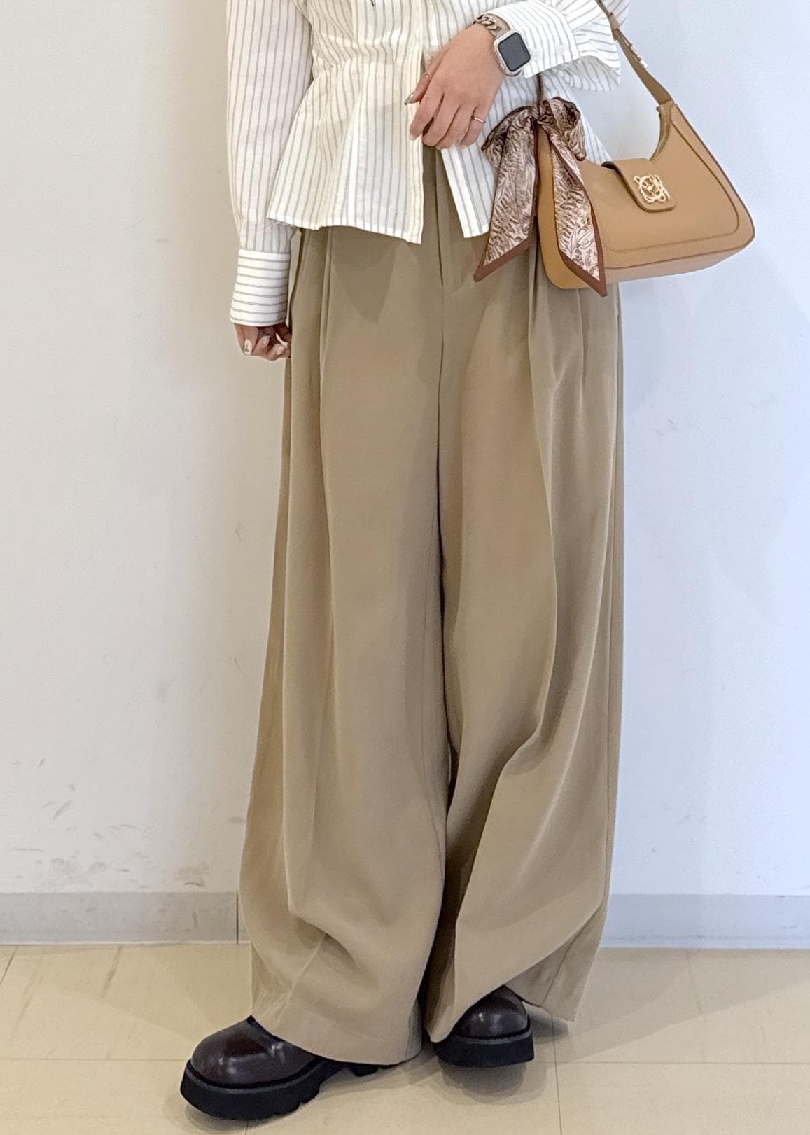 2BUY10%OFFVISツータックワイドパンツ/イージーケアベージュ系 / M¥6,920レビュー158cmMサイズで5センチ厚底とあわせて、床に少し着くくらいのサイズ感です。丈は長めなので、ジャストサイズがいい人はワンサイズ下げることをオススメします。