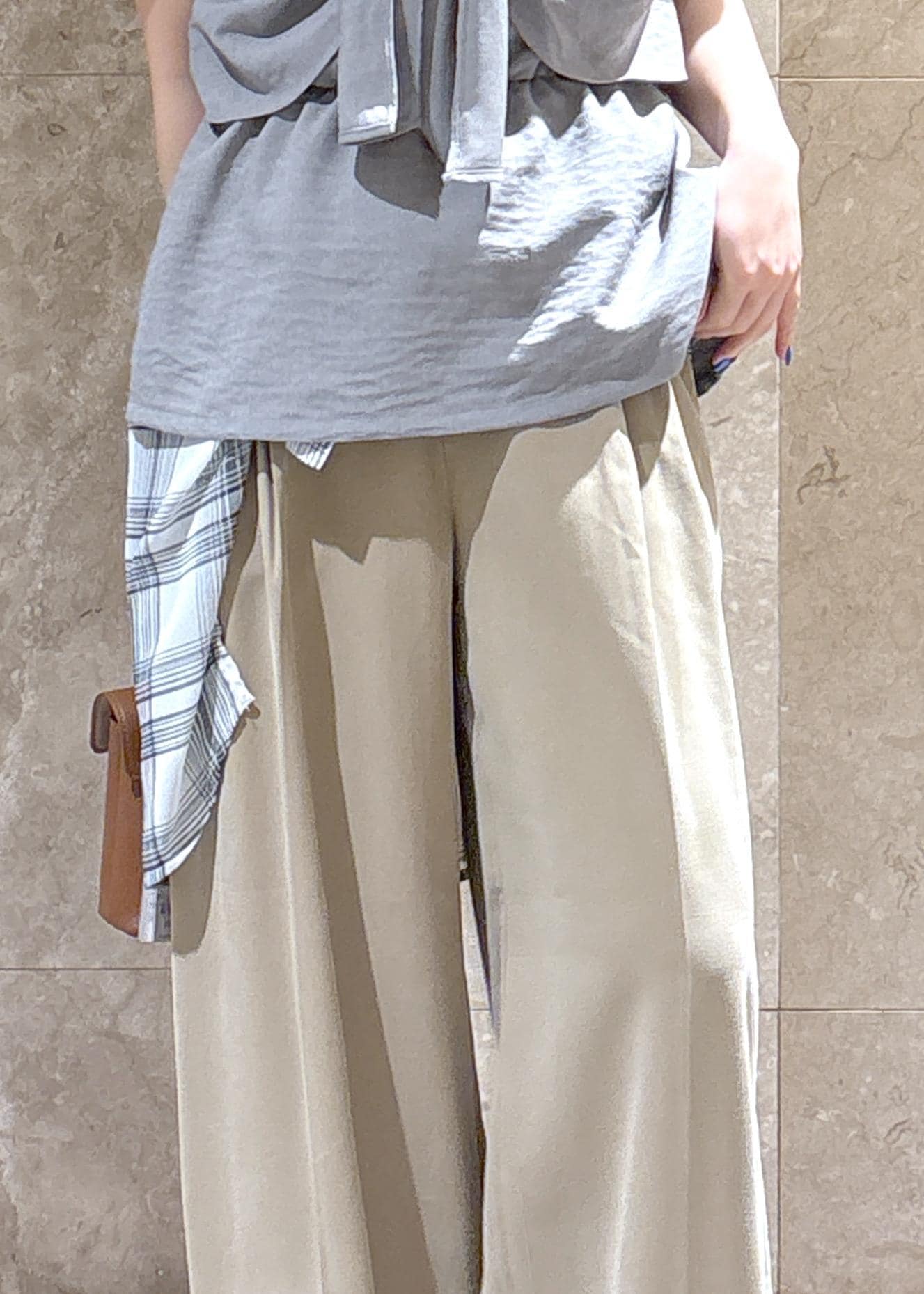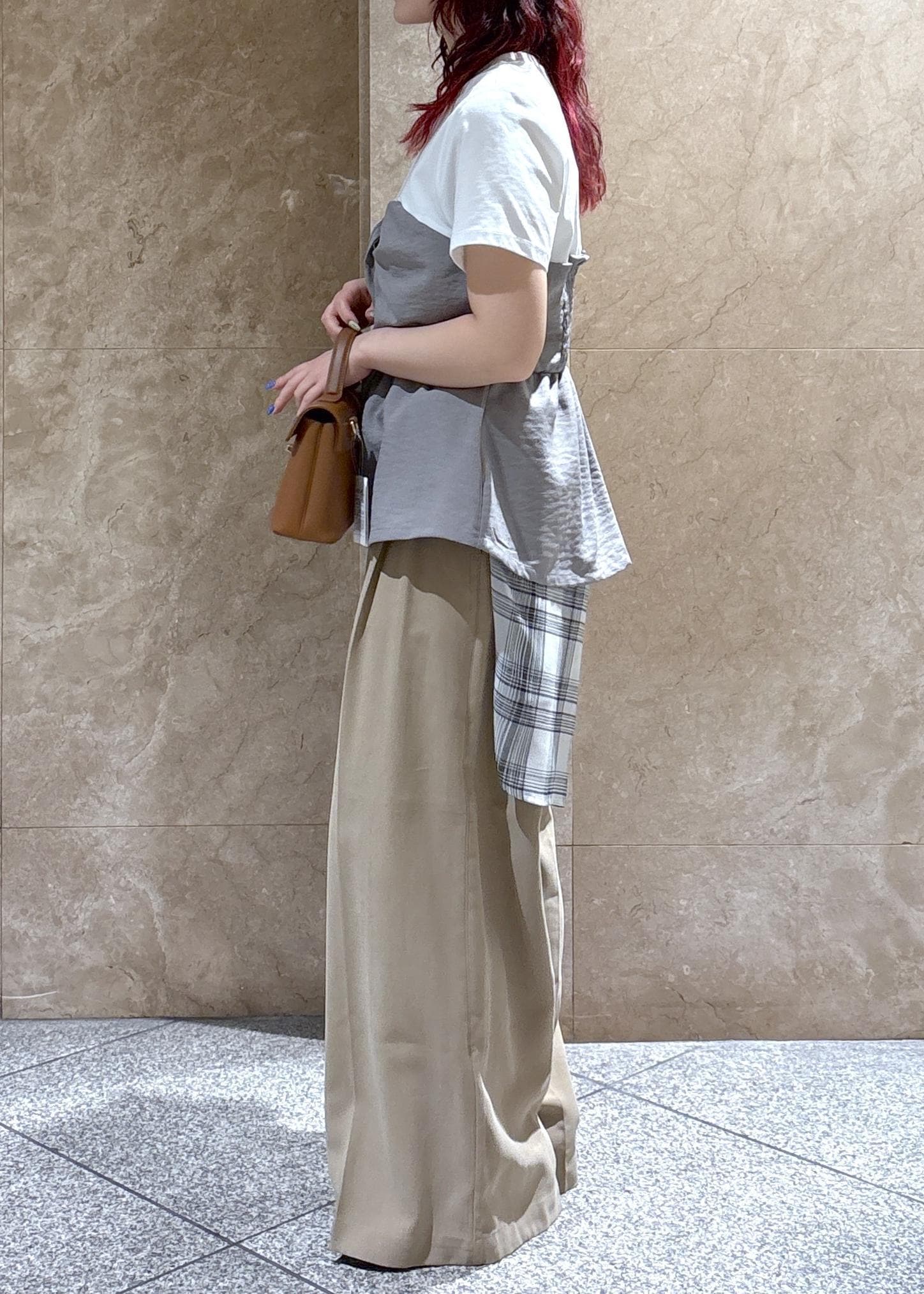 太めのシルエットですが、薄めのテロっとした生地感で足をきれいに見せてくれます!