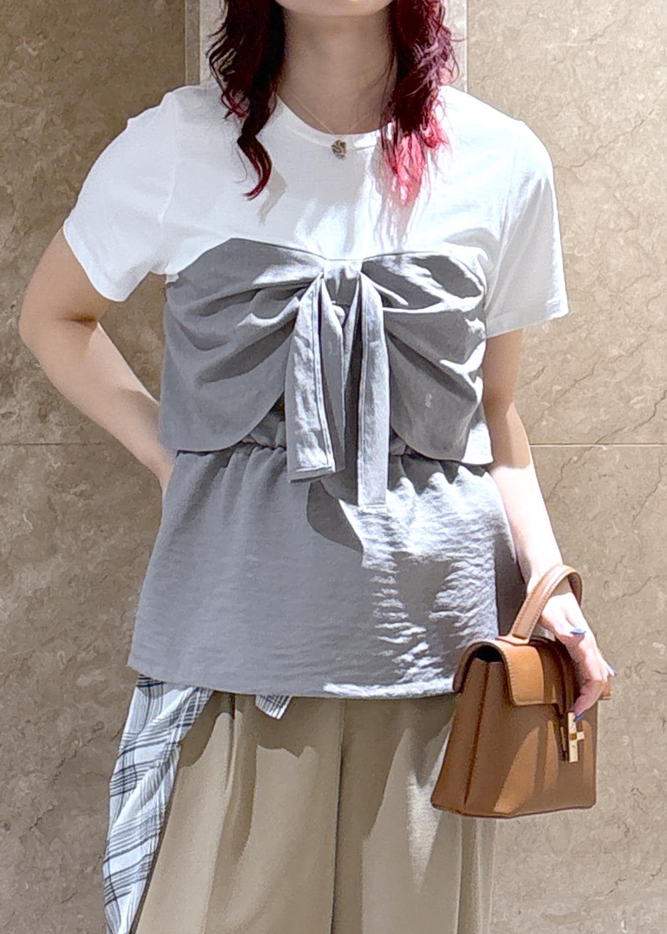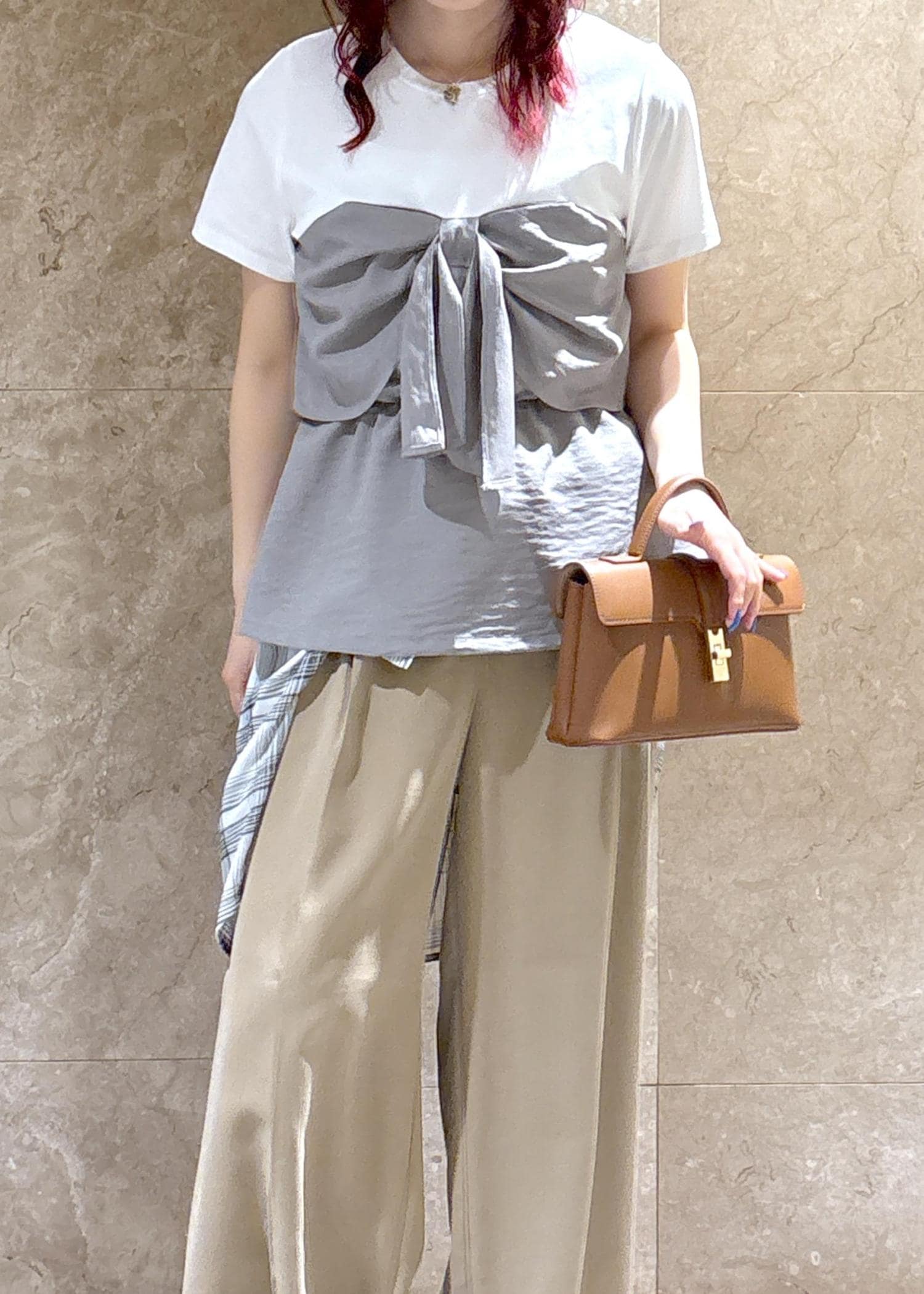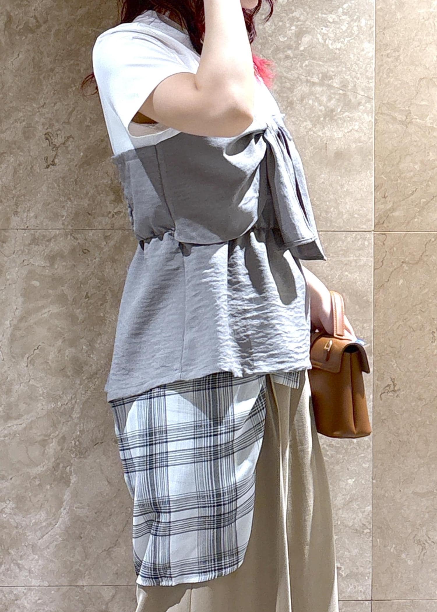VIS美easyリネンライクリボンビスチェトップス/イージーケア・接触冷感・セットアップ対応グレー / F¥5,489レビューオンオフ万能なリボンビスチェトップス。
