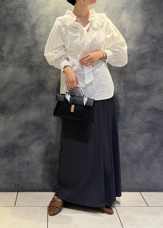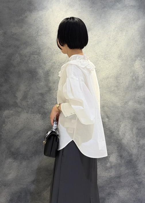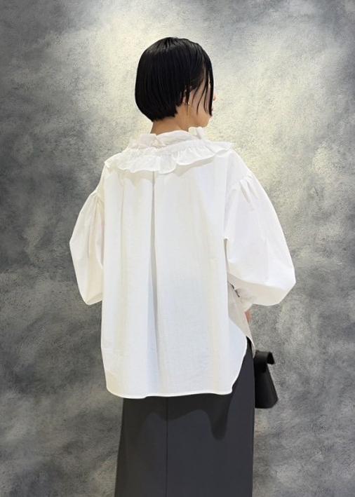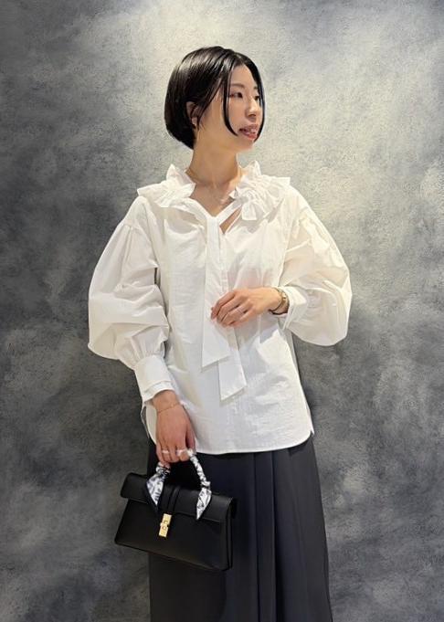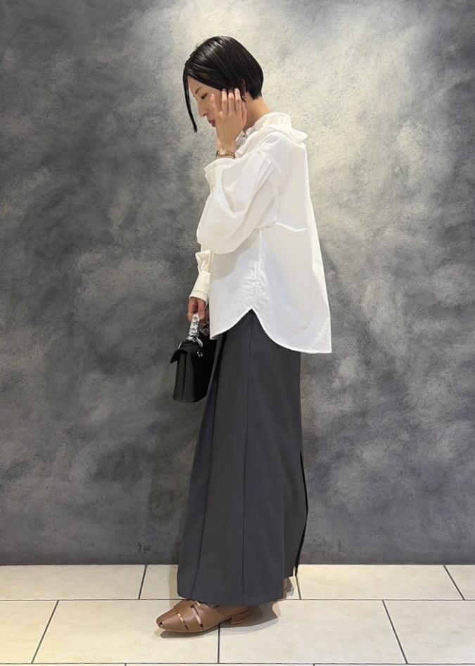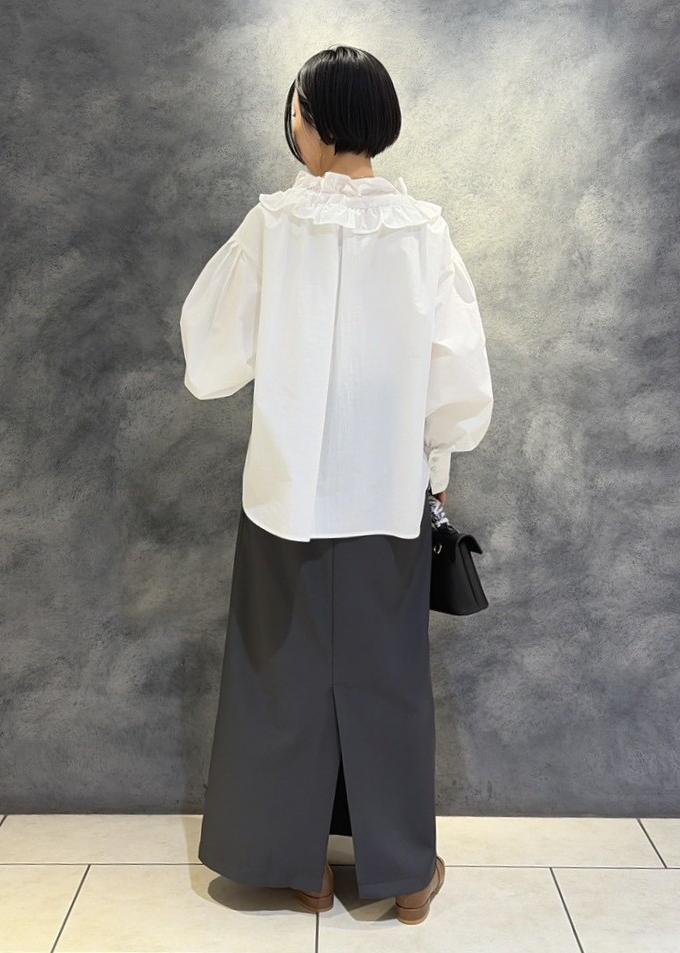 VISフリルネックブラウスオフホワイト / F¥5,930レビューハリのある素材でフリルブラウスでも甘くならずに合わせて頂けます。