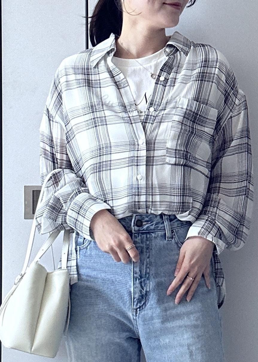 2BUY10%OFFVISチェック&シアーオーバーシャツホワイト系 / F¥5,489レビュー程よいゆとりとシャリ感のあるシアー生地なので