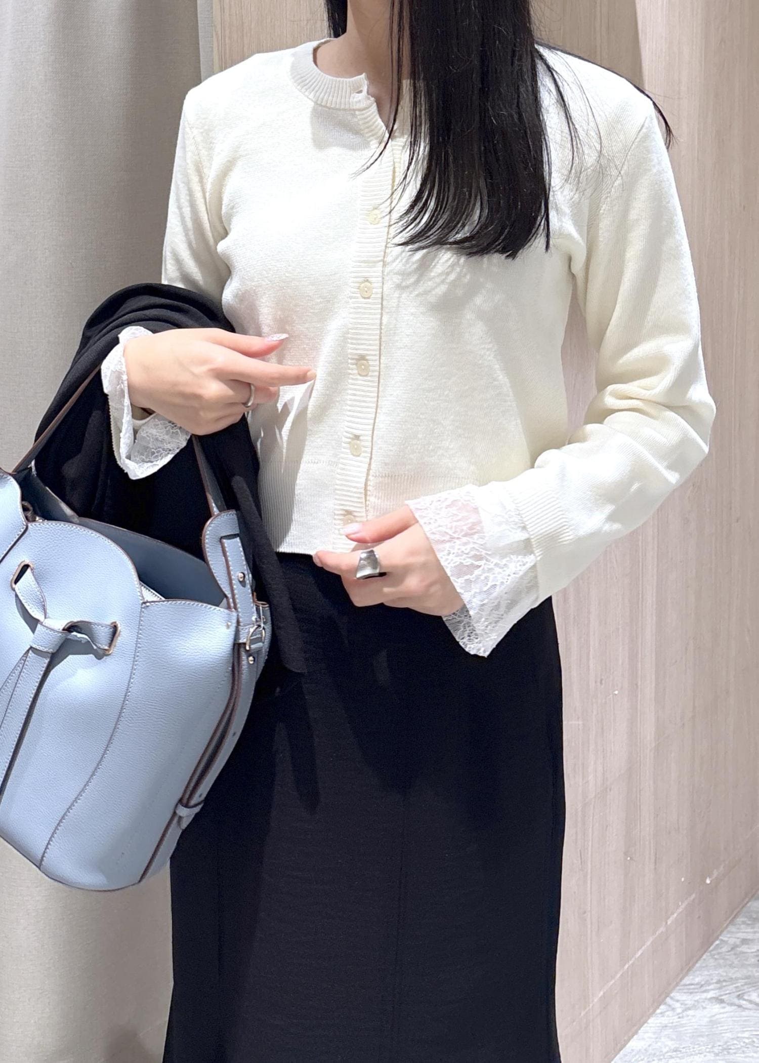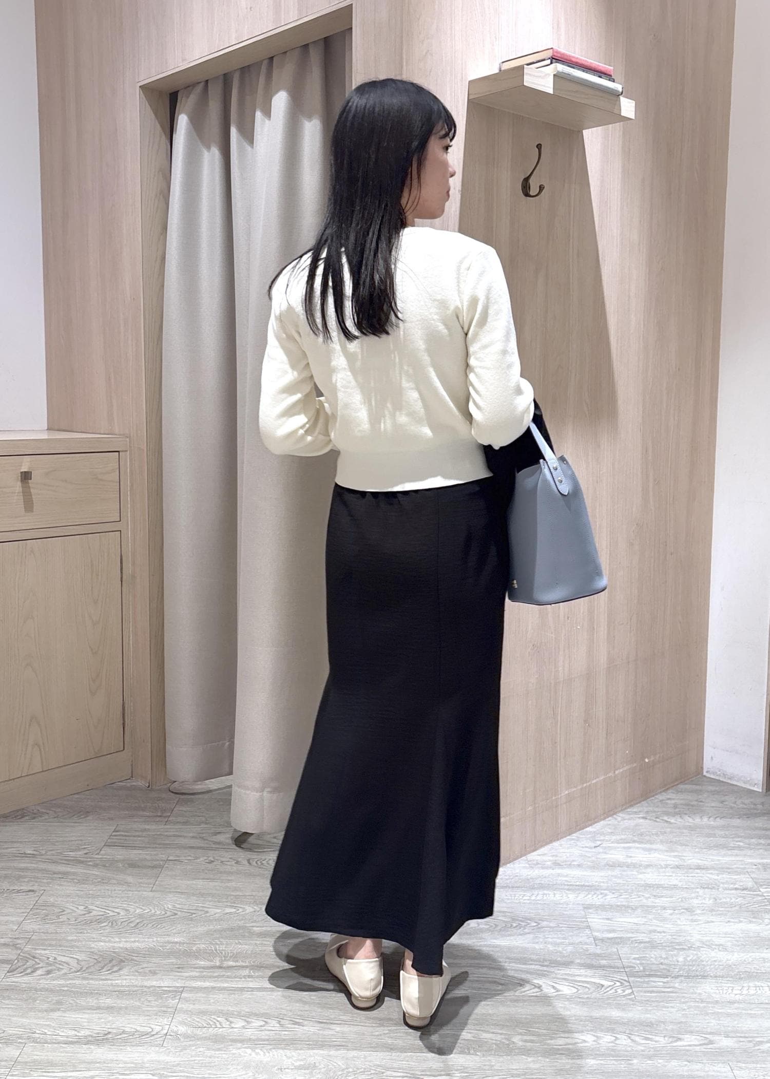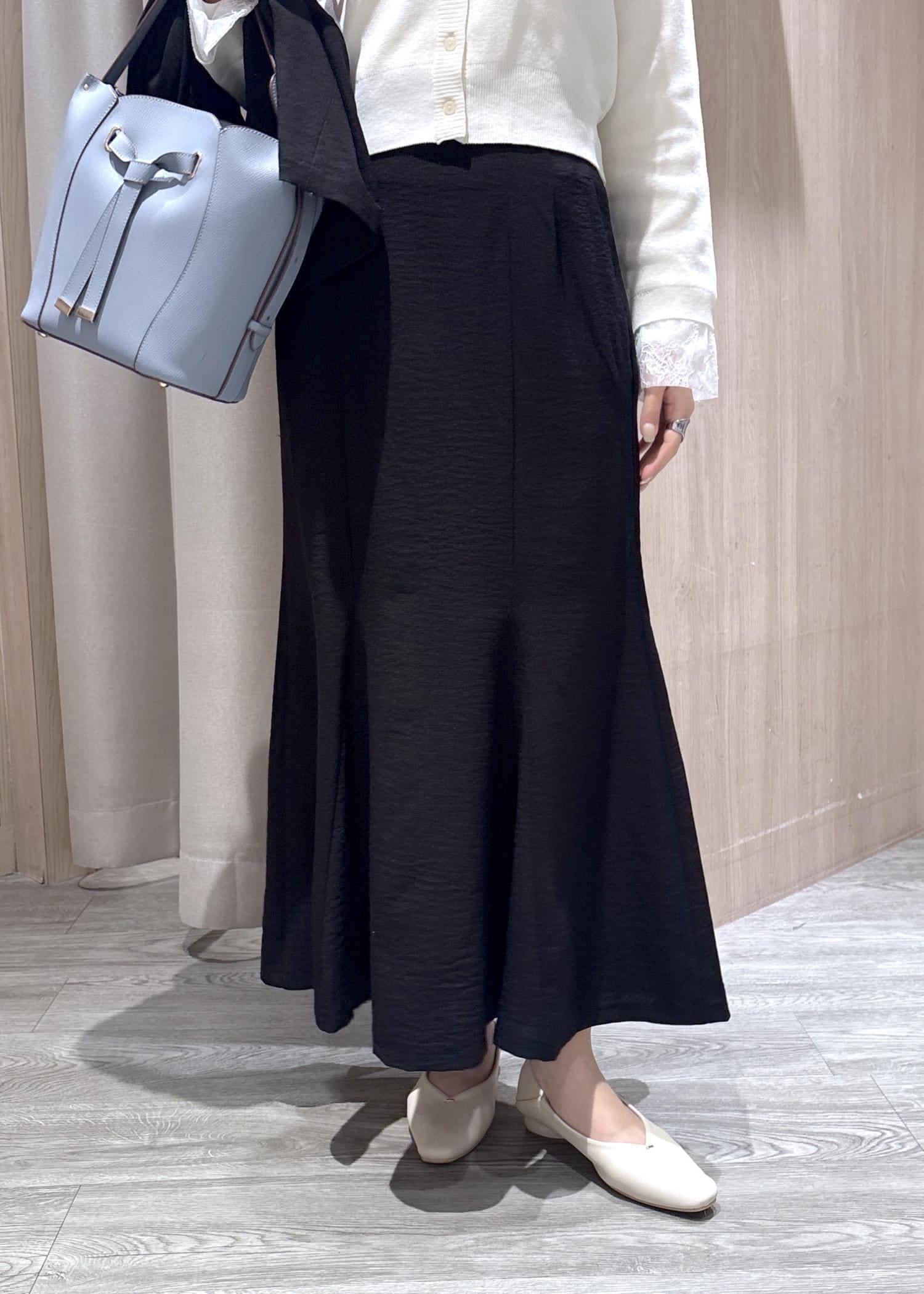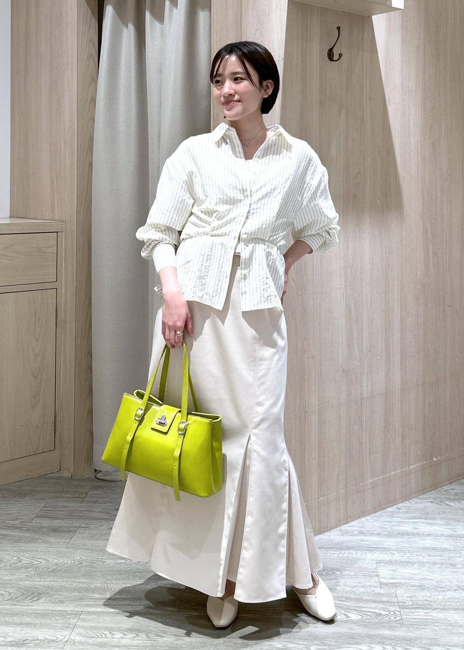 マーメイドスカートを王道の白色カーデと合わせました♪