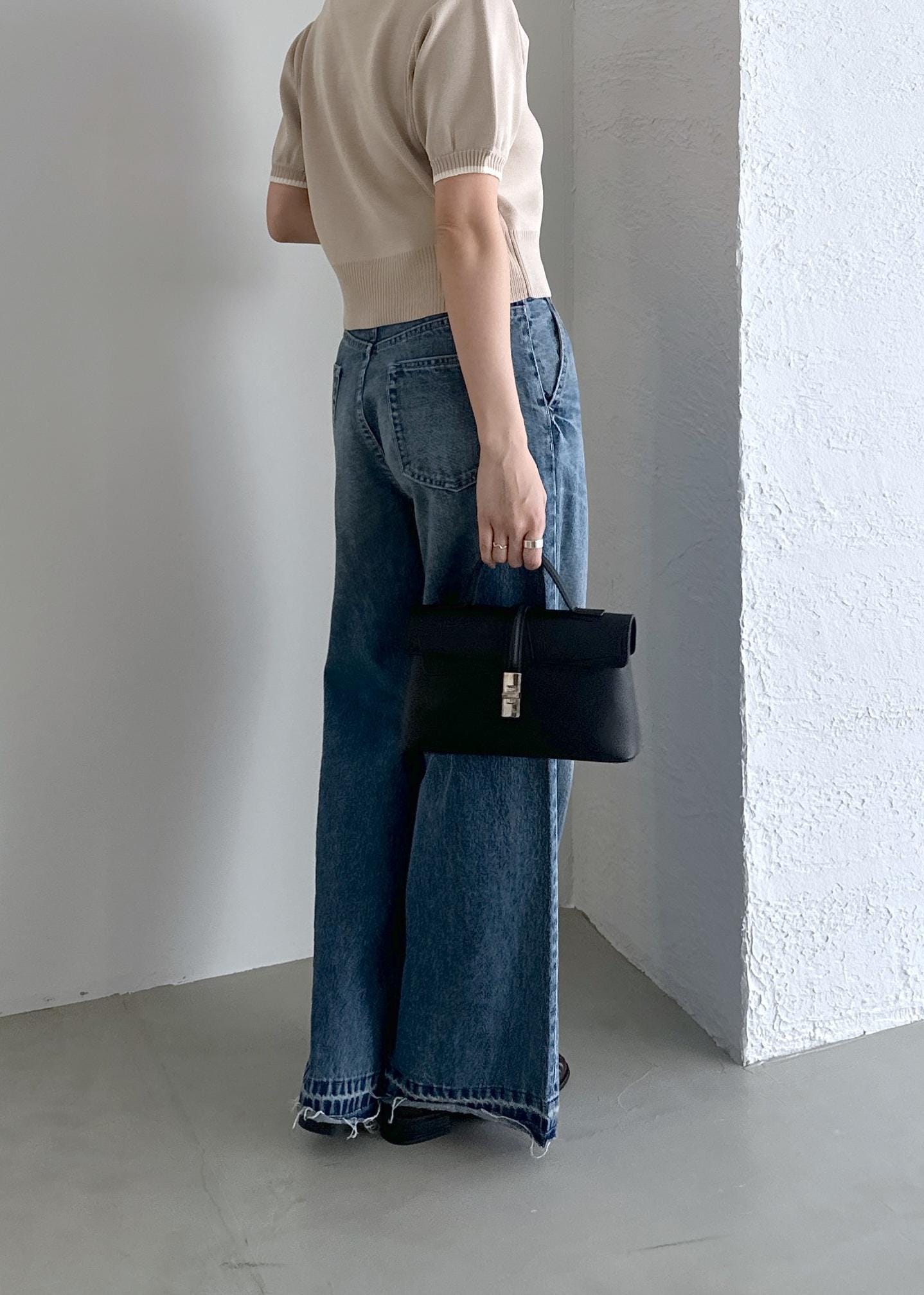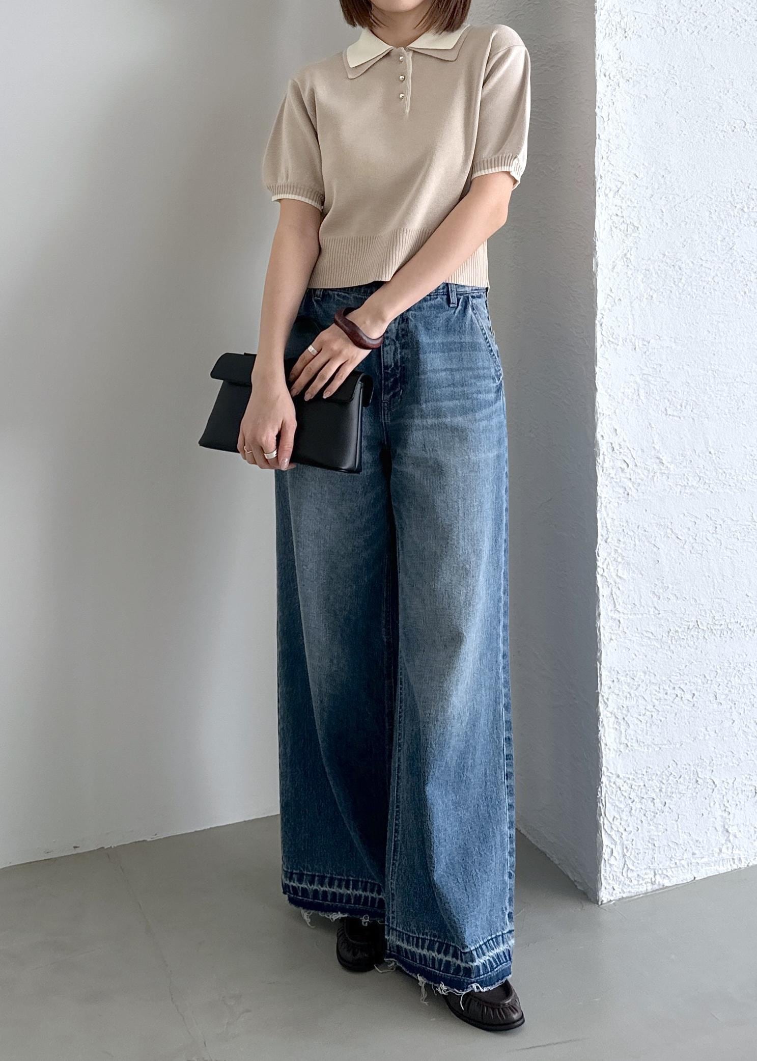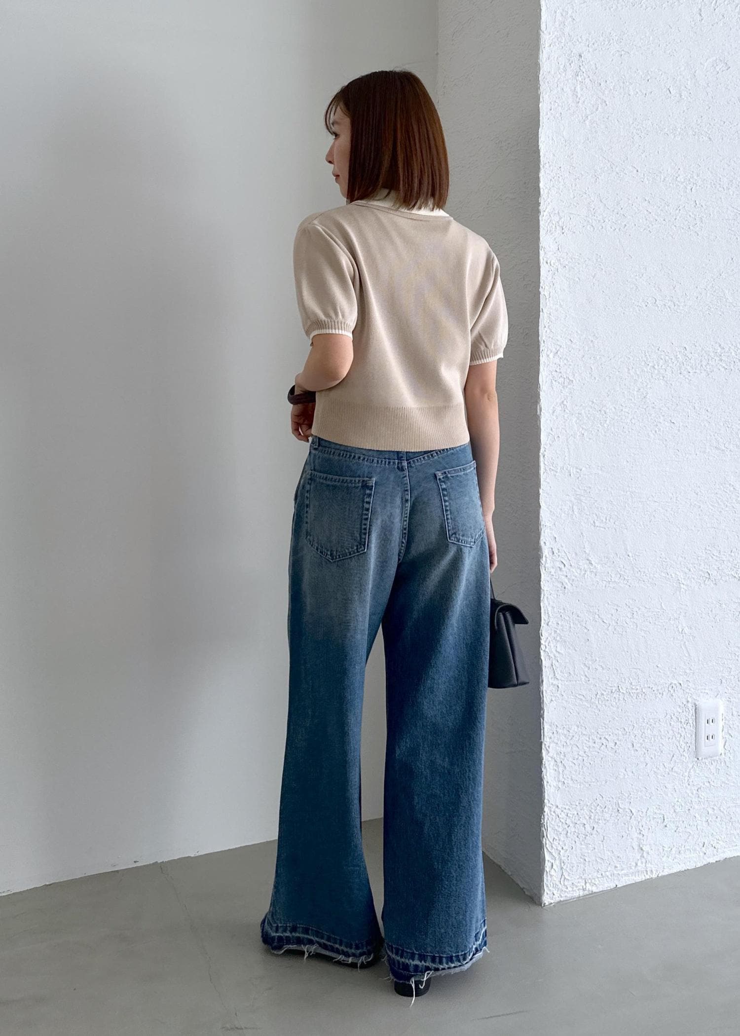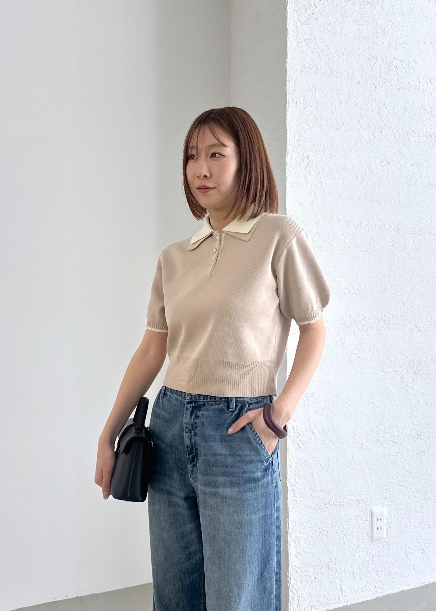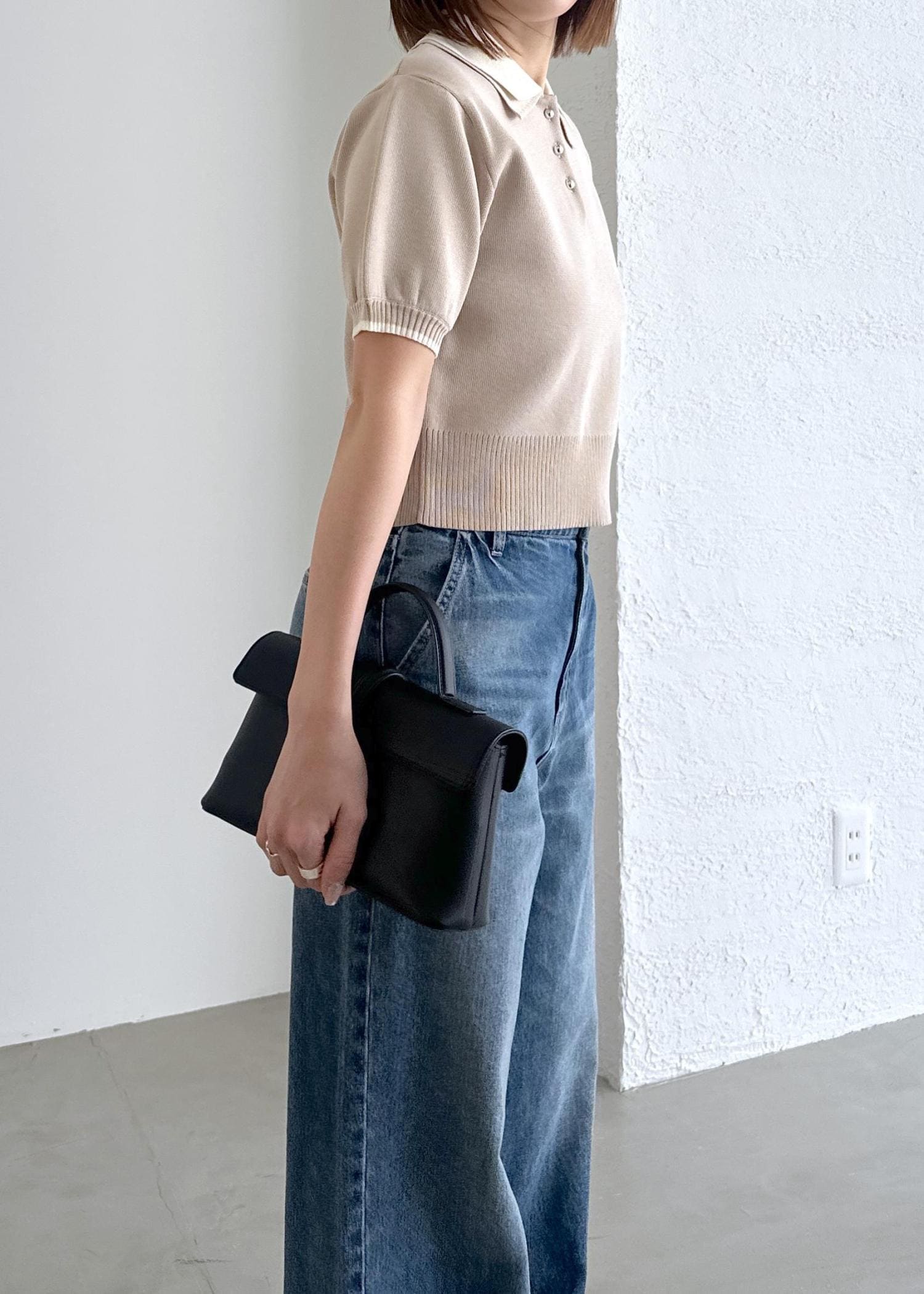 少しシャリ感のある素材なので、夏でもさらっと着れます!コンパクトな丈感でボトムを選ばないのも嬉しいポイントです! -