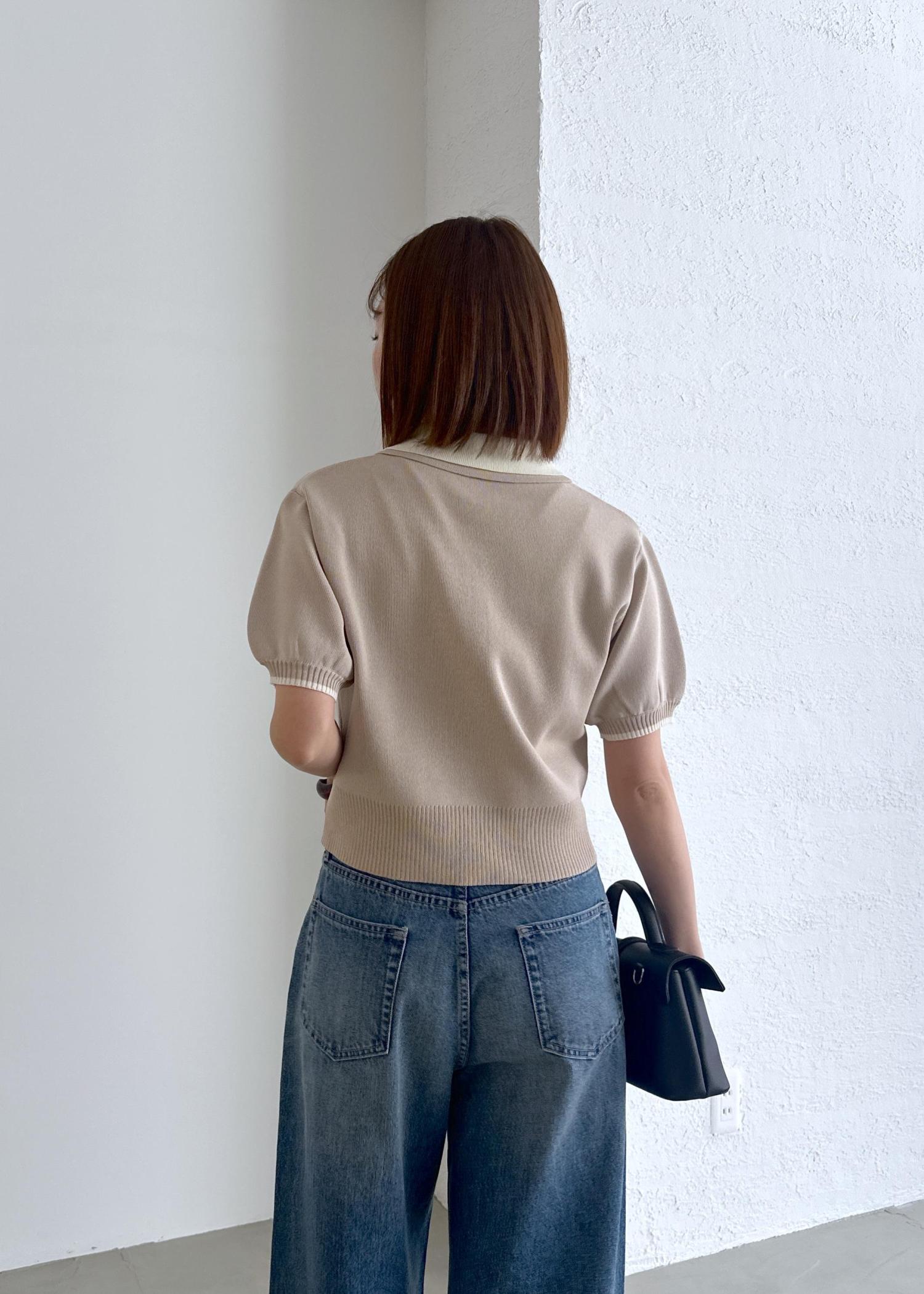 予約 2BUY10%OFFVISダブルカラー半袖ポロニットトップス/イージーケア・WEB限定カラーベージュ / F¥5,489レビュートレンド感のあるダブルカラーポロニット。