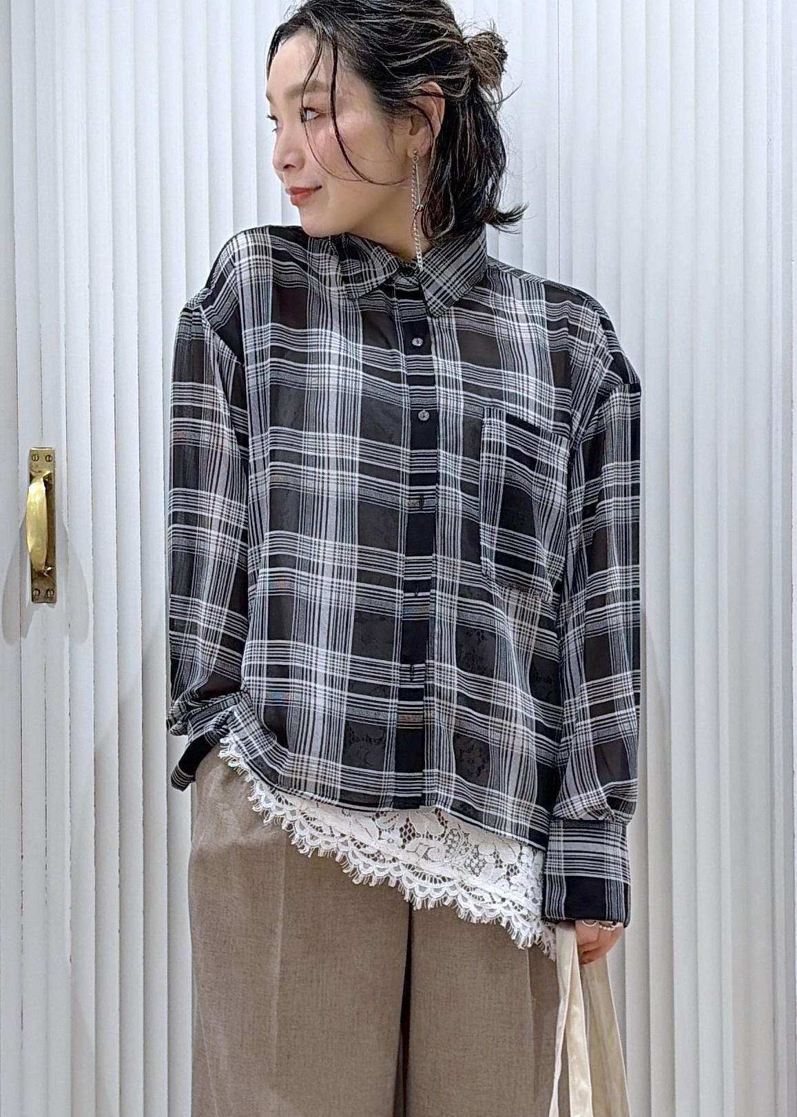 シアーチェックにレースを重ねて、軽やかさと女性らしさをプラス♡