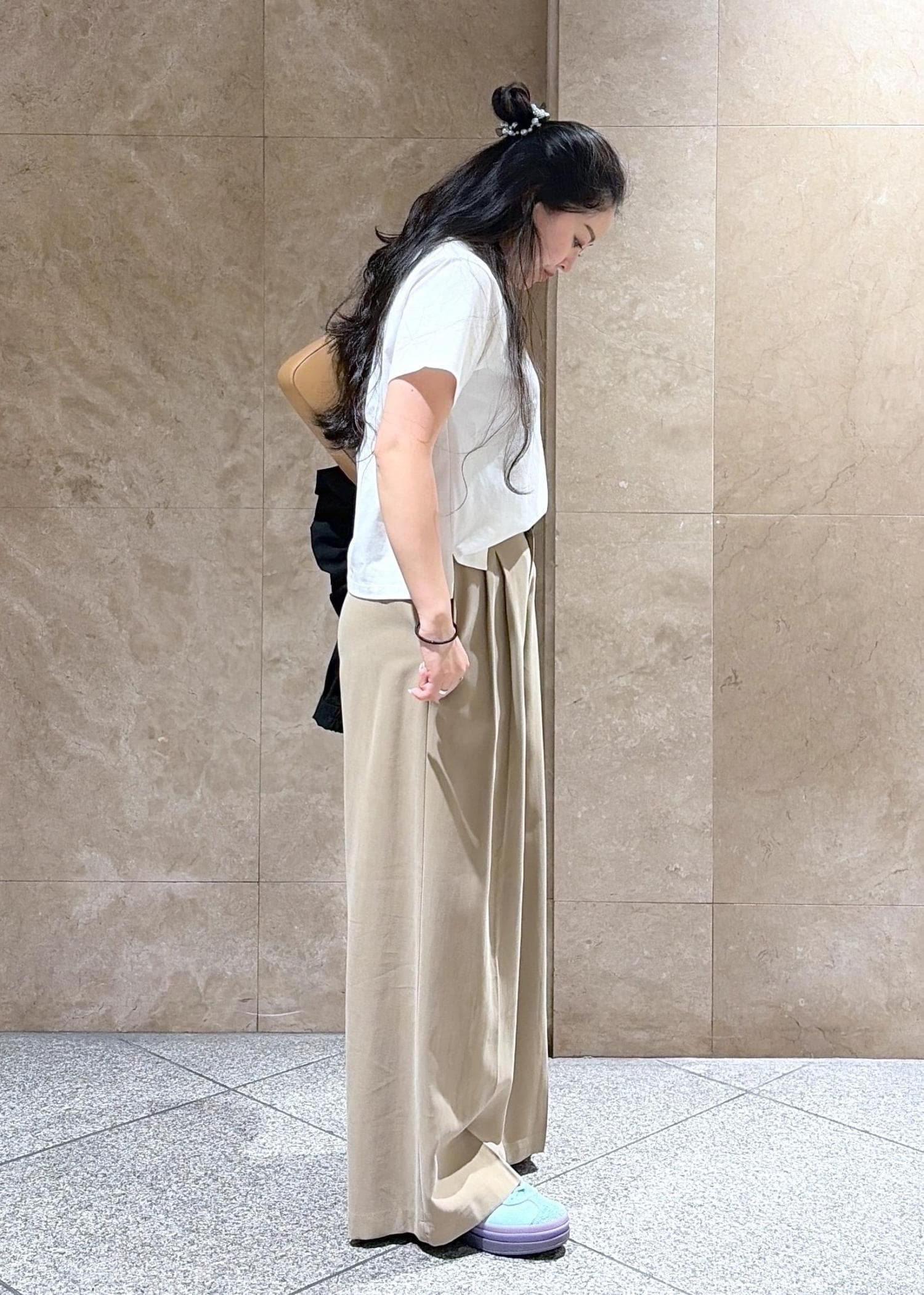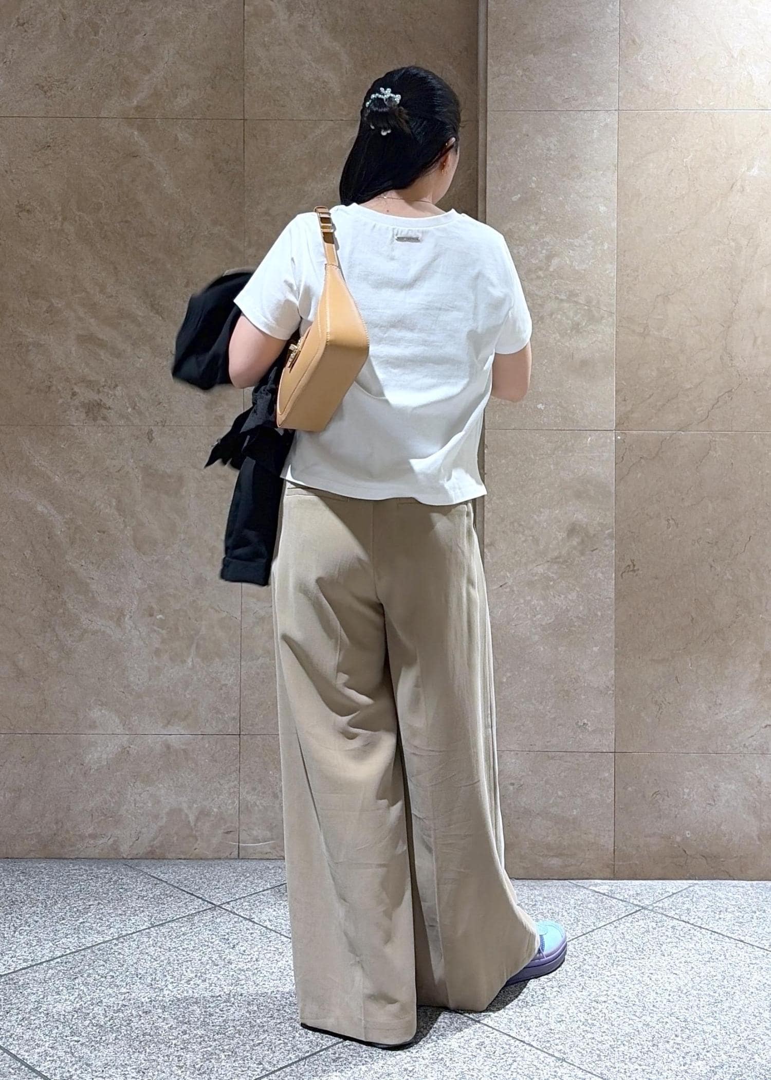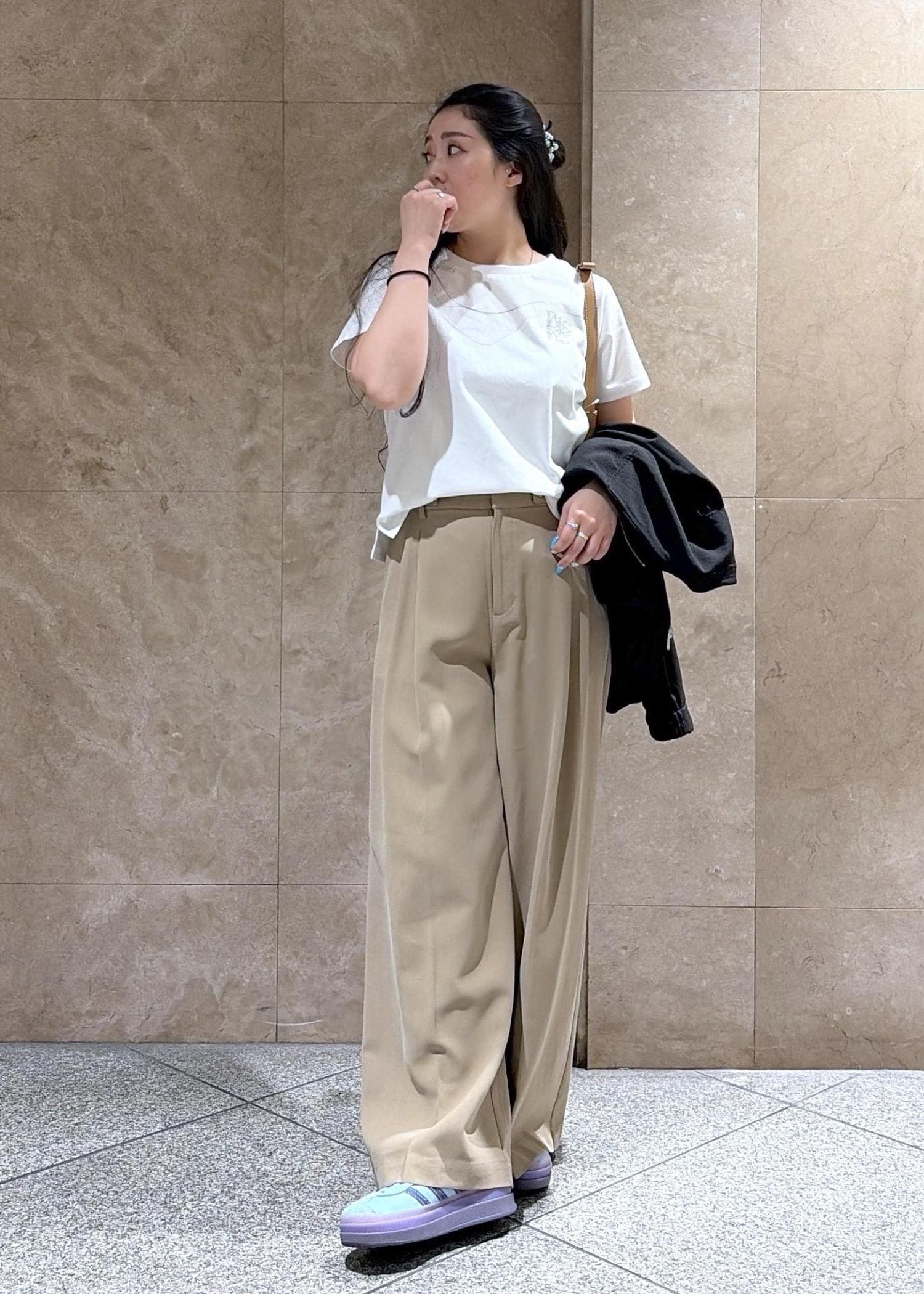 シンプルなTシャツと、ワイドパンツ合わせがカッコ良くもあり可愛いです◎