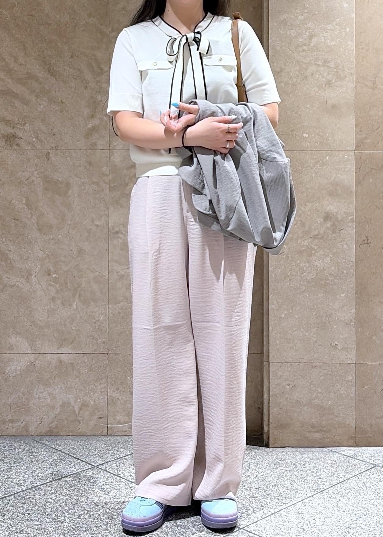 VISリボン付き半袖ニットプルオーバー/イージーケアキナリ系 / F¥5,489レビュー秋に出ていた長袖の夏バージョンが登場!リボンの甘さももちろんですが、袖の長さもちょうど良くて着用しやすい形です◎