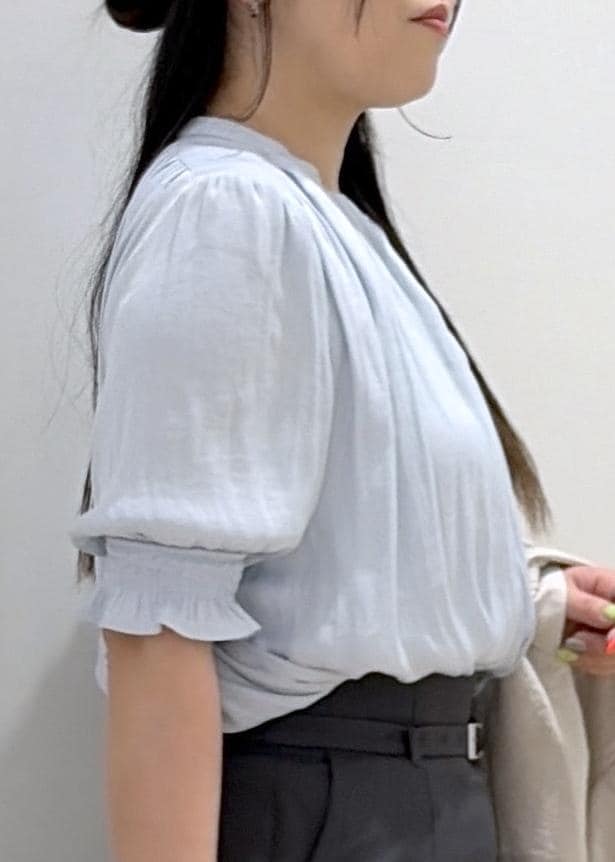 2BUY10%OFFVISエアリーサテンハーフスリーブブラウス/イージーケアブルー系 / F¥5,489レビュー二の腕部分がちょうどカバーしてくれるので、
