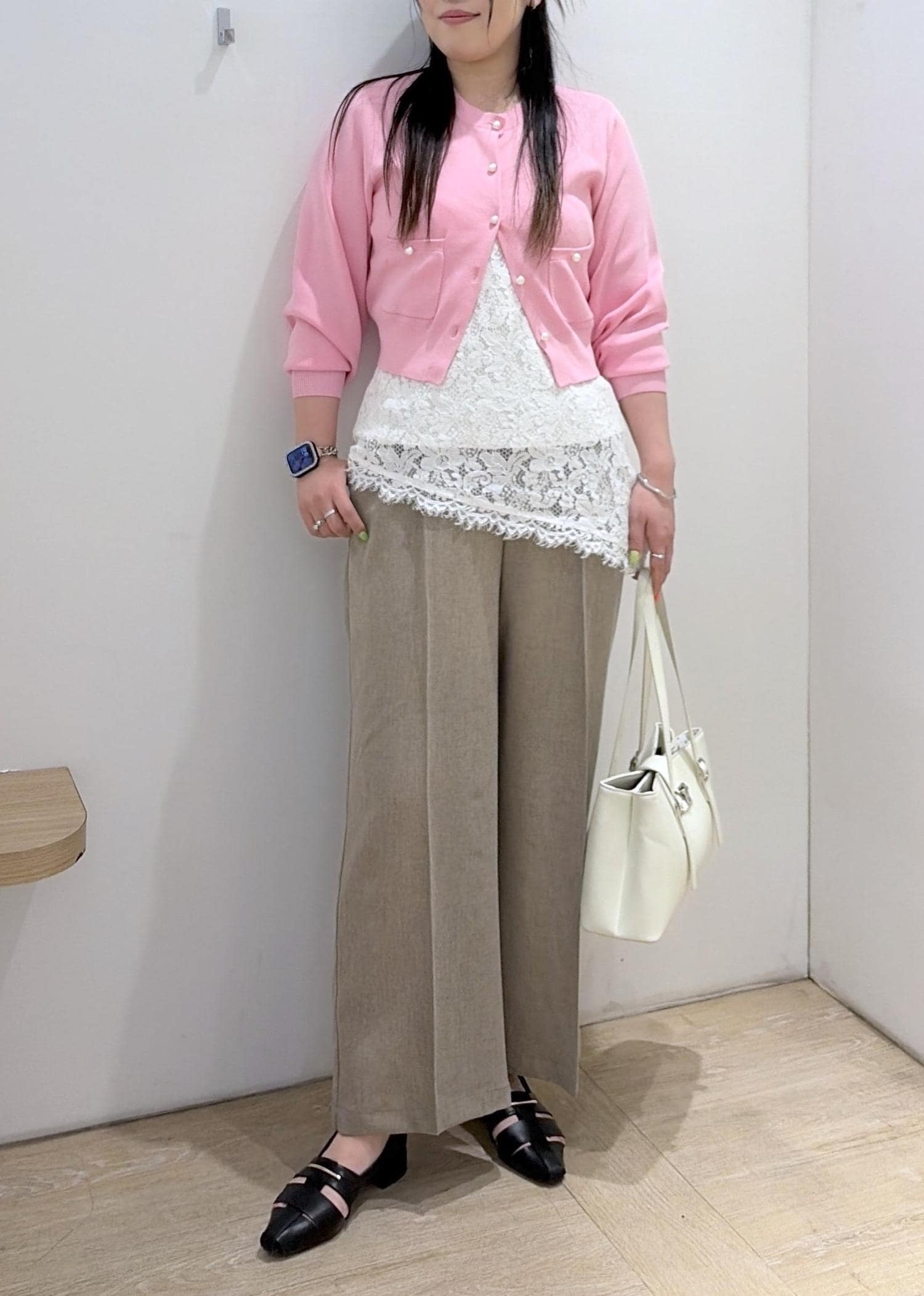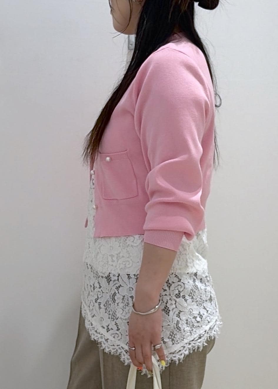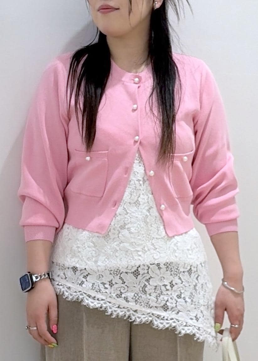 2BUY10%OFFVISパールボタンカーディガンピンク / F¥6,589レビュー身長168cmで腰が見えやすいコンパクトな丈感です。