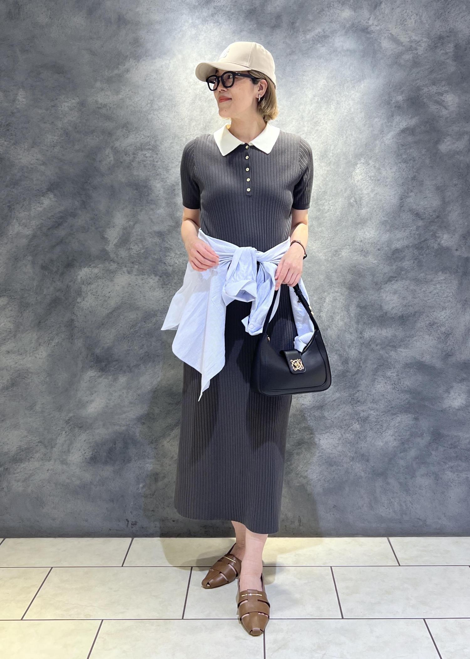VISポロ襟ニットワンピースチャコール / F¥7,689レビュー高身長がきても長さがあるワンピースです。