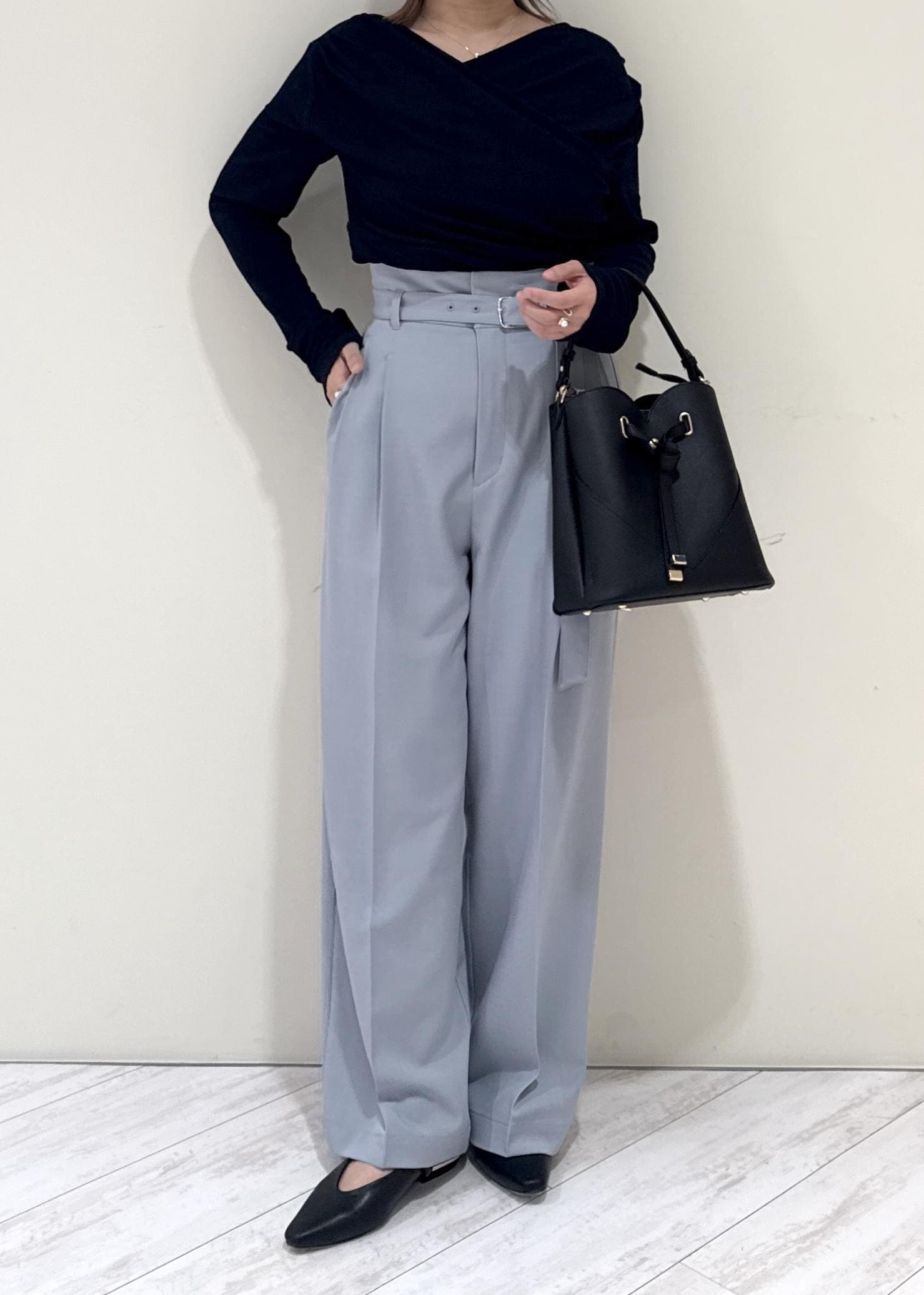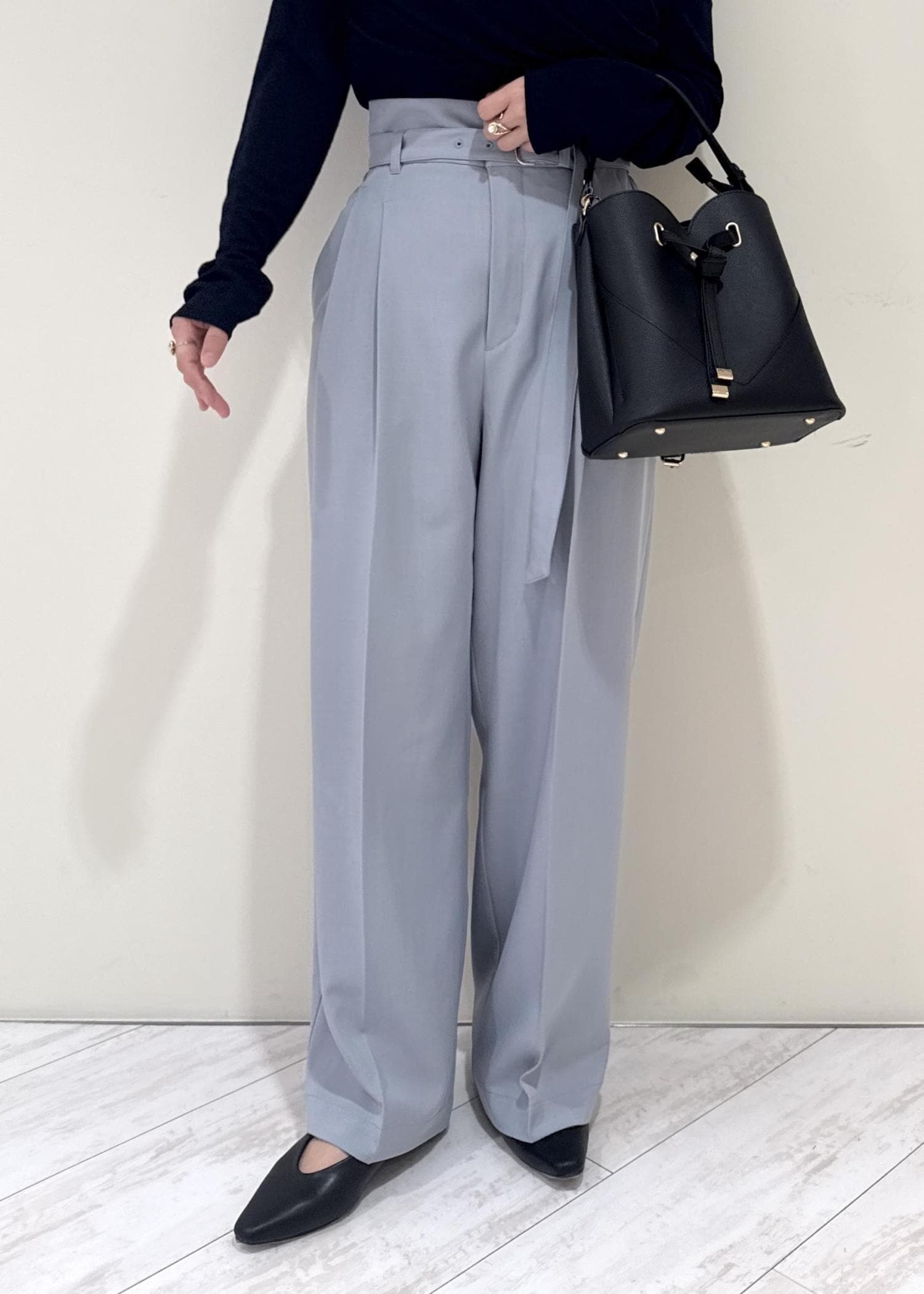 ヒールなしでも引きずらない丈の長さですが、ジャストサイズでキレイめに履きたい方はSSサイズがお勧めです。 -