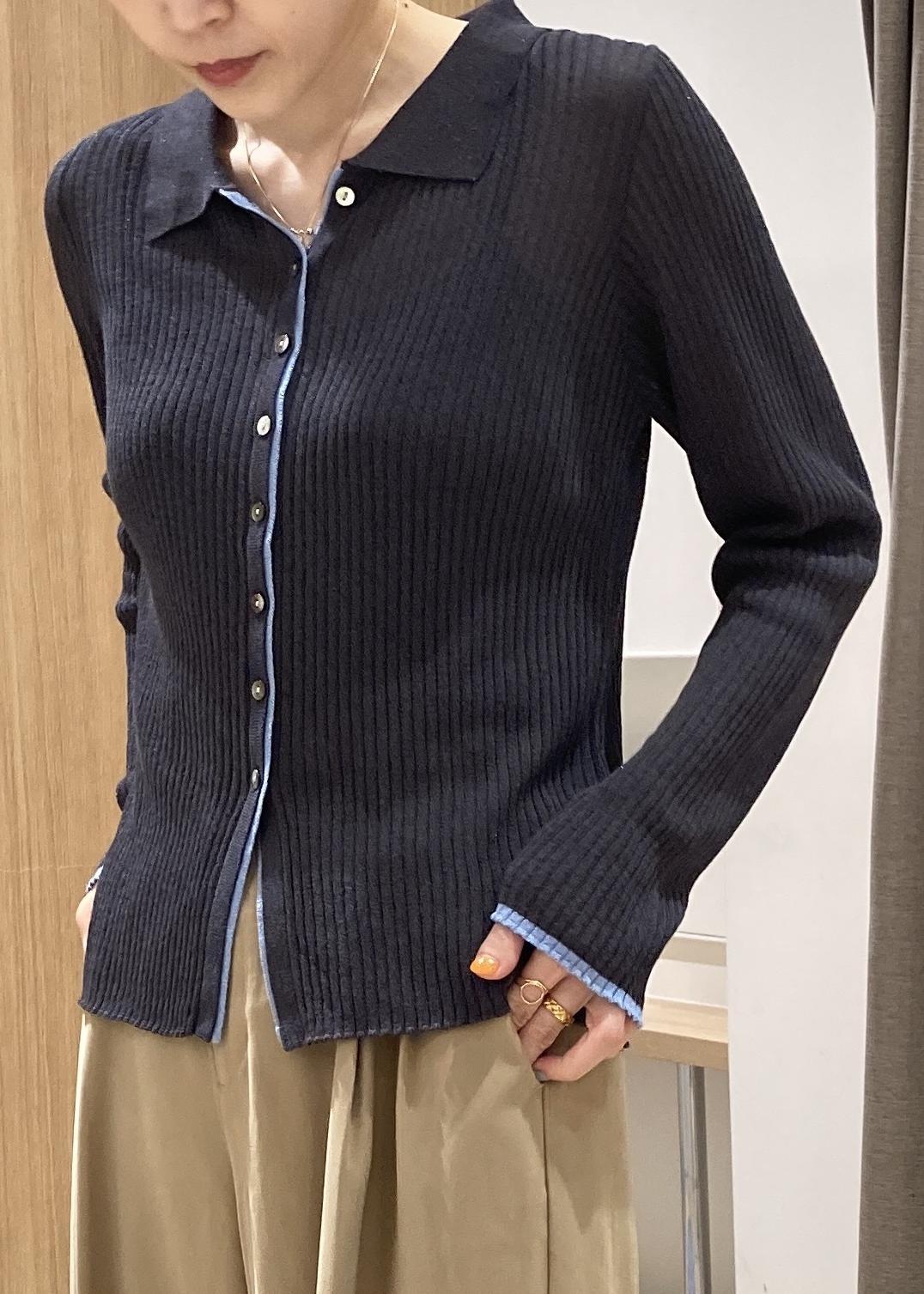 VISポロ襟配色シアーリブカーディガン/イージーケアチャコール / F¥6,589レビューバイカラーがポイントのシアーカーディガン。