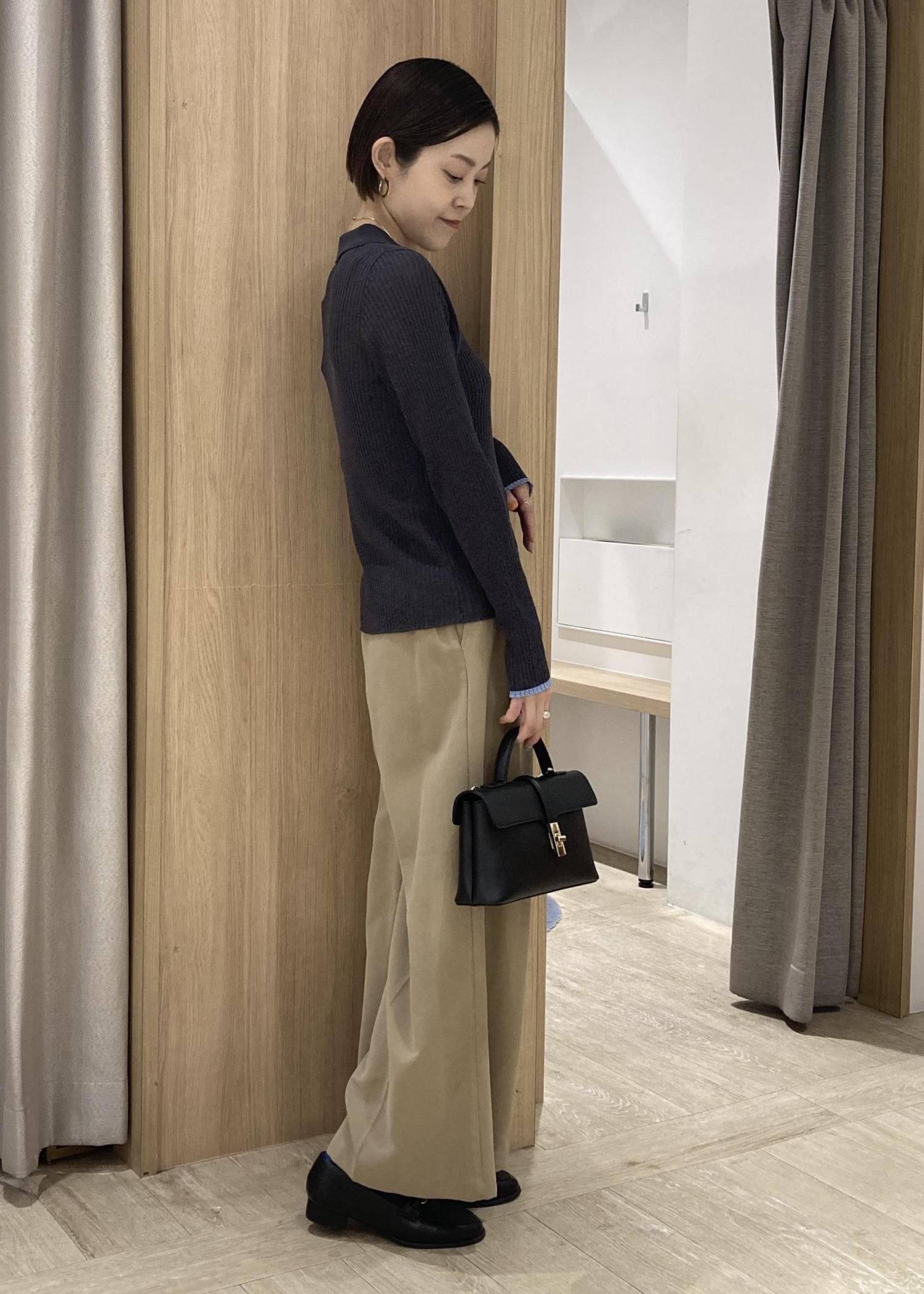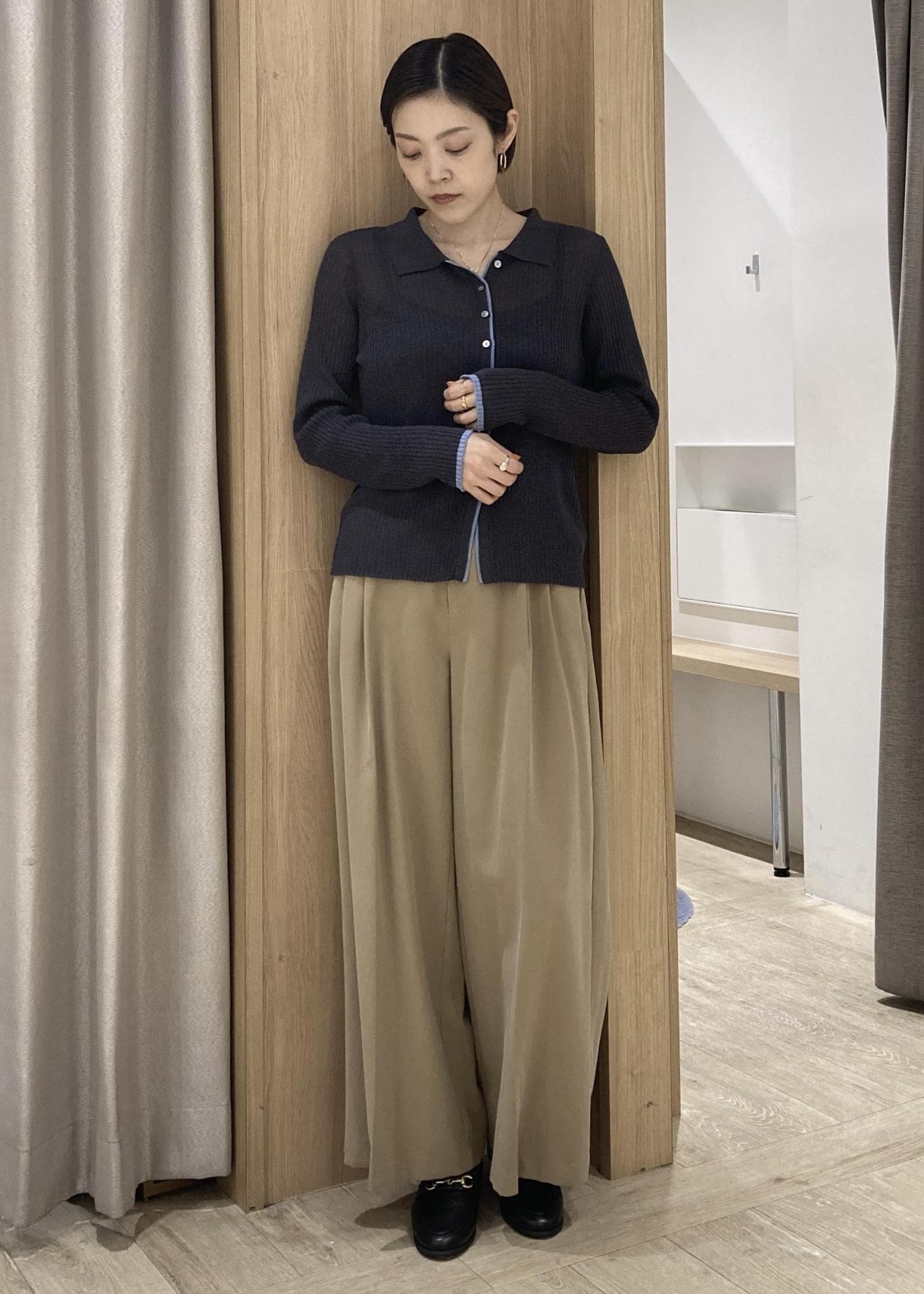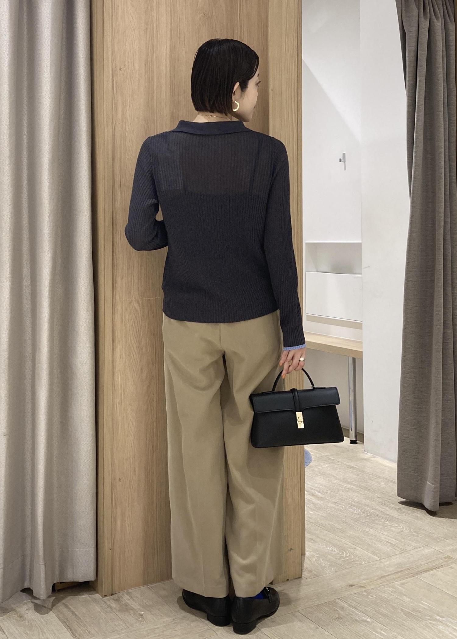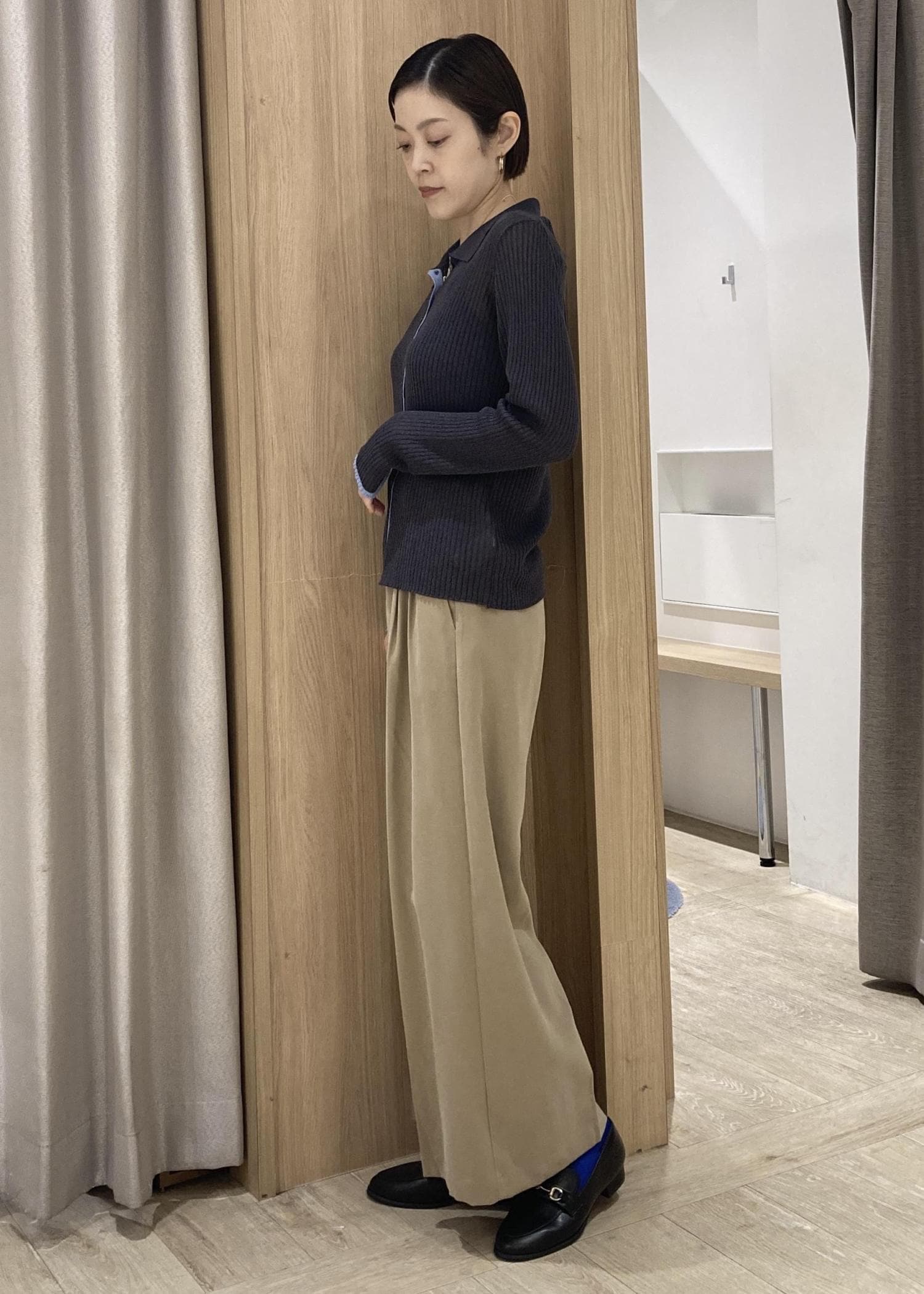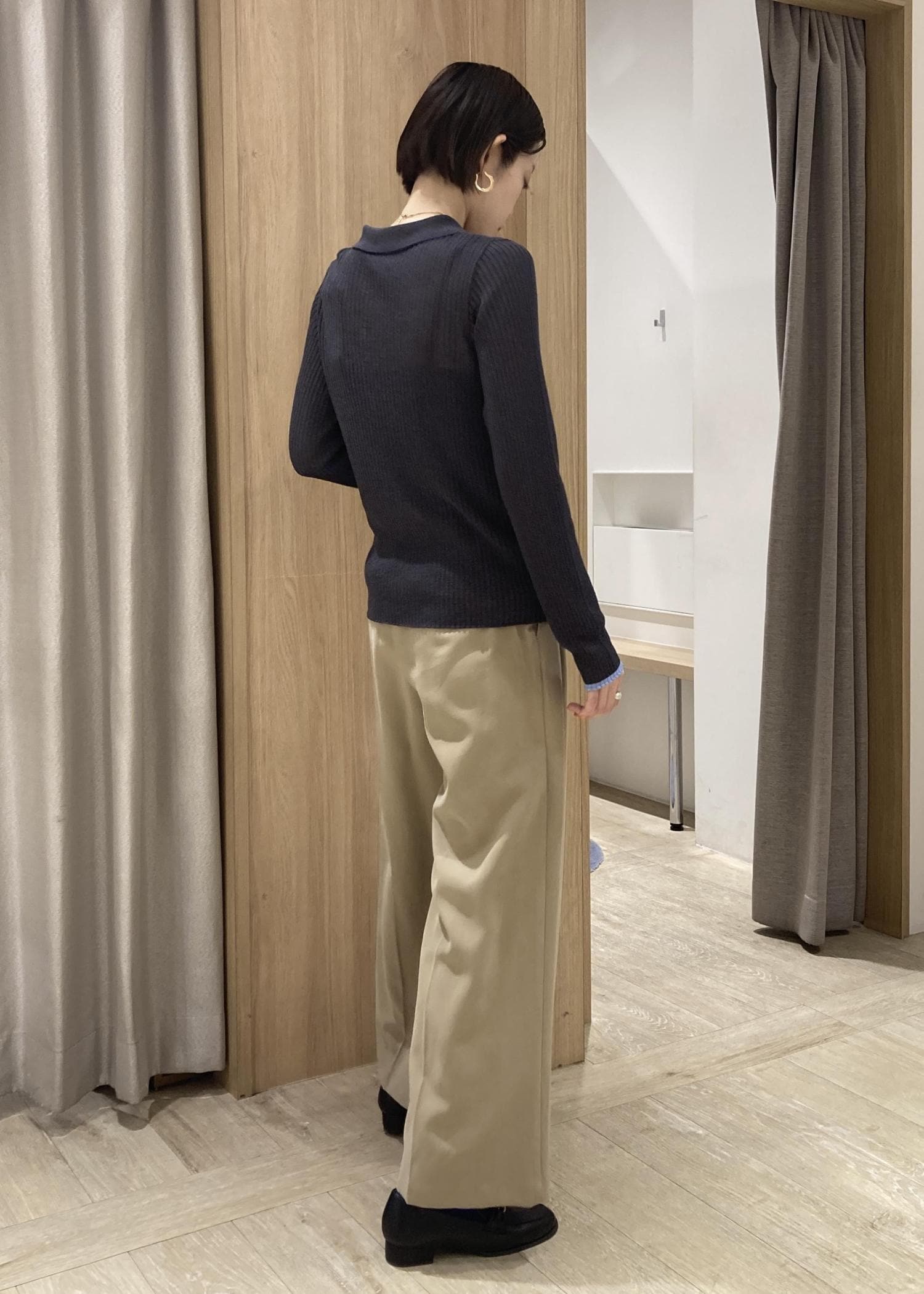 すっきりとした落ち感でフレアスカートなどボリュームのあるボトムとも相性ばっちり。