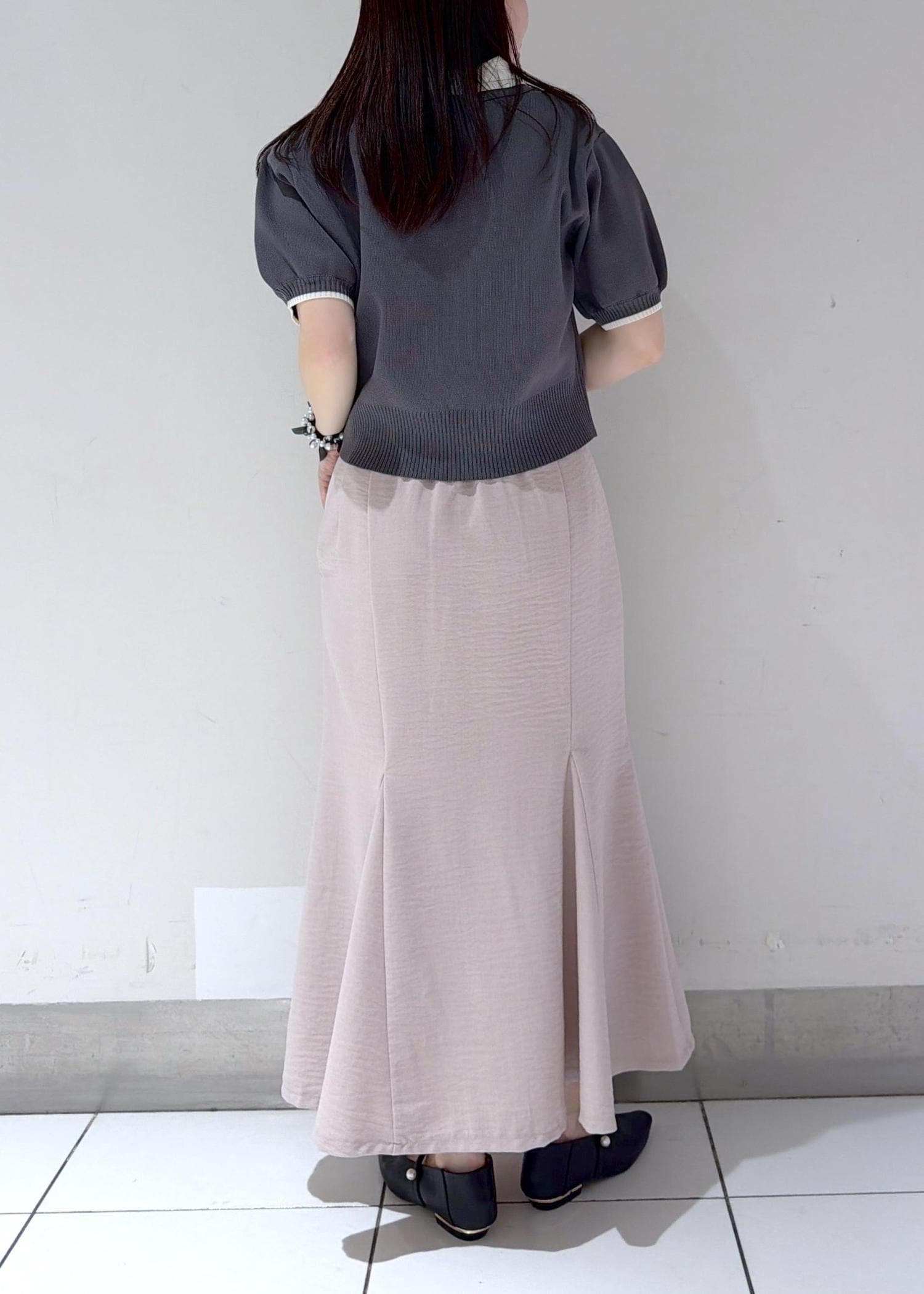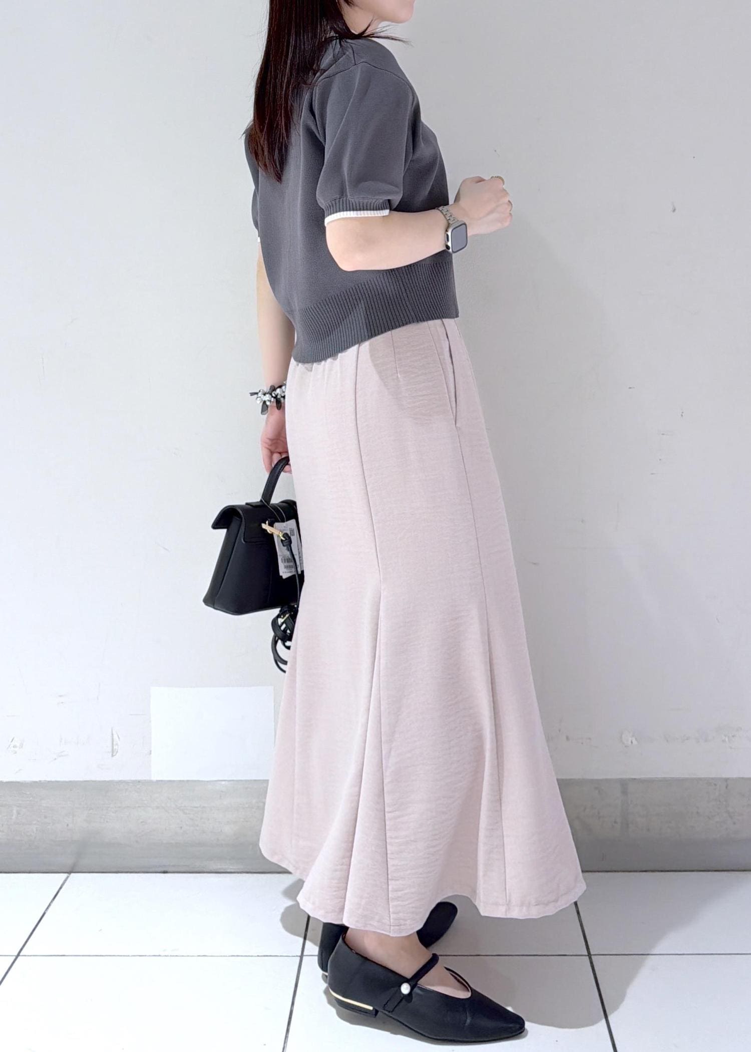 同じシリーズの『美easyリネンライクワイドパンツ』(BVS36100)はSS〜Sサイズを着用しているのですが、私は骨格ウェーブで腰周りの張りが気になるのでマーメイドスカートはSサイズにしました!