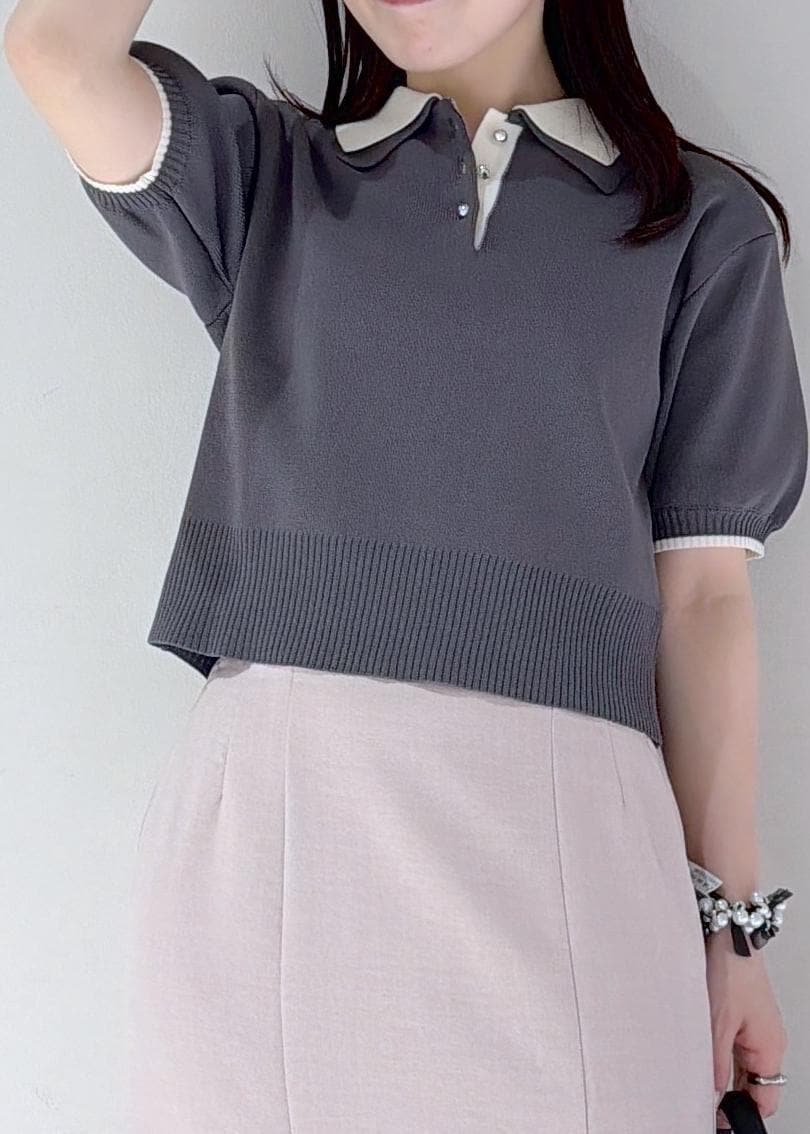 予約 2BUY10%OFFVISダブルカラー半袖ポロニットトップス/イージーケア・WEB限定カラーグレー / F¥5,489レビューコンパクトめのシルエットなのでアウトスタイルどちらも綺麗に着ていただけます◎シンプルだけどダブルカラーで一枚で主役級のトップスです!