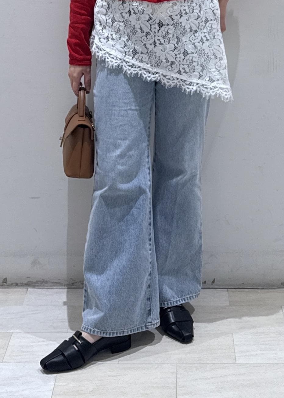 VISカラーフレアデニムパンツサックス / M¥8,899レビュー身長157cm/Mサイズ着用。骨格ストレートにぜひともオススメしたいフレアーデニムパンツ⭐︎着丈はくるぶしぐらいの長さになり、少し長めでした。ガッツリフレアというよりかは、セミフレアのデザインにはなるので初めての方にもチャレンジしやすいかと思います。色味が3色展開なのでイメージがガラリと変わるので色違い持っていても間違いなしです。