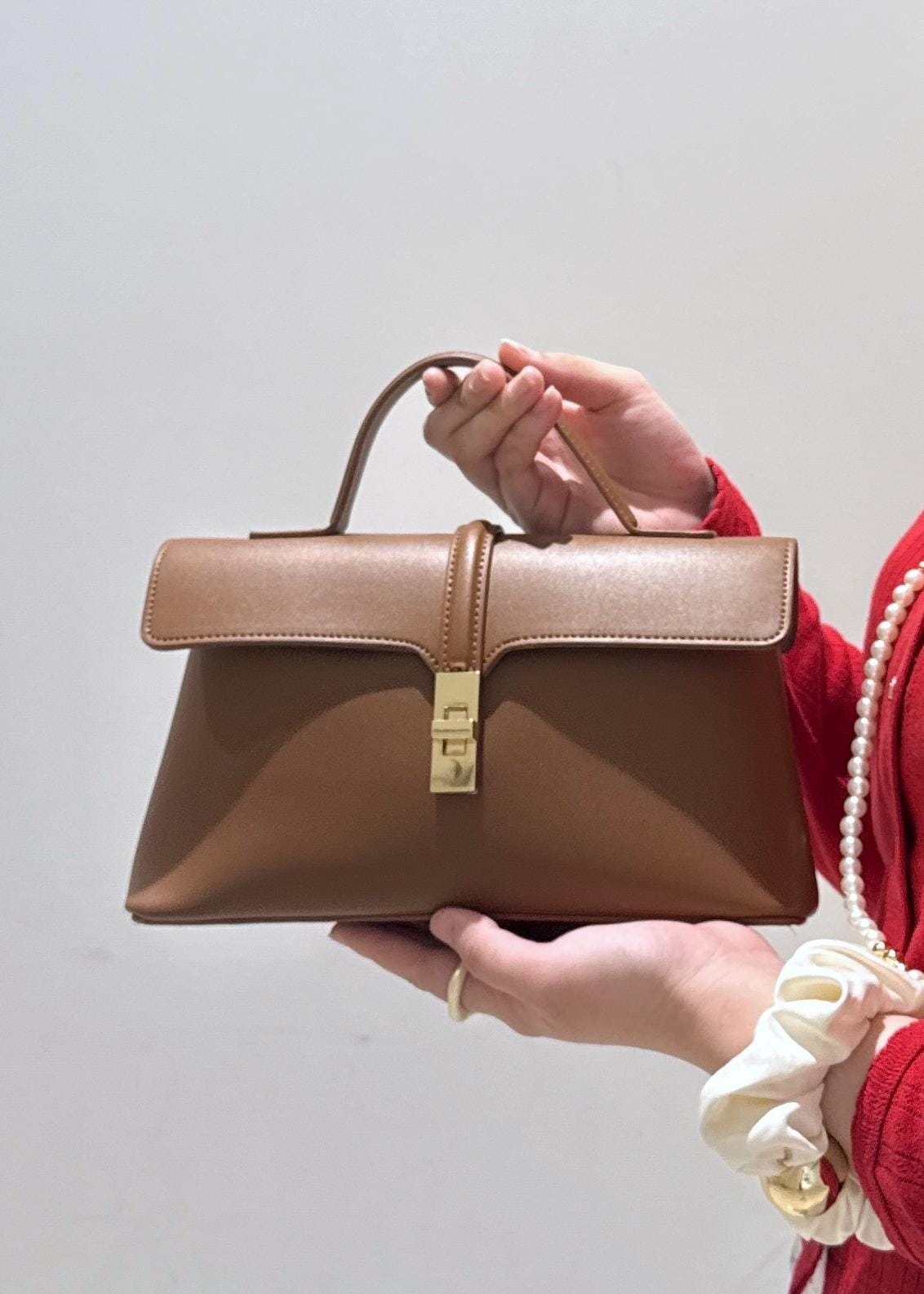 VISひねり金具ワンハンドルミニショルダーバッグ/2WAY,WEB限定カラーありキャメル / F¥5,489レビュー台形型のワンハンドルバッグ⭐︎小さめなバッグで見た目以上に物もたくさん入り軽いです。シンプルなデザインではありますがゴールドの金具がキラッと光り、高見えする商品だと思います。マチ有りなので、折り畳み財布や携帯、薄手のハンドタオル、リップやミラーなどが入りました。中にショルダー紐も付いているのでお洋服に合わせて変えることができます。