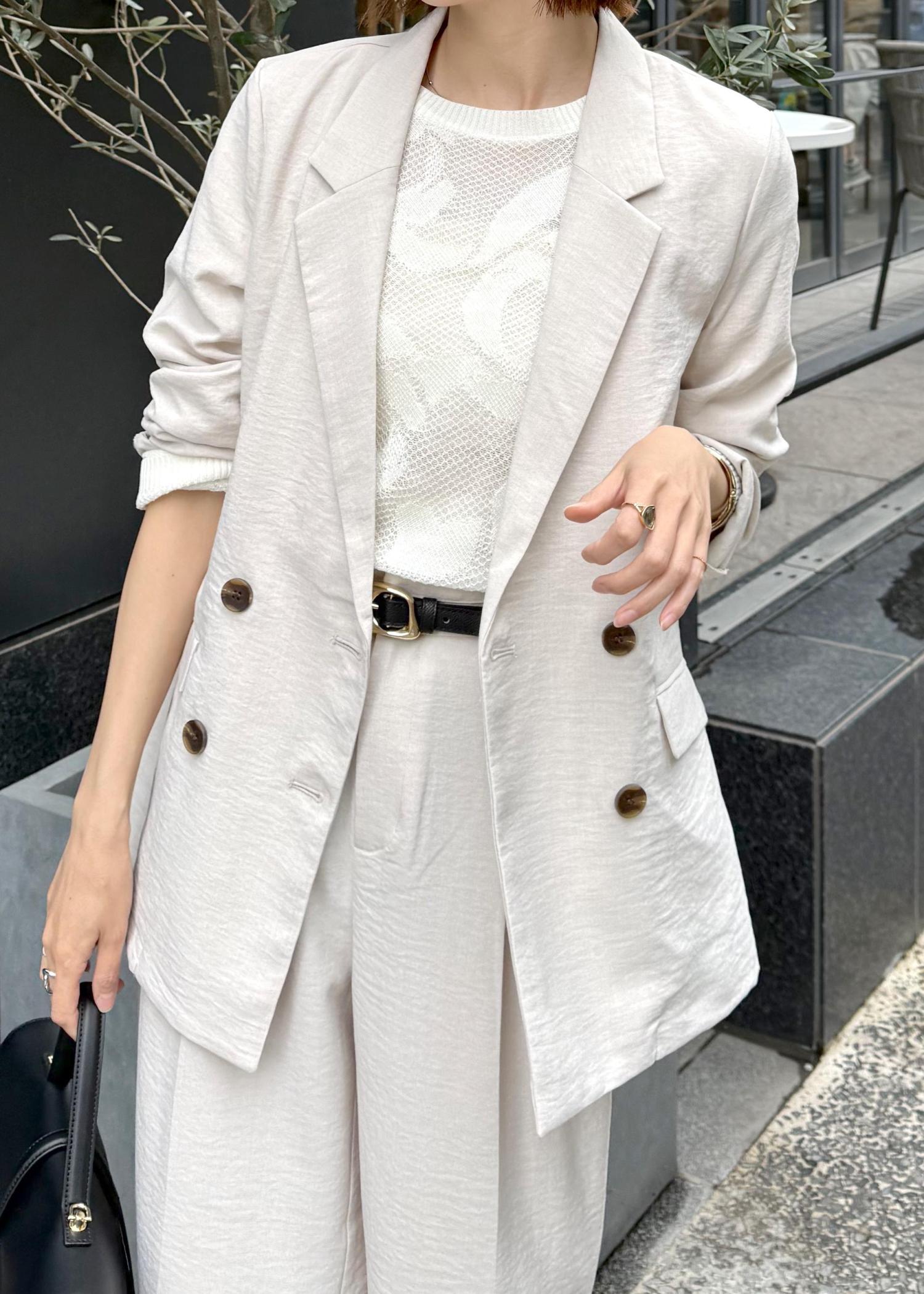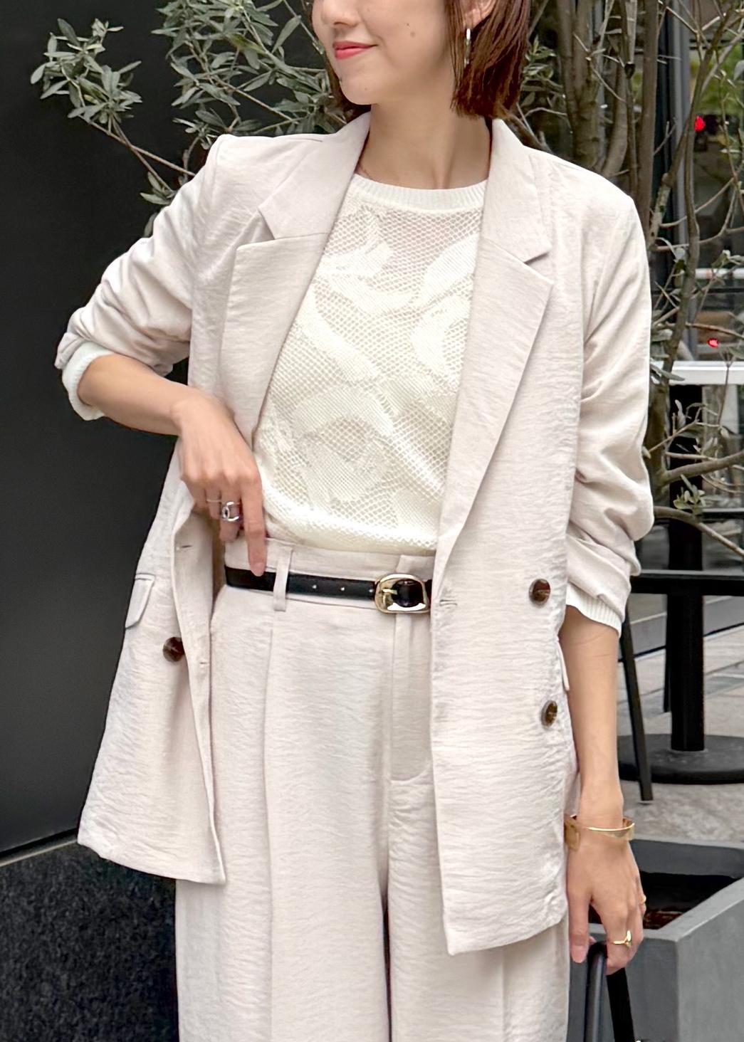 インナーに透け感のあるニットを合わせてワントーンに♪