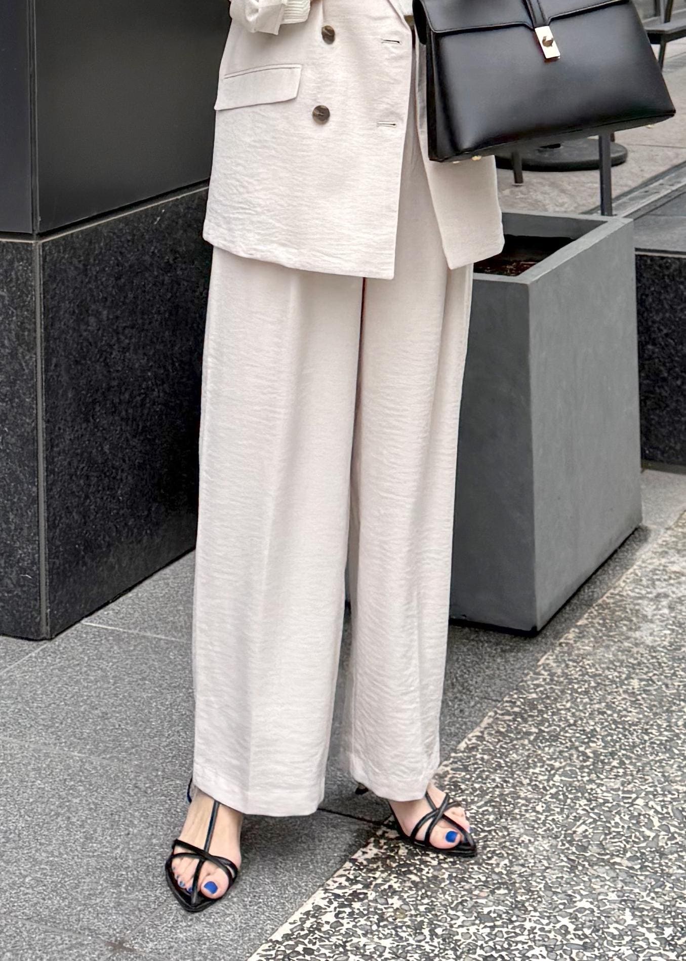 リネンライクのサラッとした素材で夏まで履きやすいワイドパンツです。