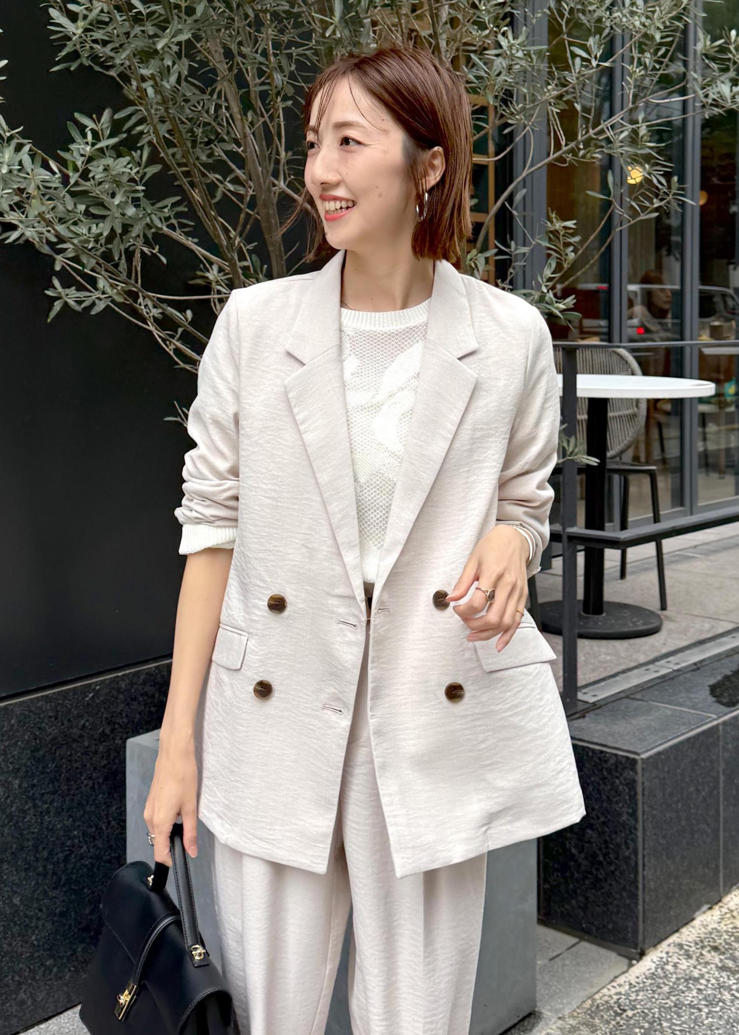 2BUY10%OFFVIS美easyリネンライクテーラードジャケット/イージーケア・接触冷感・セットアップ対応キナリ / M¥7,909レビュー身長166センチでMサイズ着用、お尻すっぽり隠れる長さでした。