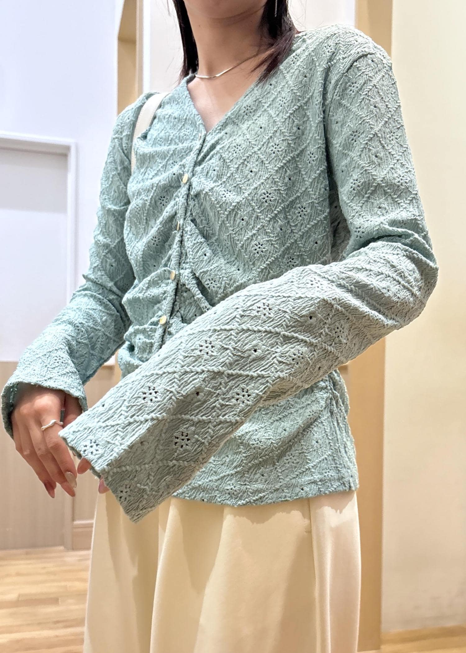 VISフラワージャガードカットカーディガン/2WAY・イージーケアグリーン系 / F¥5,489レビューさらっとした生地感が春にちょうどいいカーディガンです。