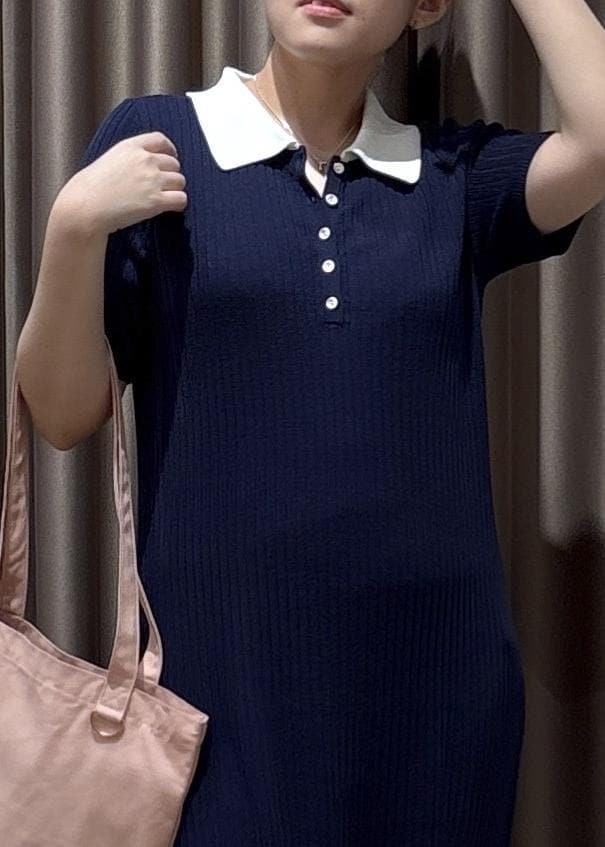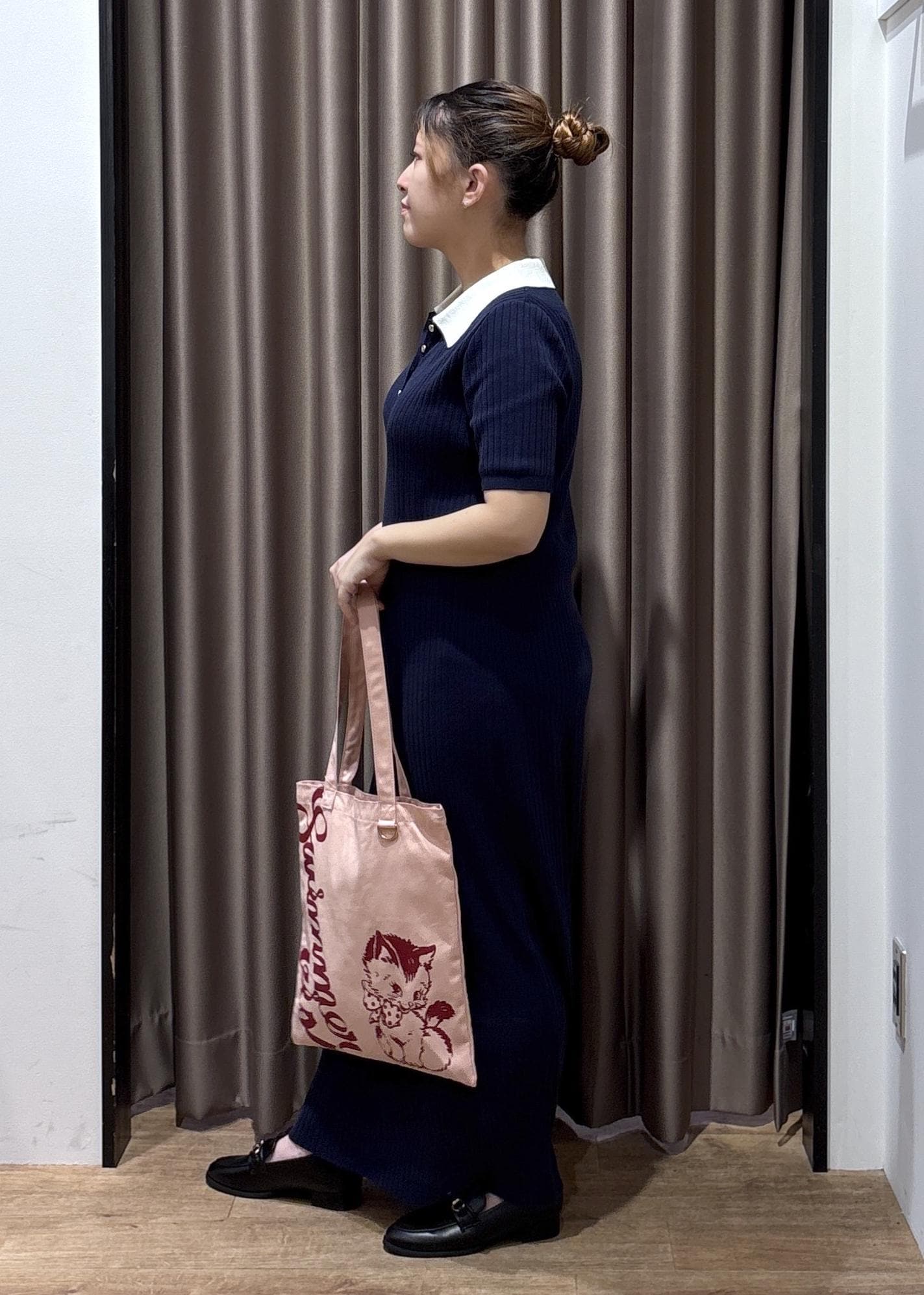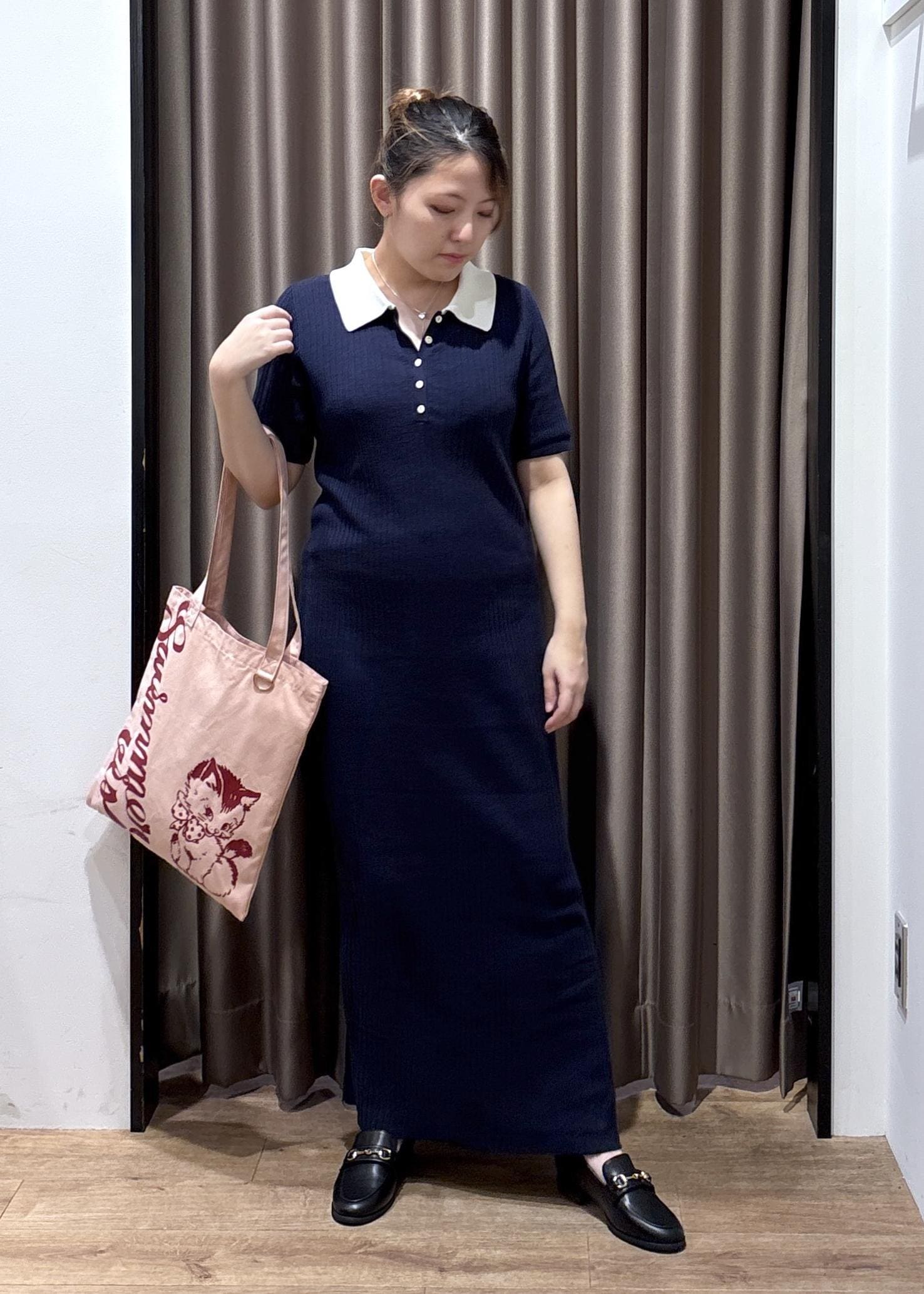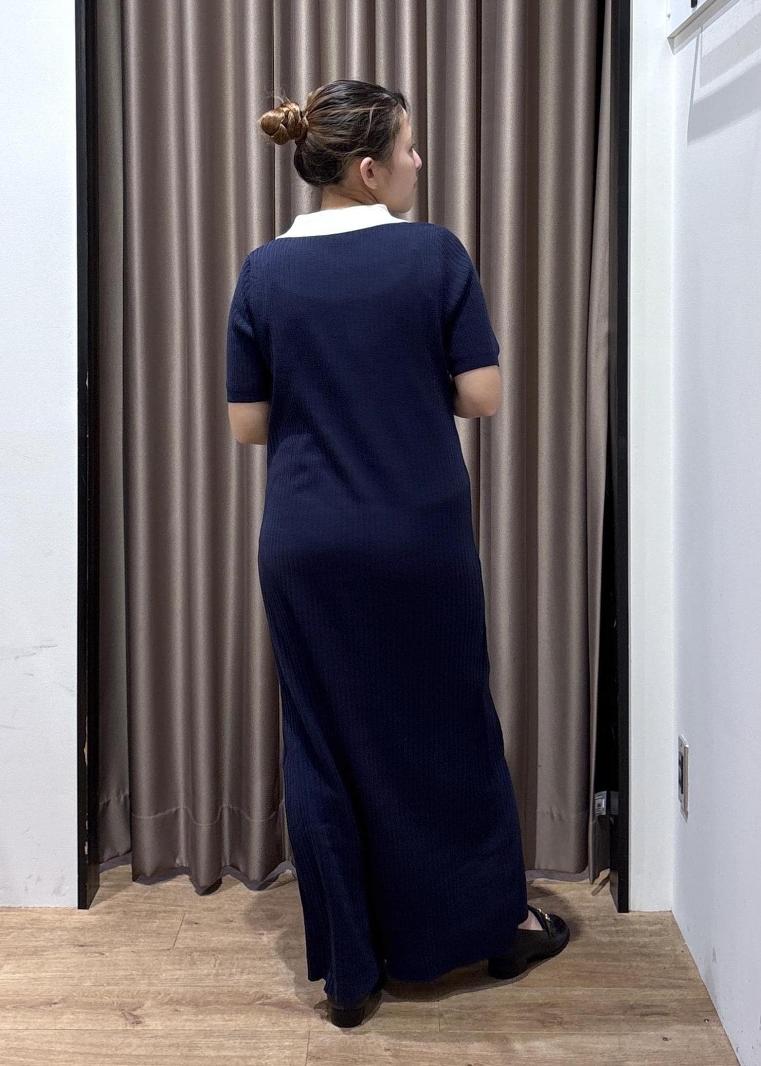 VISポロ襟ニットワンピースネイビー / F¥7,689レビュー153cm、Fサイズ着用で足首が隠れるくらいの丈感です!