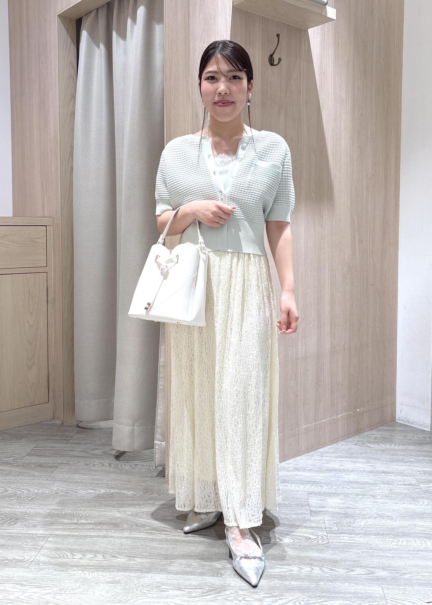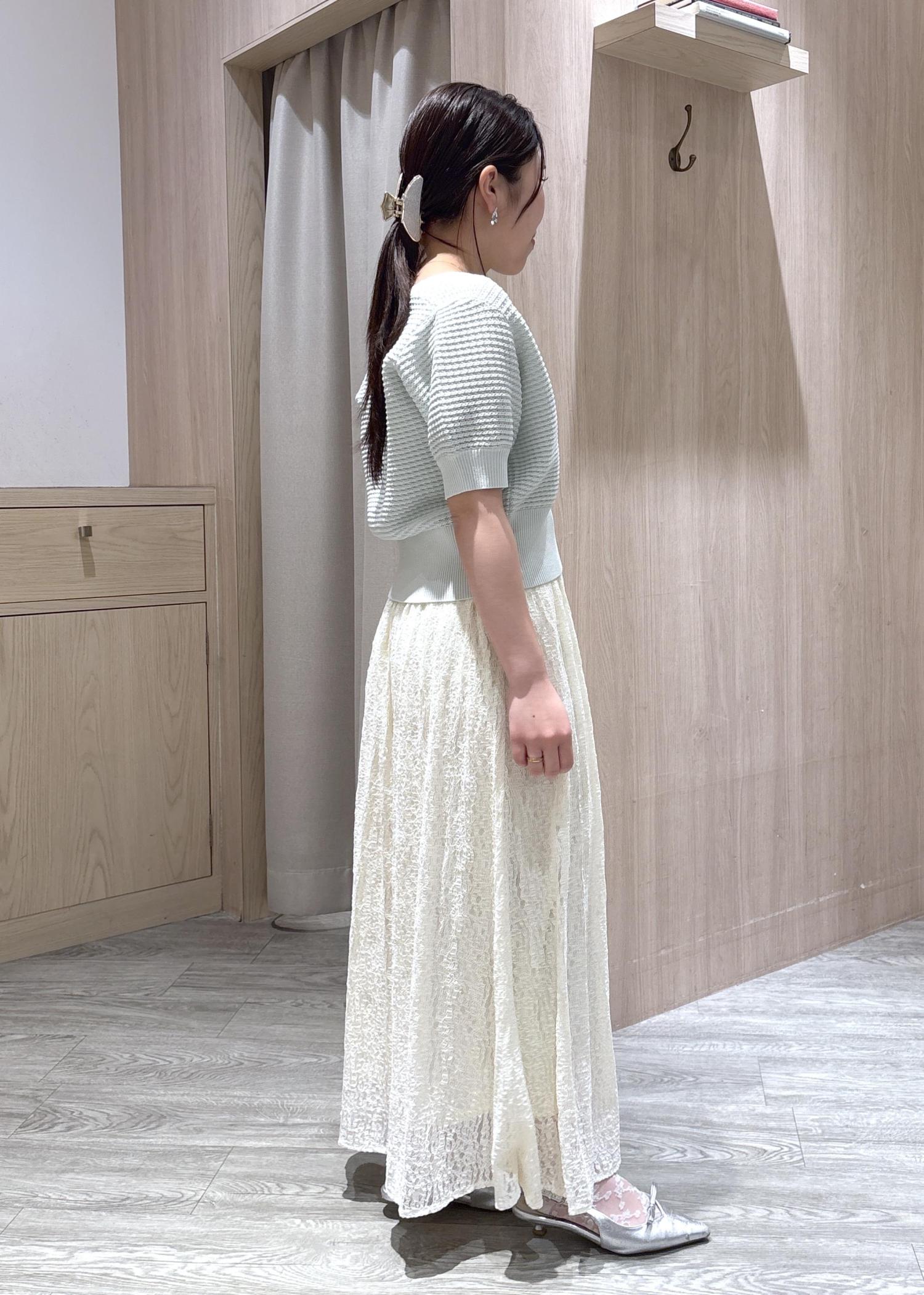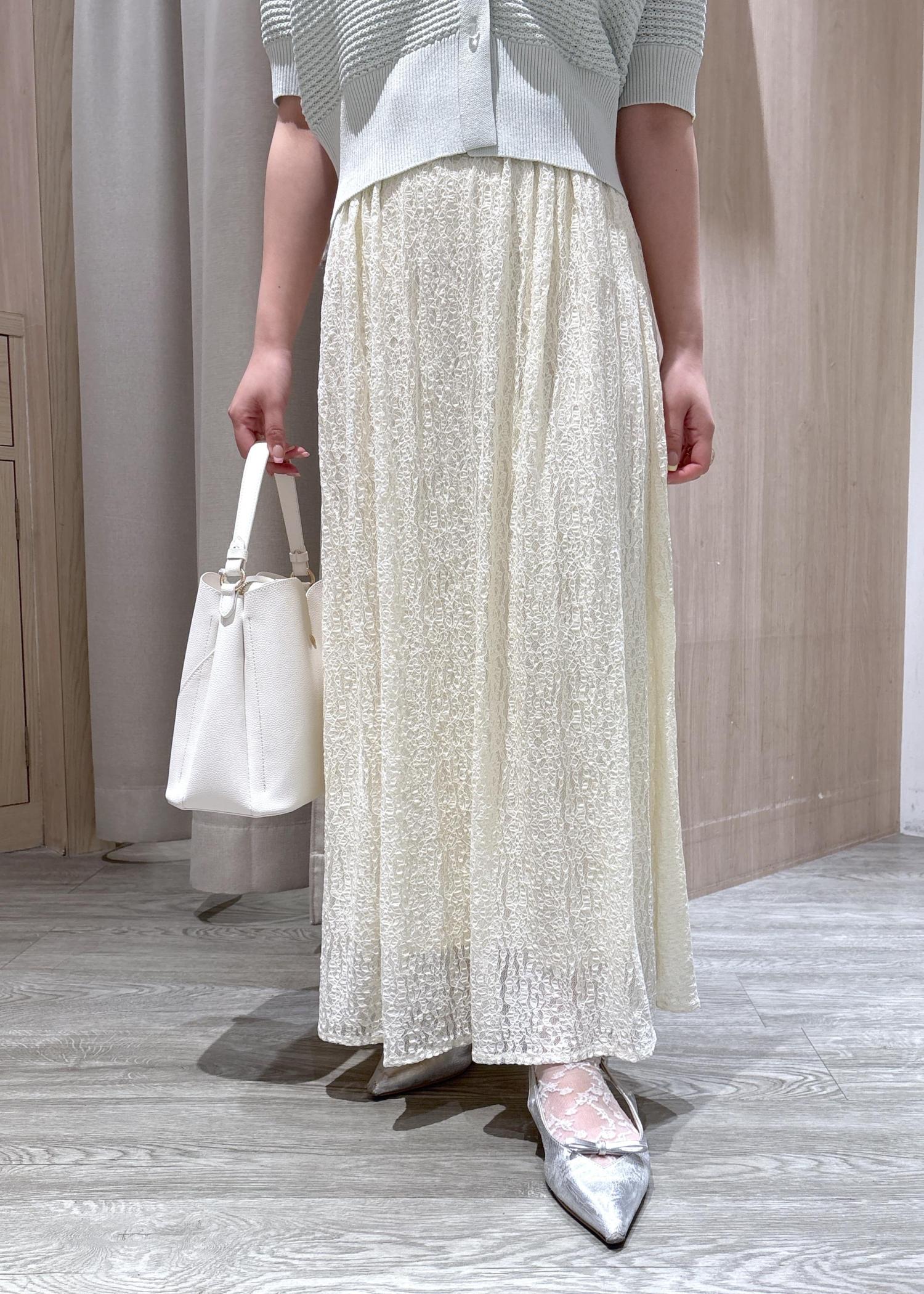VISラメレースフレアスカートキナリ / F¥6,919レビュー総レースとゴールドのラメが散りばめられた華やかなスカートです。ウエストはゴムになっているため着やすいですよ。丈は足首が隠れる長さでした。