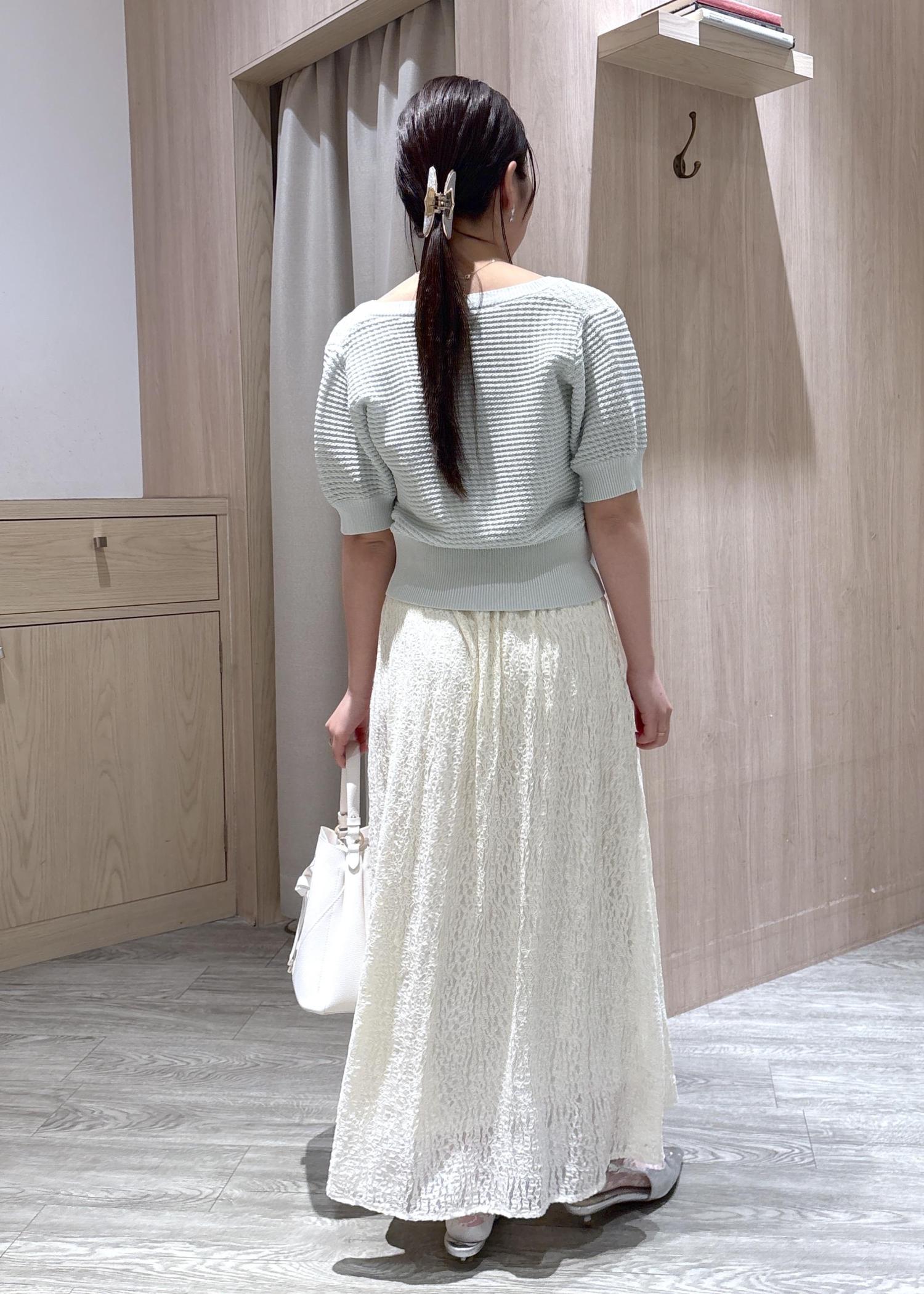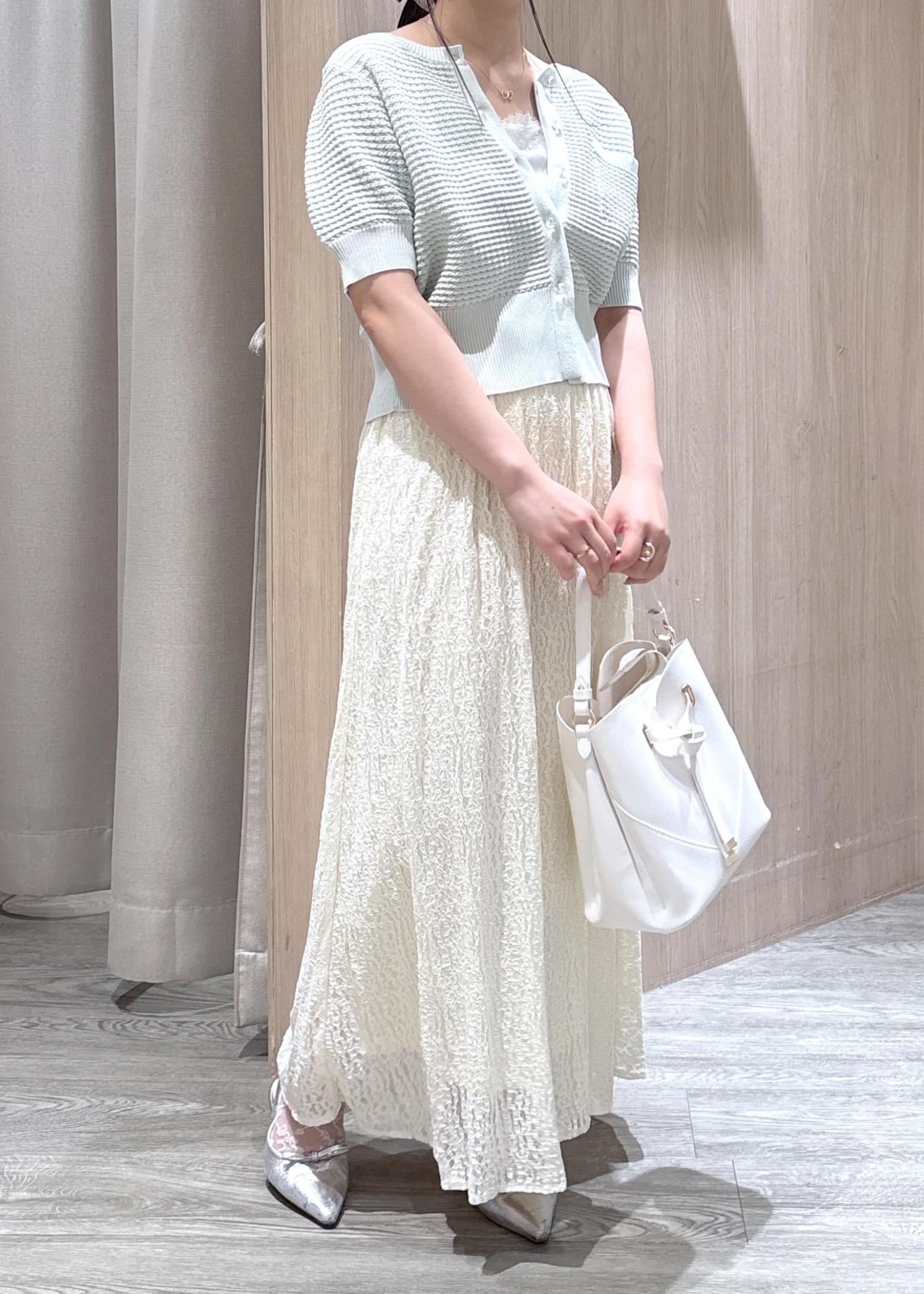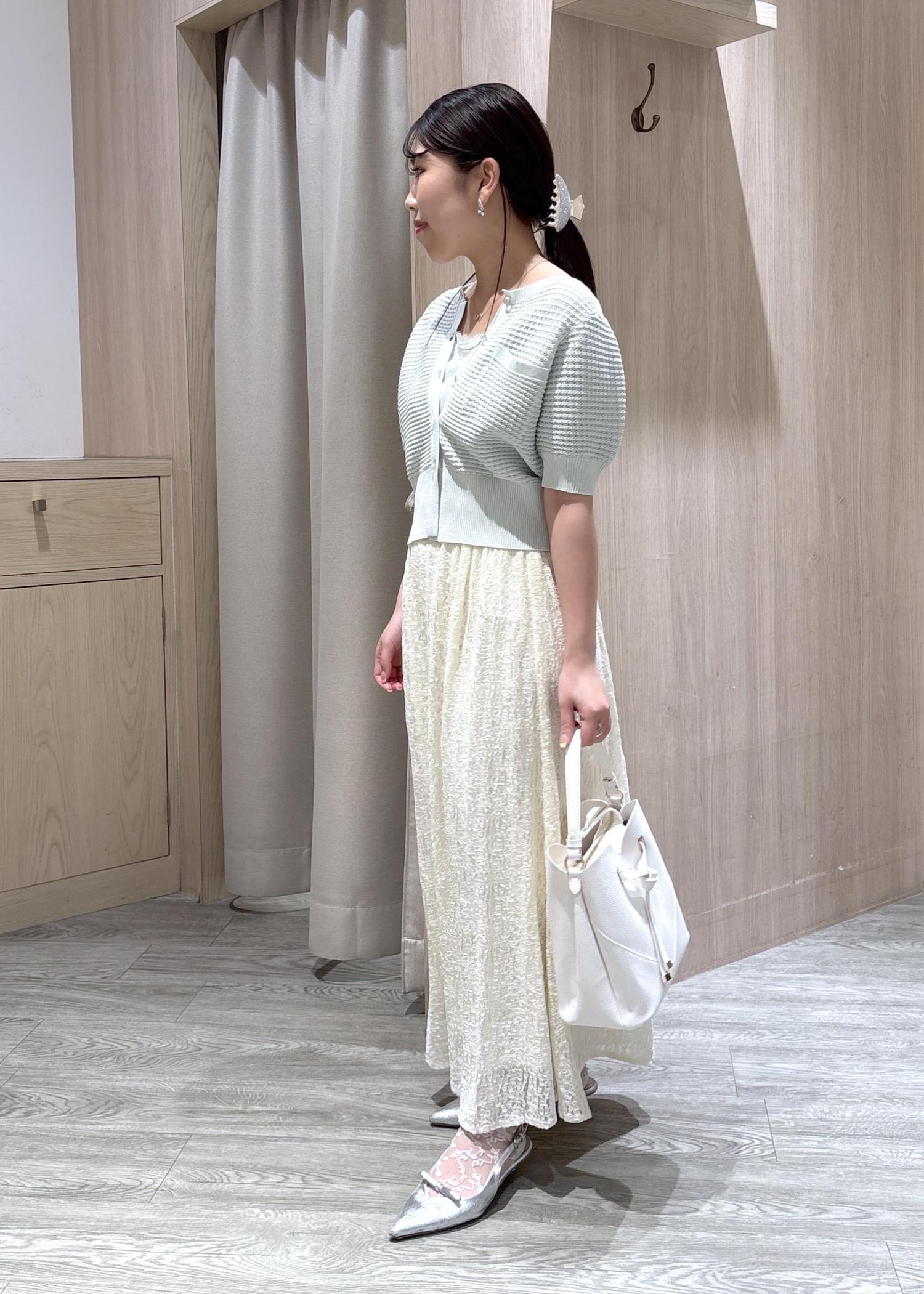 VISラメレースフレアスカートキナリ / F¥6,919レビュー総レースとゴールドのラメが散りばめられた華やかなスカートです。ウエストはゴムになっているため着やすいですよ。丈は足首が隠れる長さでした。