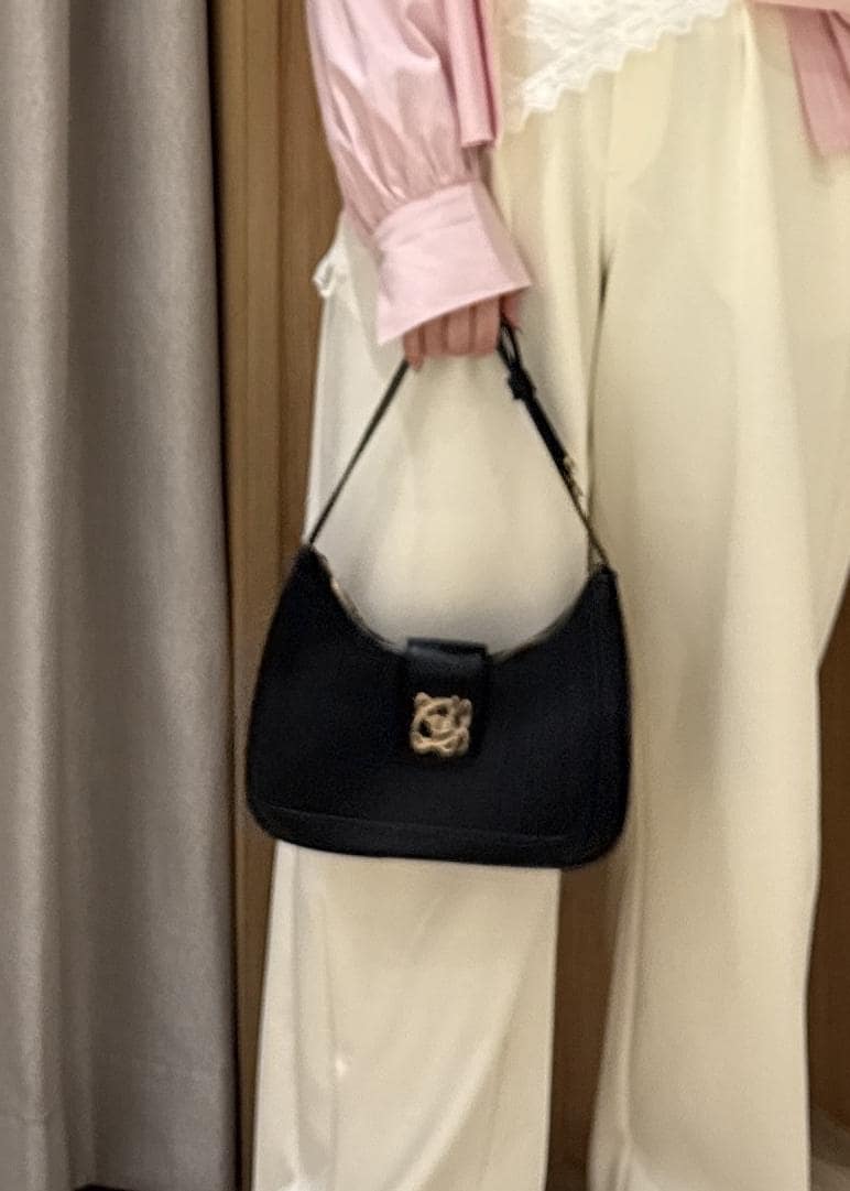 VIS【新色追加】【180℃美人見え】ハンドルリボンワンショルダーバッグブラック / F¥5,929レビュー型崩れしない素材感で肩にかけても、手持ちでも可愛いです!
