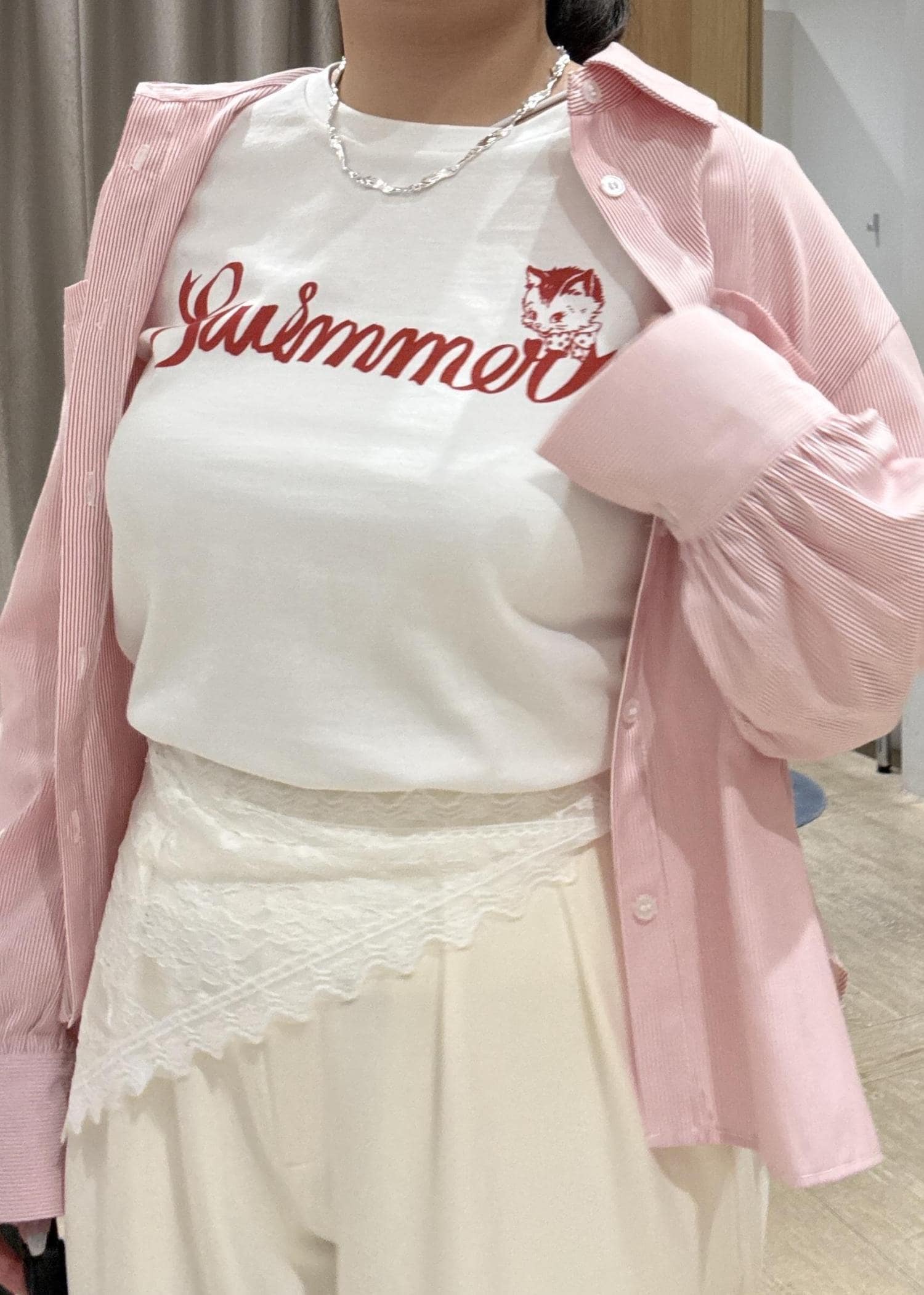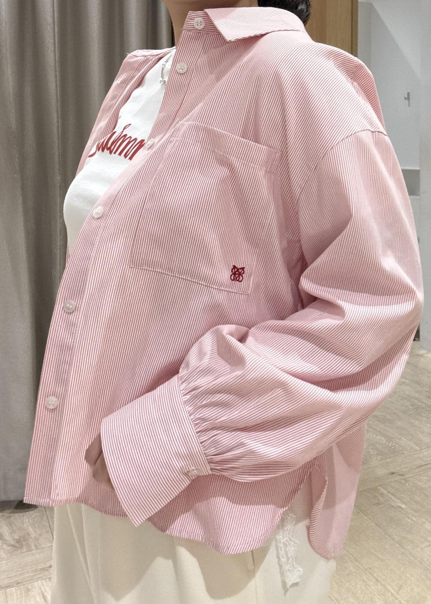 VIS【SWIMMER×VIS】ポイント刺しゅうストライプシャツレッド系 / F¥6,589レビュー153cmの私ですが、ヒップにかかるくらいの丈感でした。