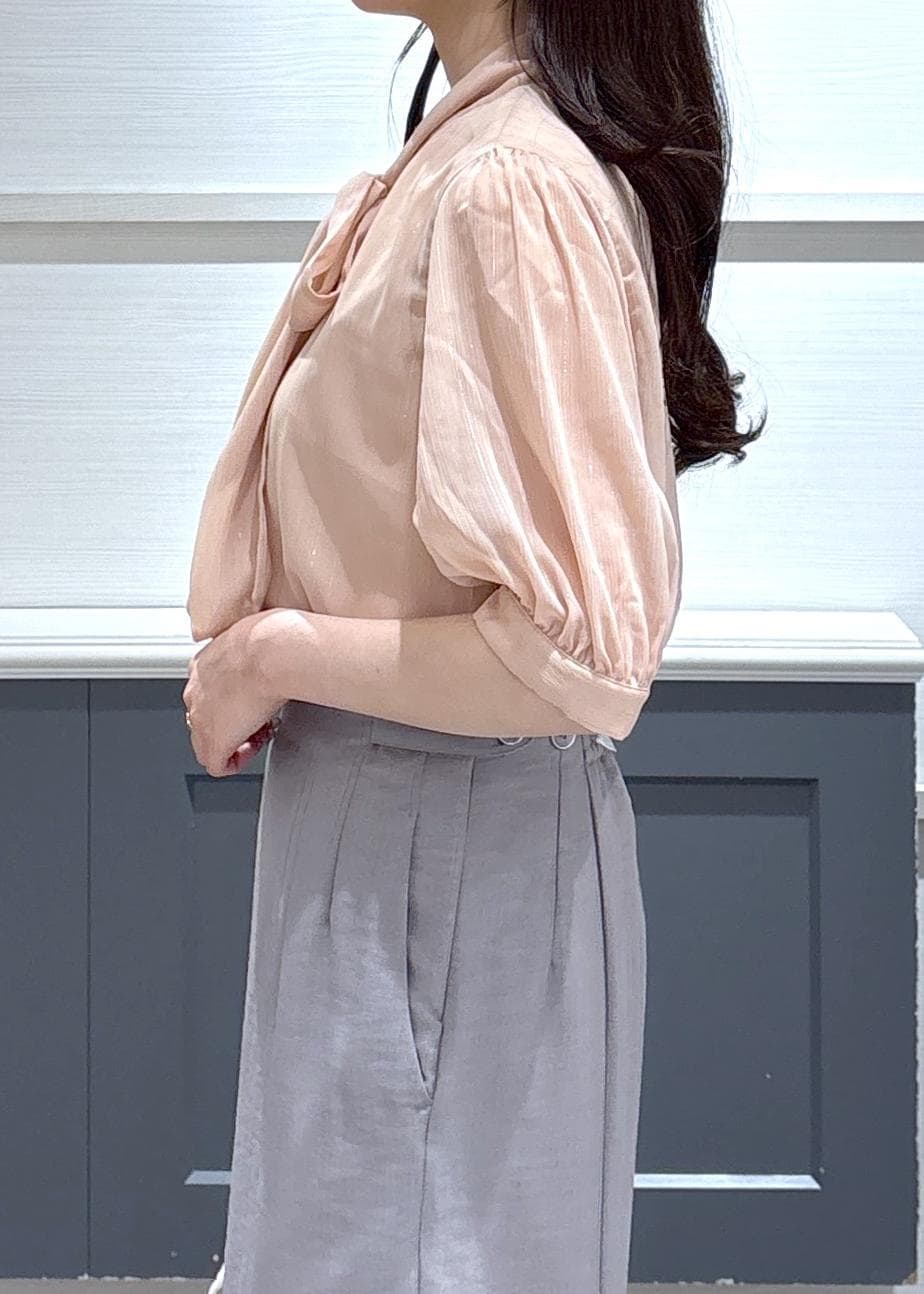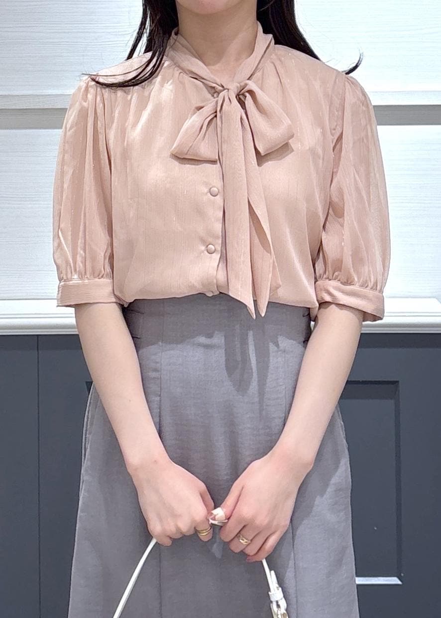 VISラメ楊柳ボウタイブラウスベージュ / F¥5,929レビュー156cmでヒップにかかる丈感でした。