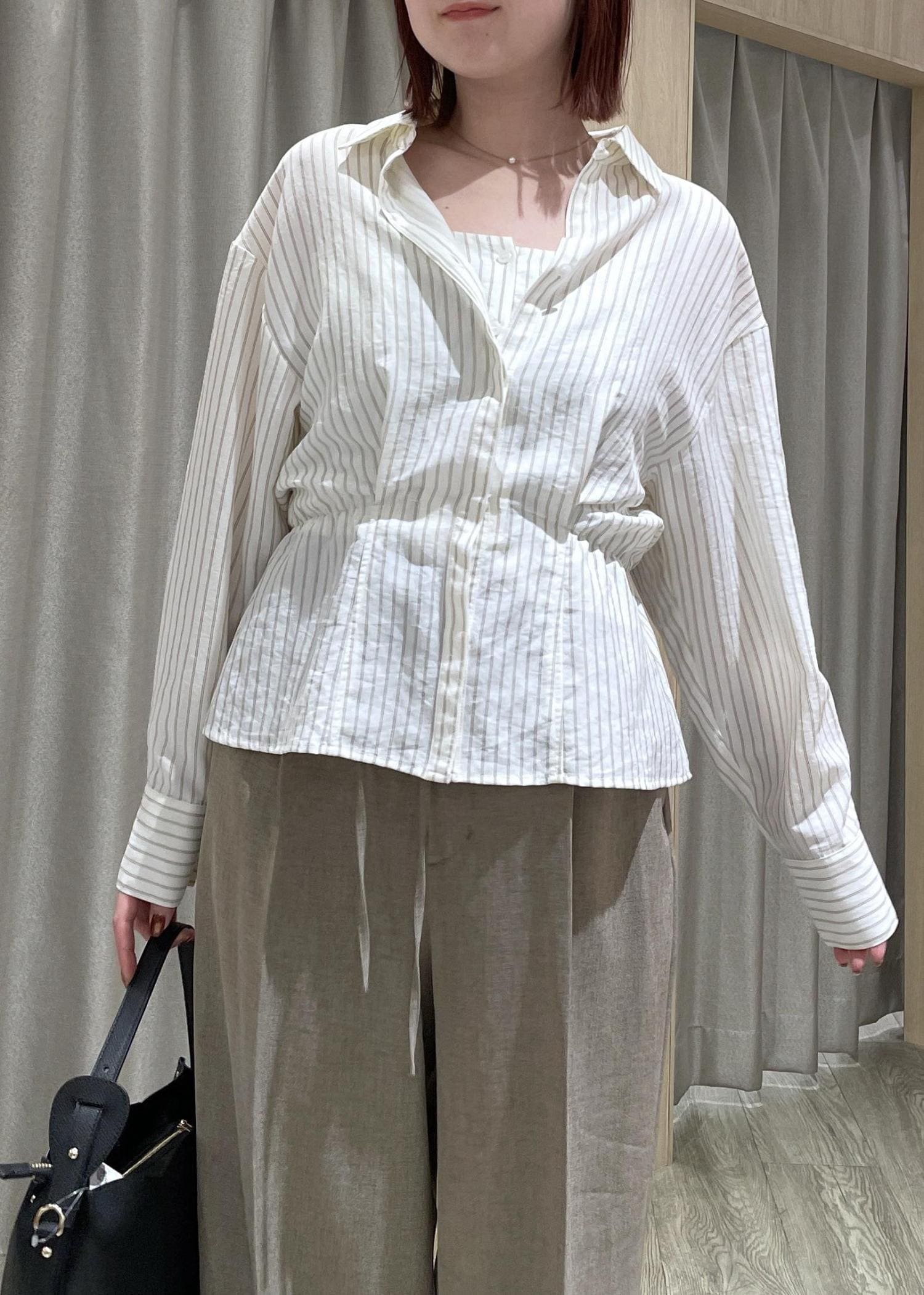 VISレイヤードストライプシャツオフホワイト / F¥6,589レビュー1枚でお洒落見えが叶うシャツ♡インナーがドッキングされているのでシャツのインナー問題が解決、統一感も出ます!身長159cmでヒップにかかるくらいの丈感ですが、ウエスト位置に切替があるのでスッキリと。ボトムも選ばず合わせやすいです◎