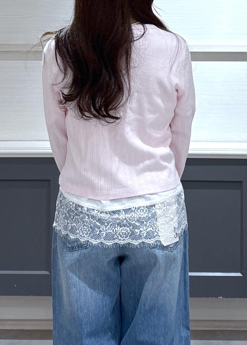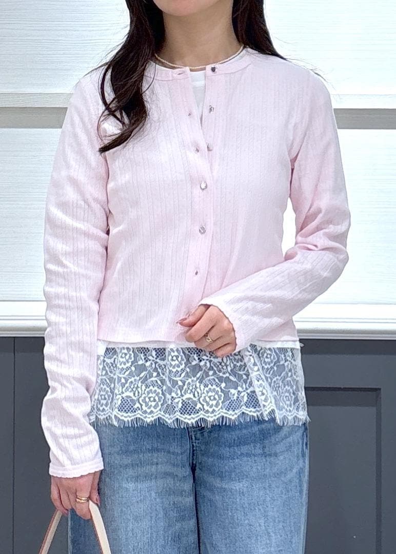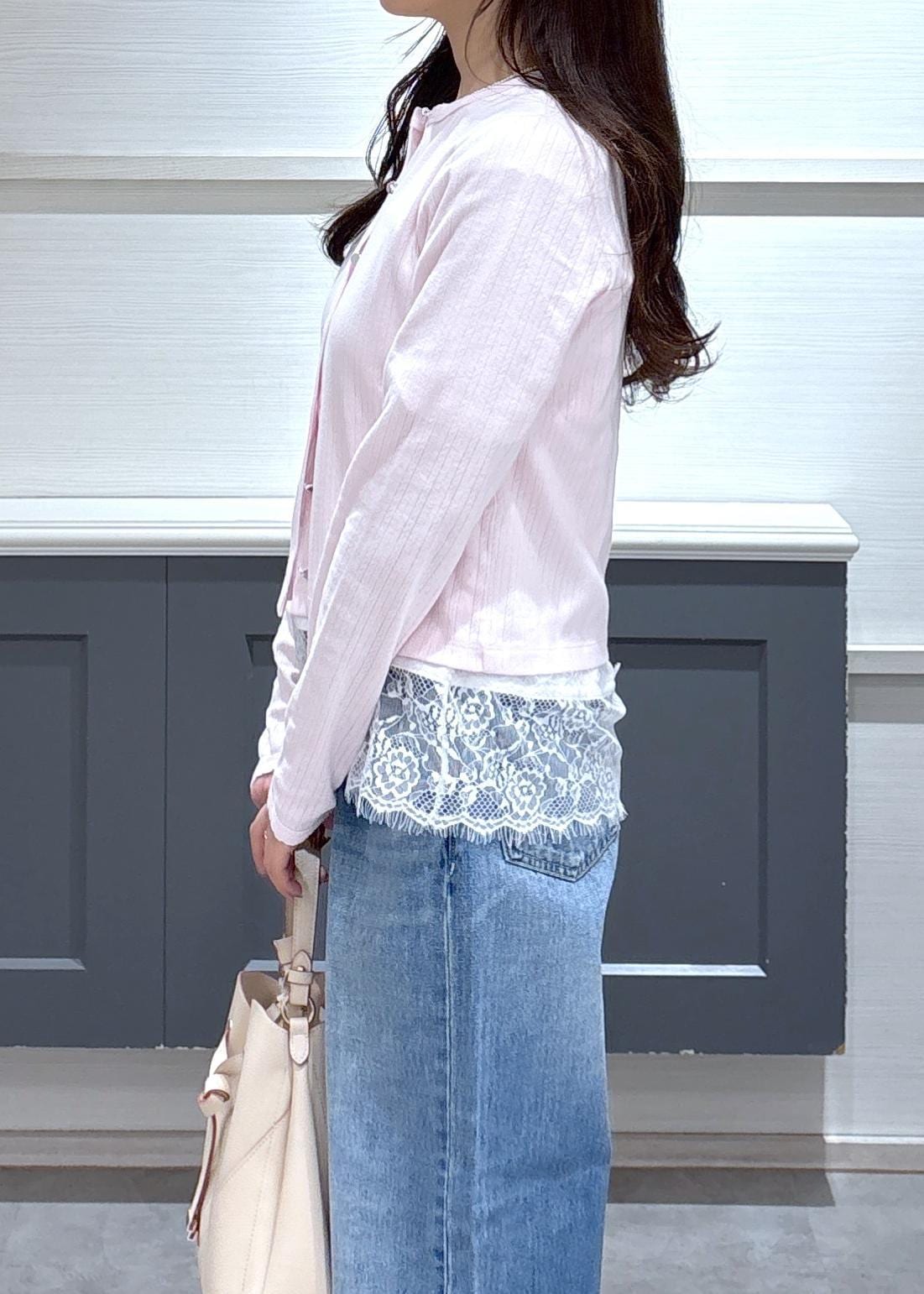 NEW!VISパターンメッシュカーディガンピンク / F¥5,489レビュー156cmで腰が隠れる丈感。