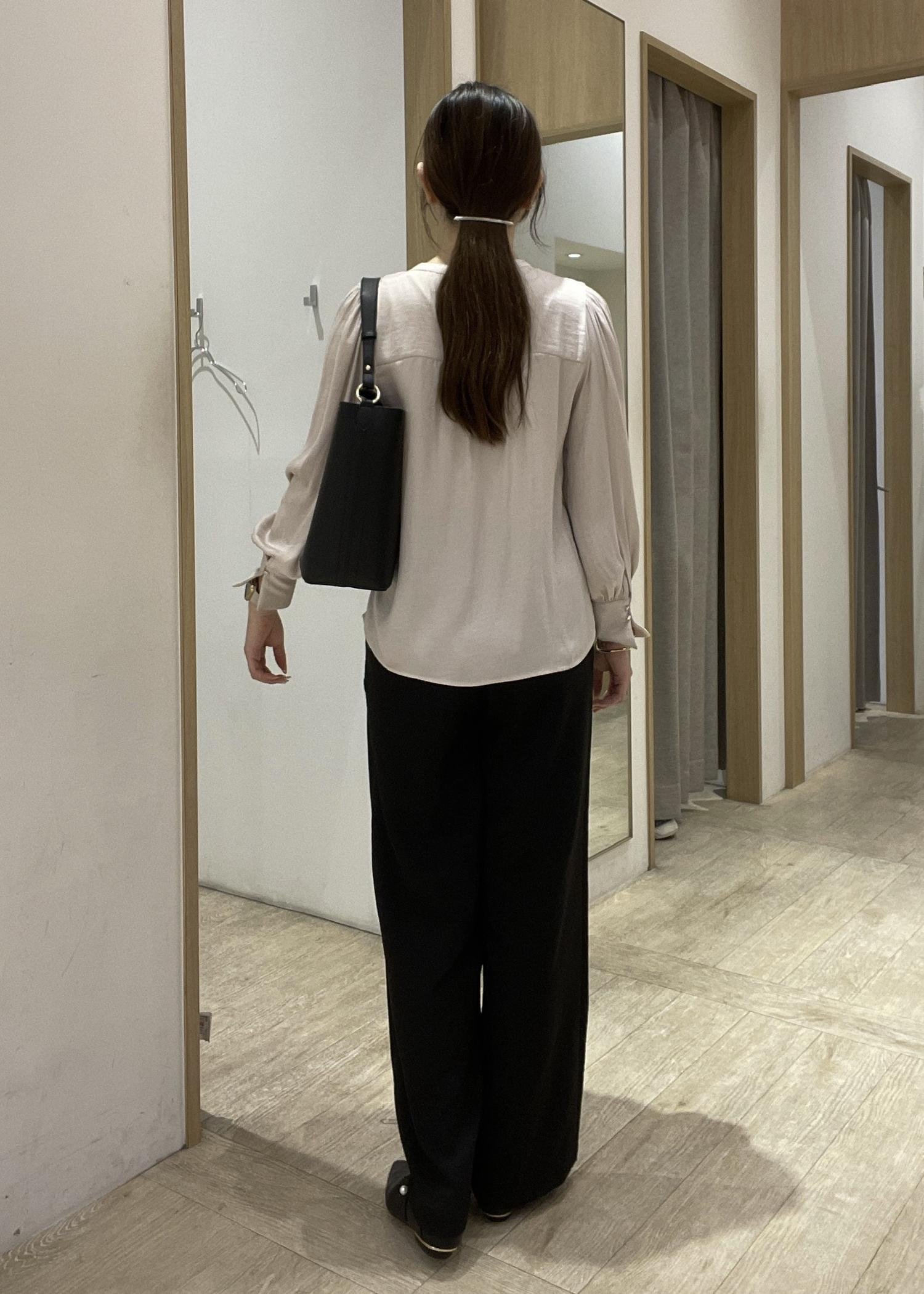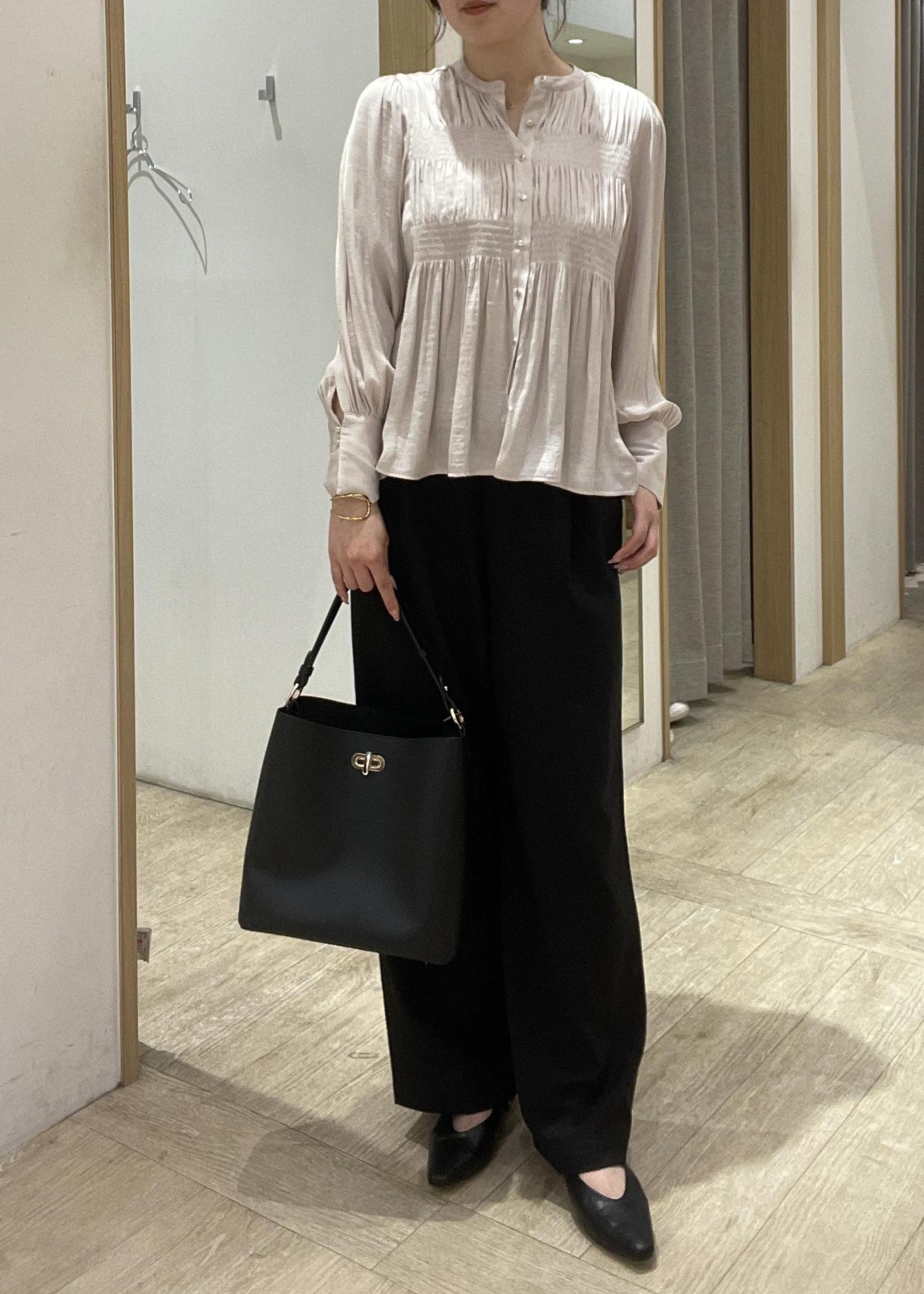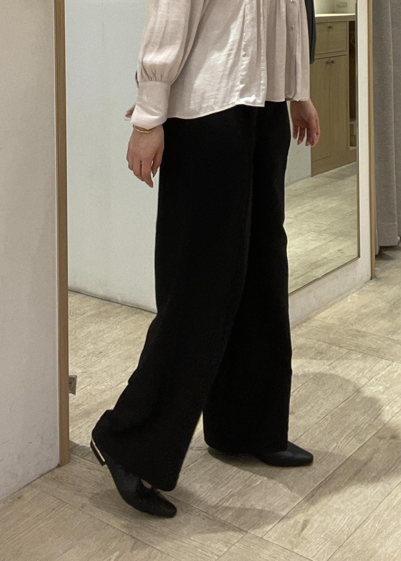 春らしいピンクのブラウスに大人気の美easyシリーズからリネンライクパンツを合わせたシンプルなお仕事コーデ組んでみました!
