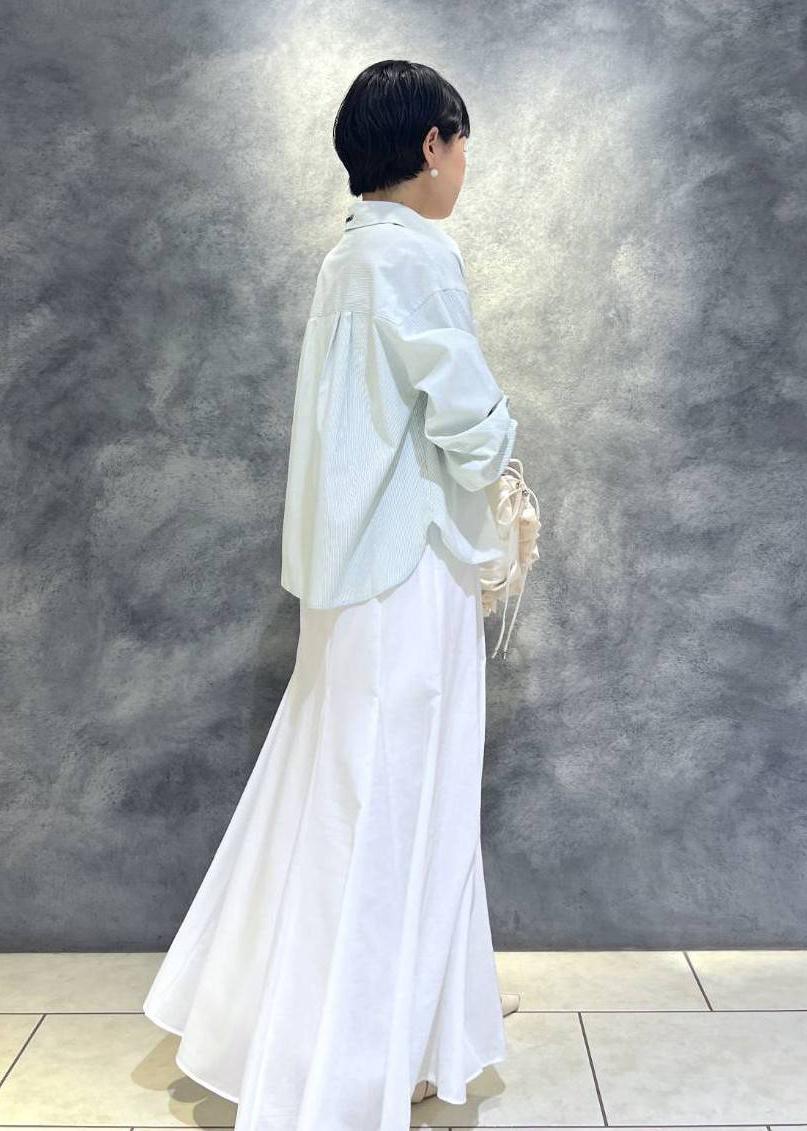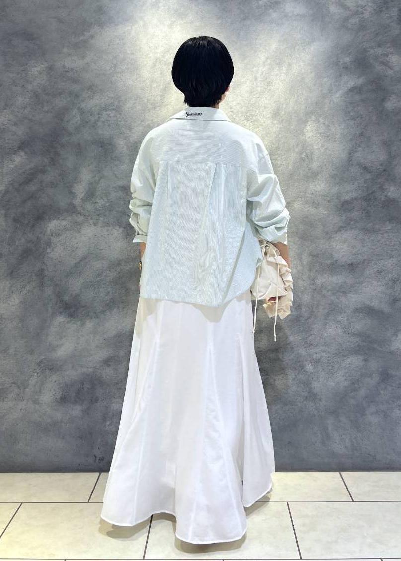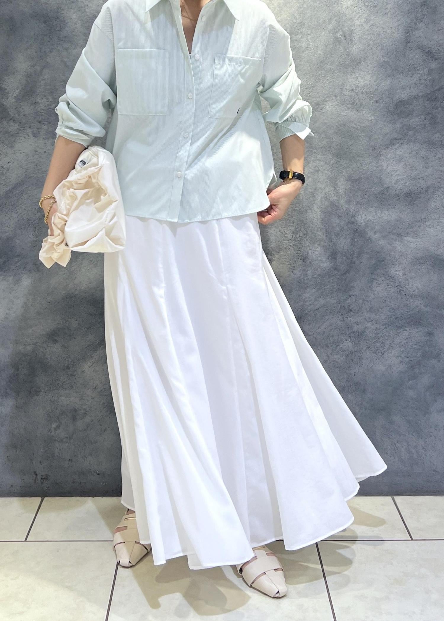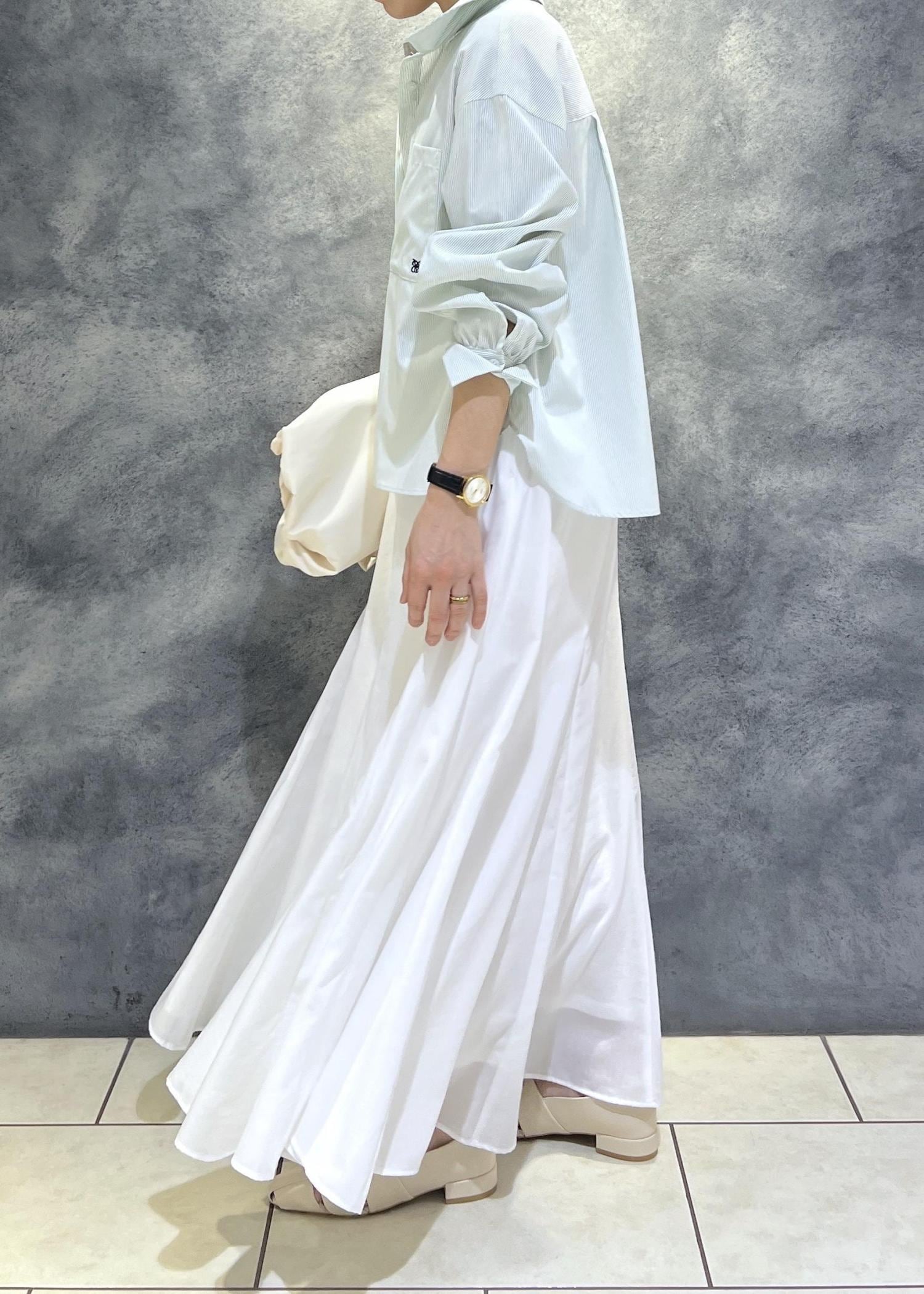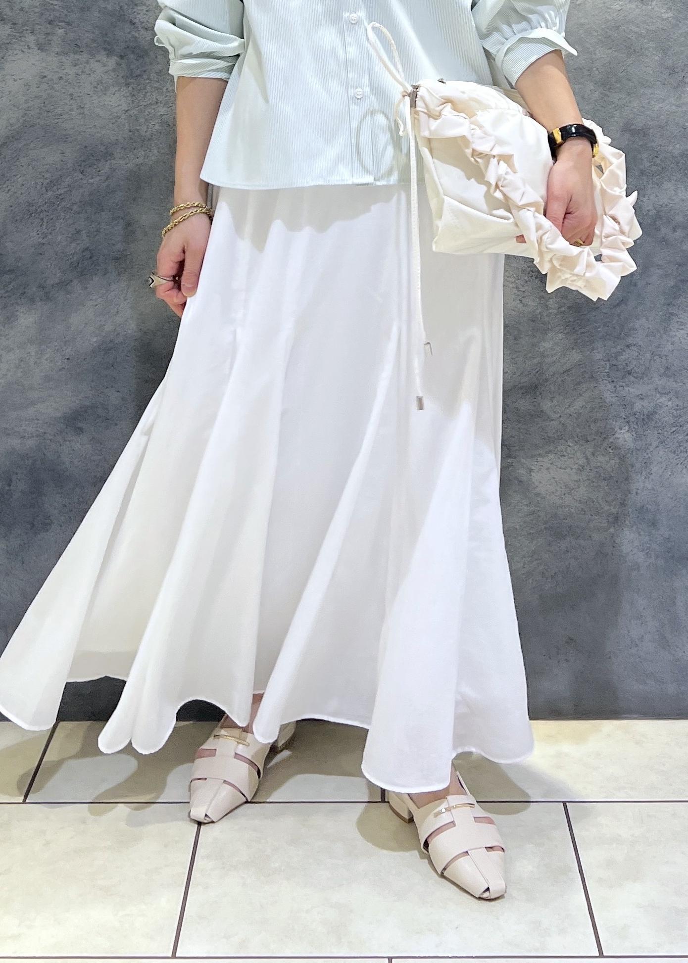 爽やかな白のフレアスカートを合わせた
