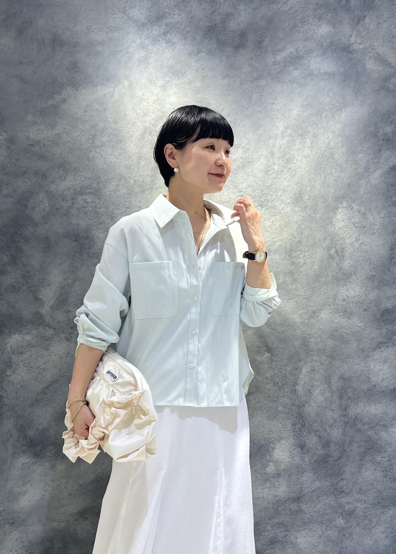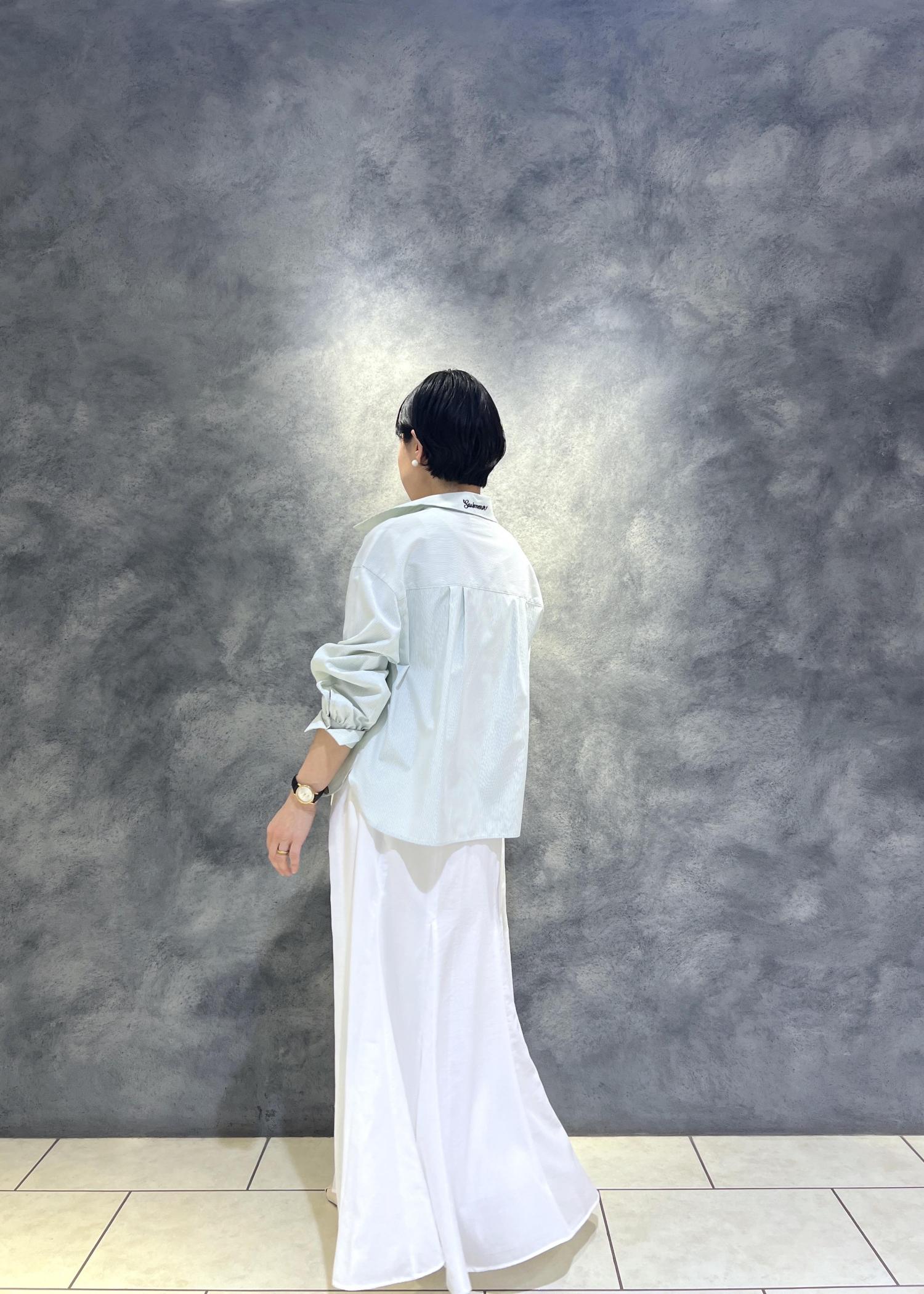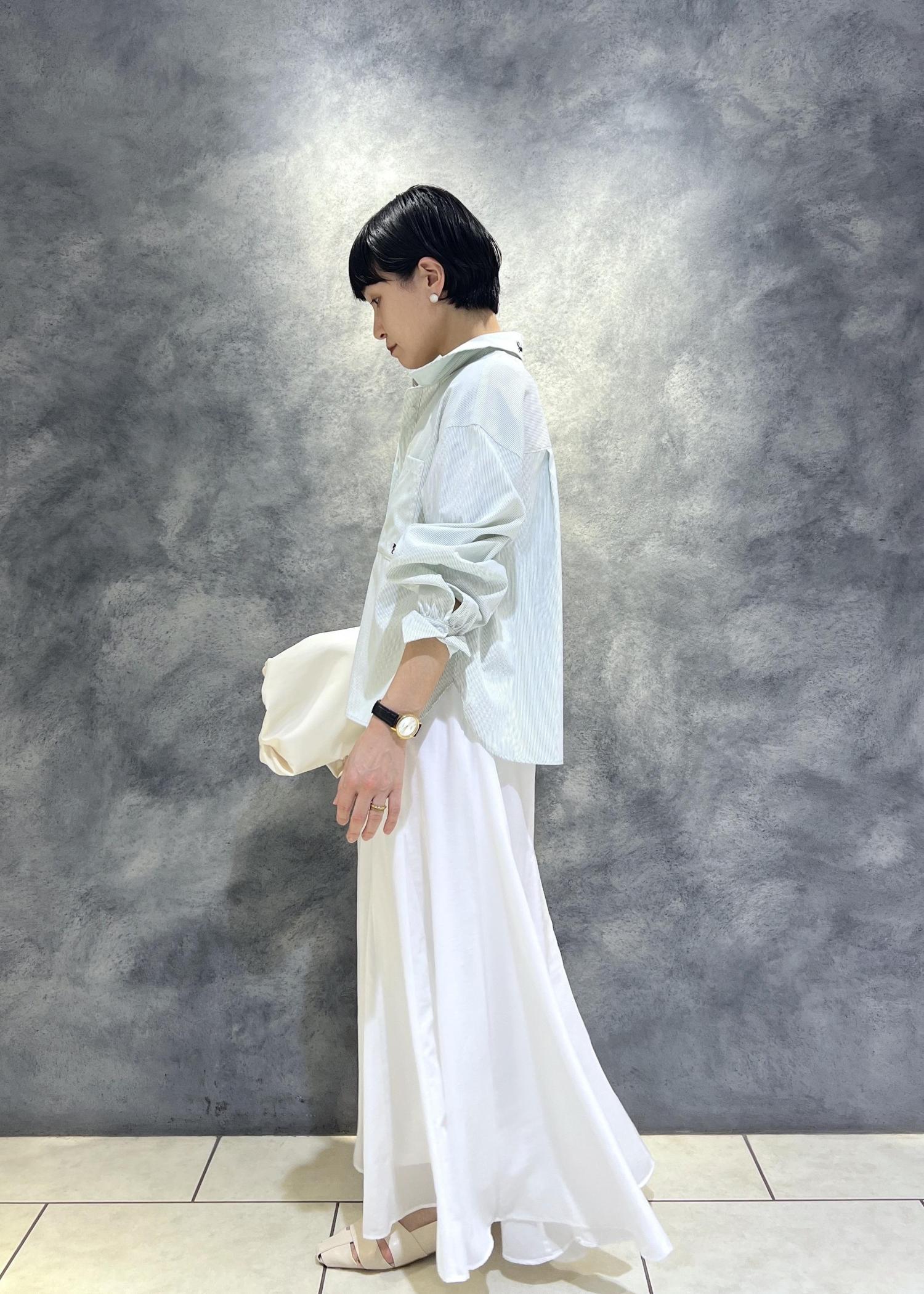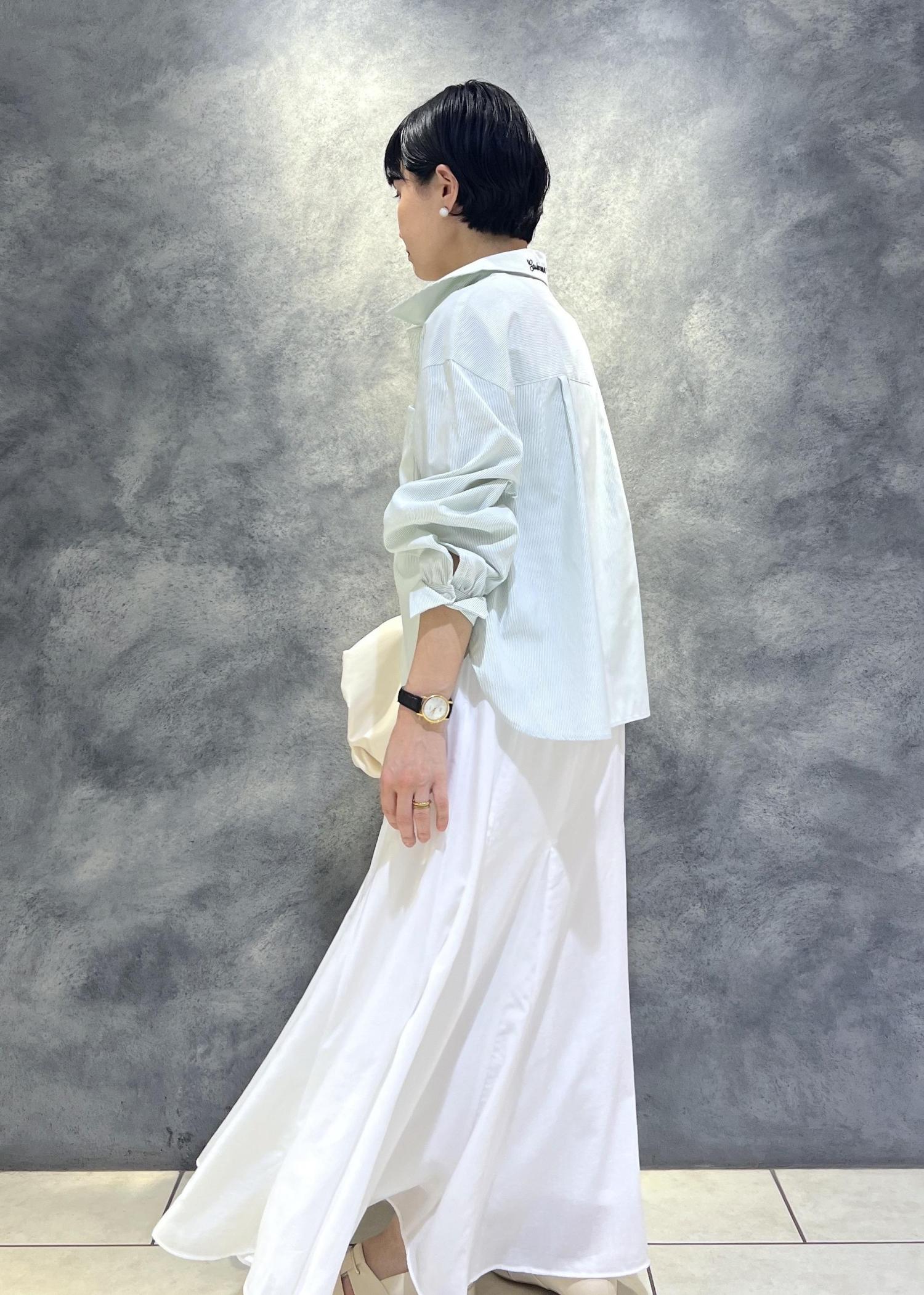 爽やかな白のフレアスカートを合わせた