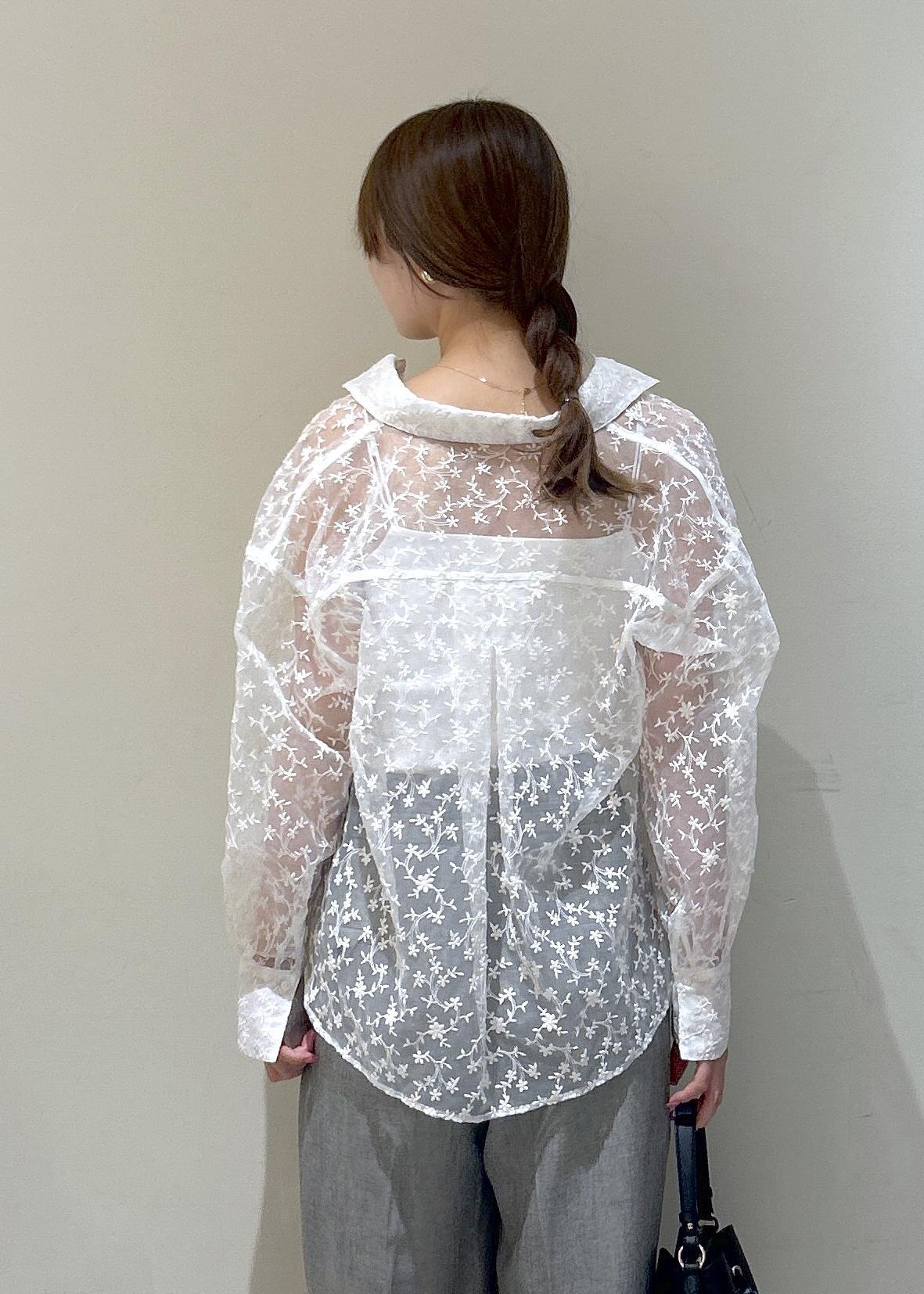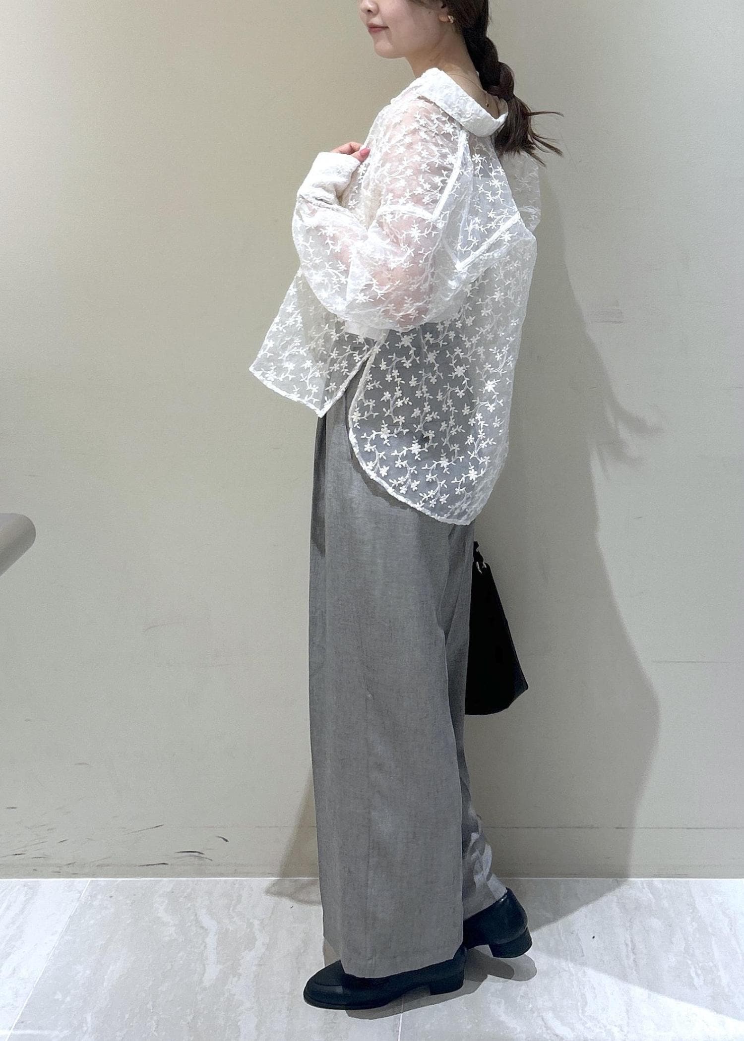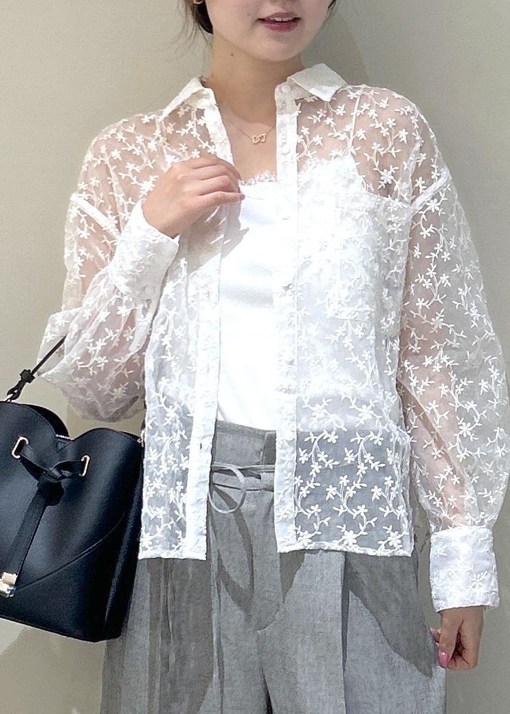 VIS刺しゅうレースオーバーシャツキナリ系 / F¥6,589レビューサイズ▶︎お尻がすっぽり隠れるゆるっとしたサイズ感