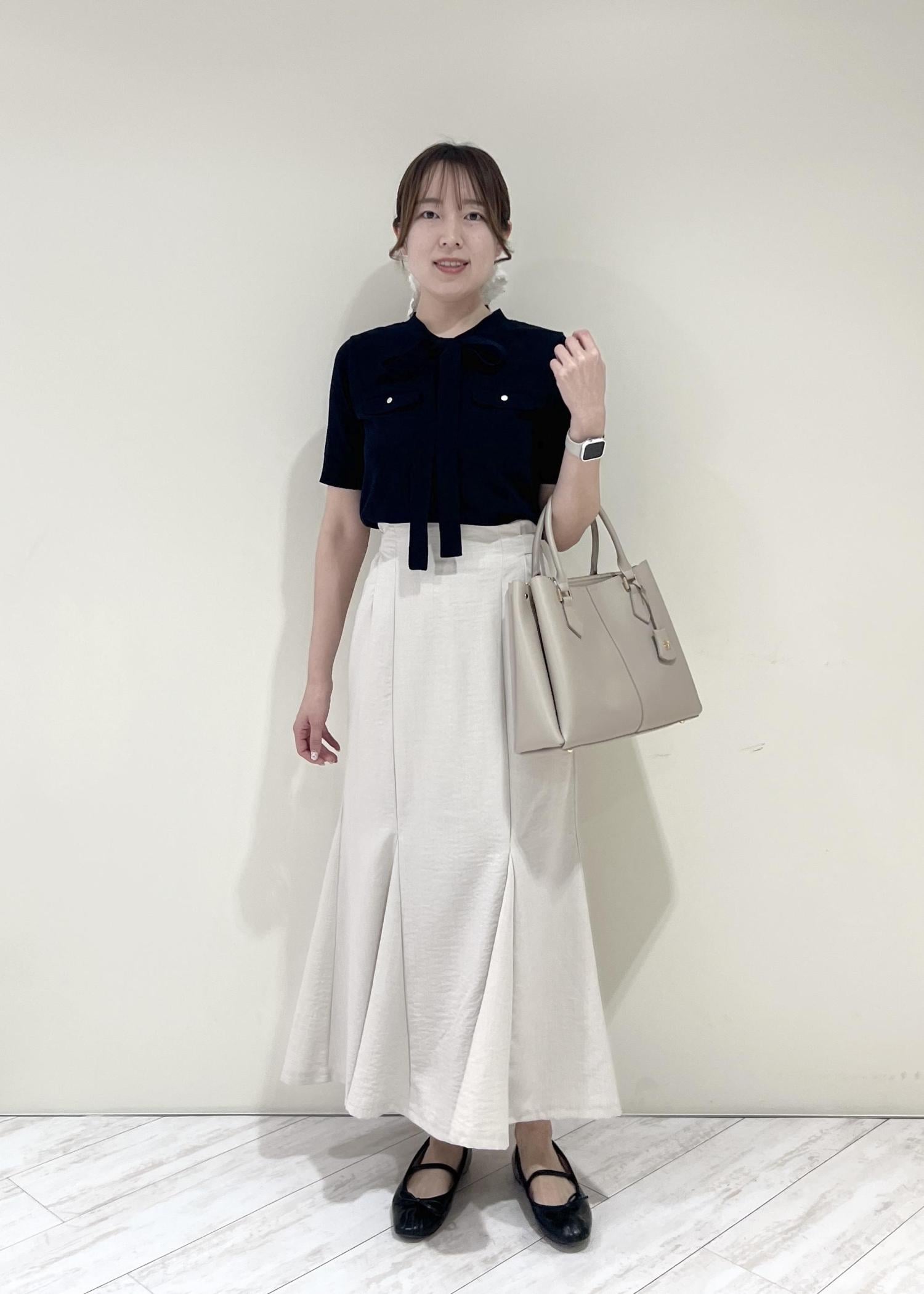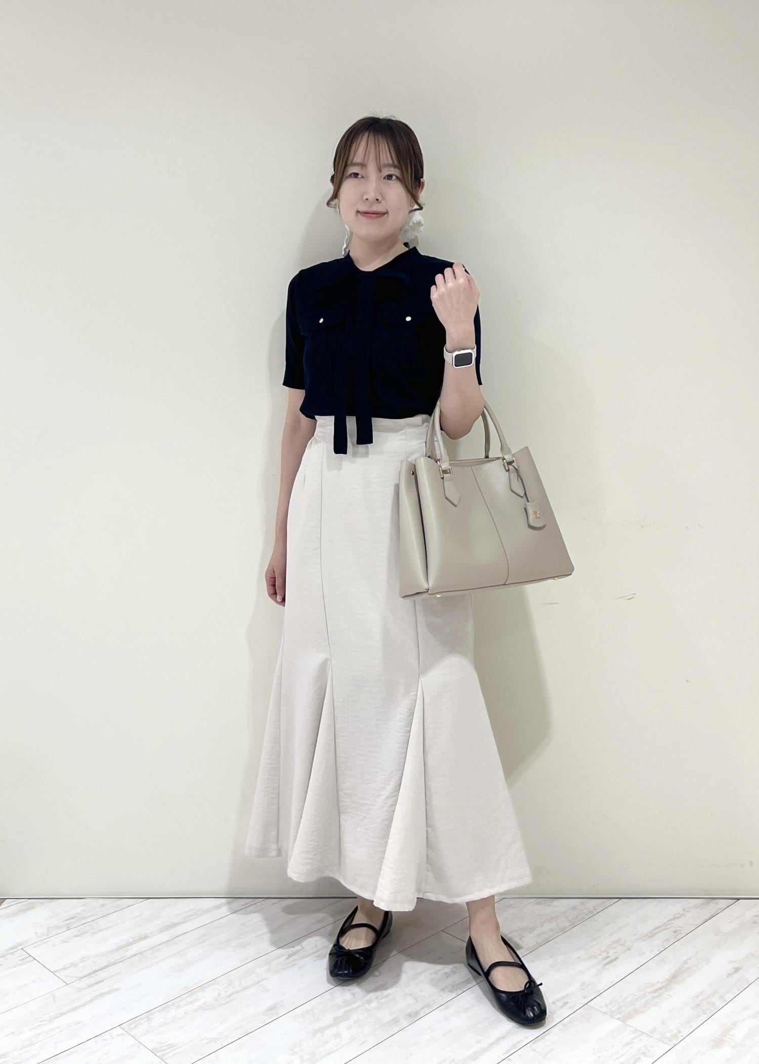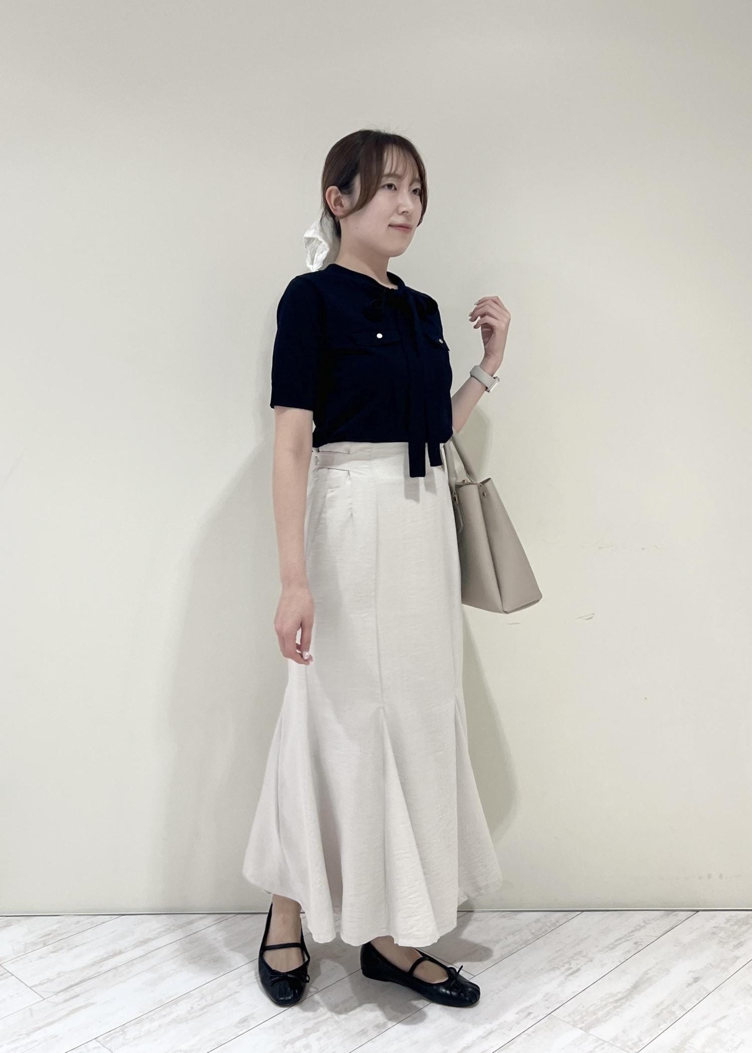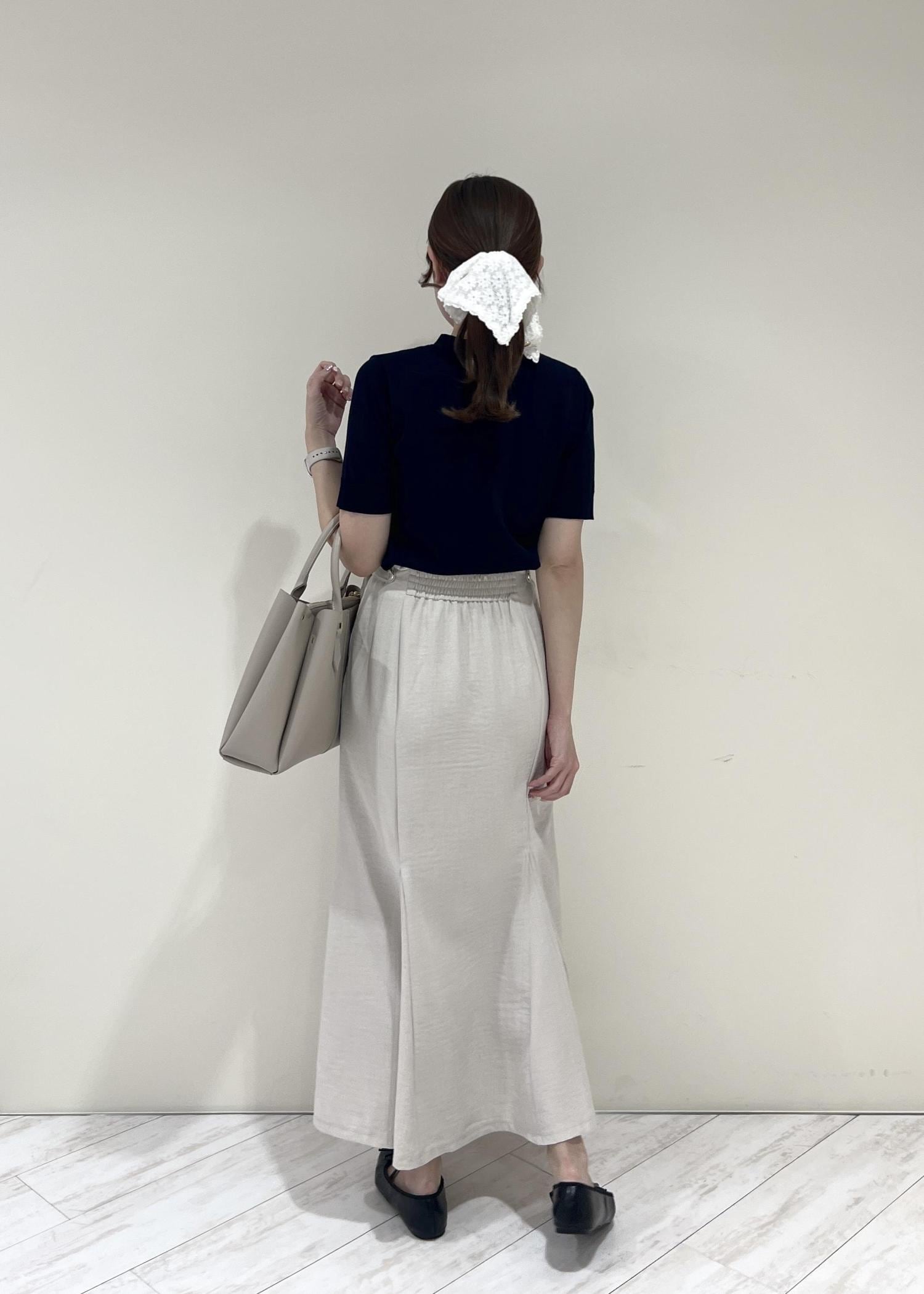 VIS美easyリネンライクマーメイドスカート/イージーケア・接触冷感・セットアップ対応キナリ / L¥5,489レビュー164cm、Mサイズだとおしり周りが気になったのでLサイズ着用。着丈はくるぶし上でスニーカー等ぺたんこ靴でもバランス良く履けます◎