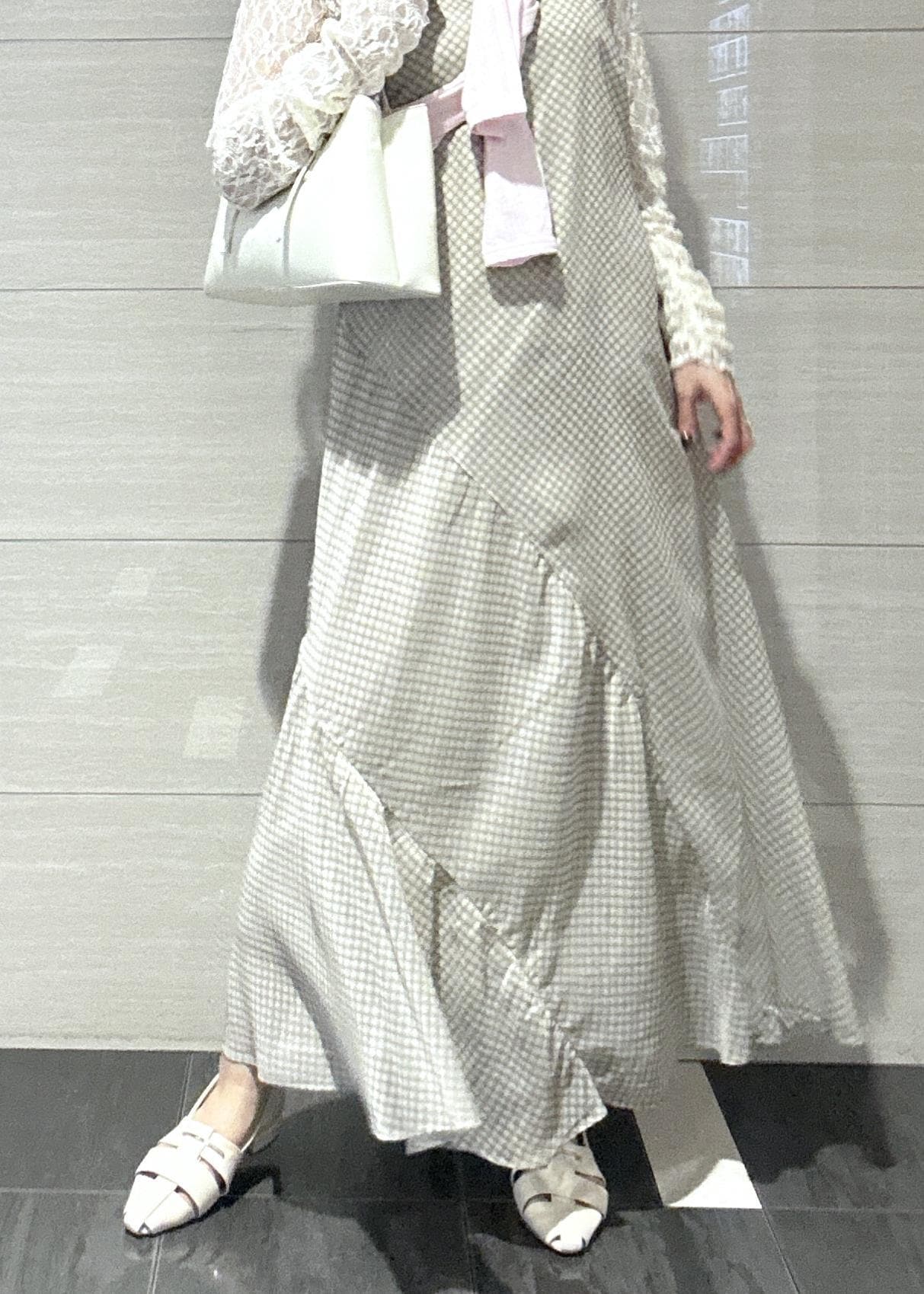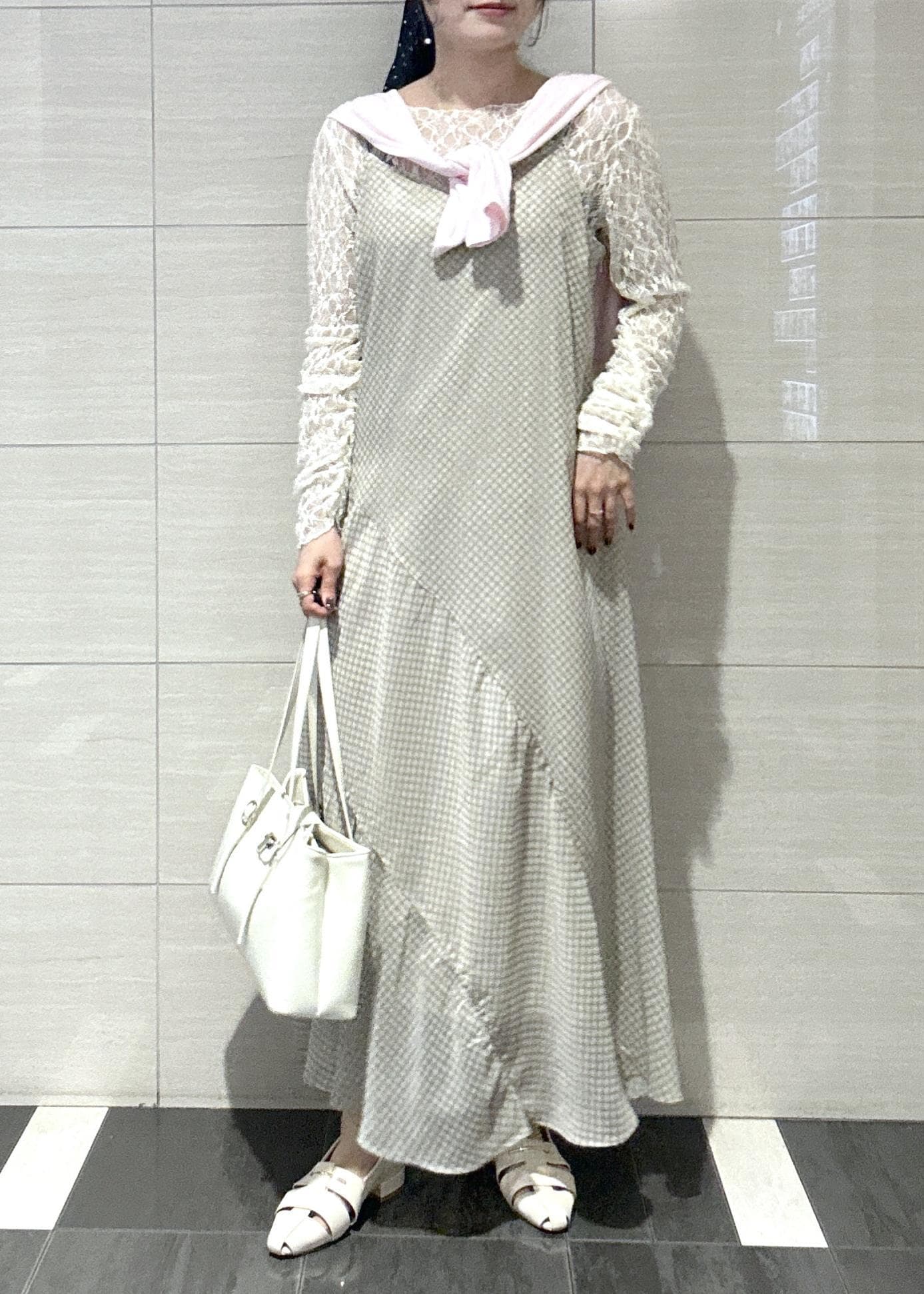 VISシアーチェックキャミワンピースベージュ系 / F¥8,899レビュー身長162cmでFサイズ着用。
