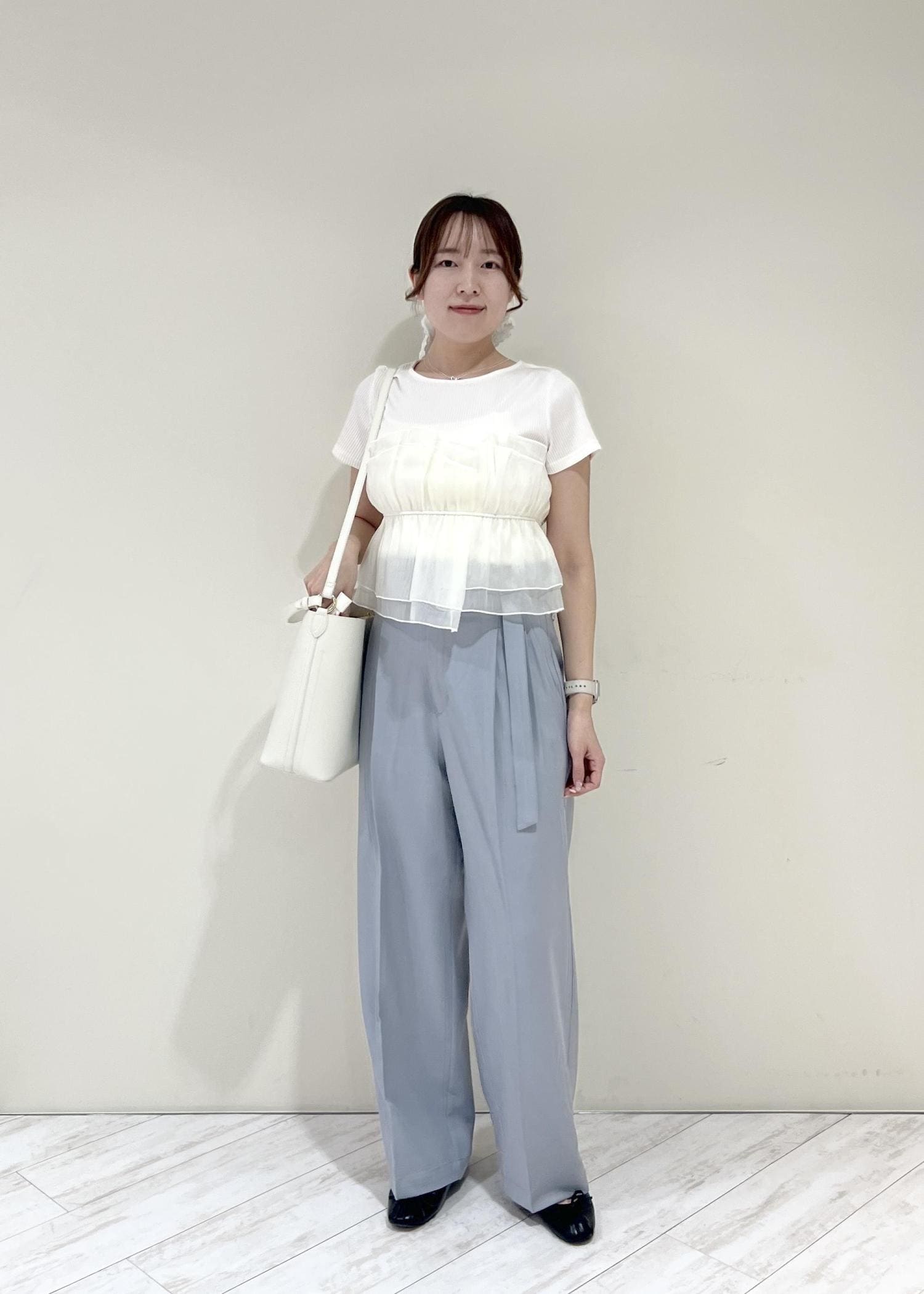 VISベルトディティールタックワイドパンツ/イージーケア・接触冷感サックス / M¥6,589レビュー太もも周りに余裕のあるサイズ感で、カバーしてくれます!ベルトは取り外し可能なので、お持ちのベルトに付け替えても◎